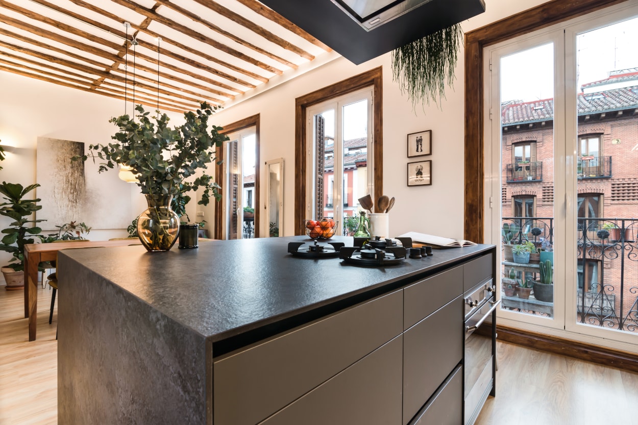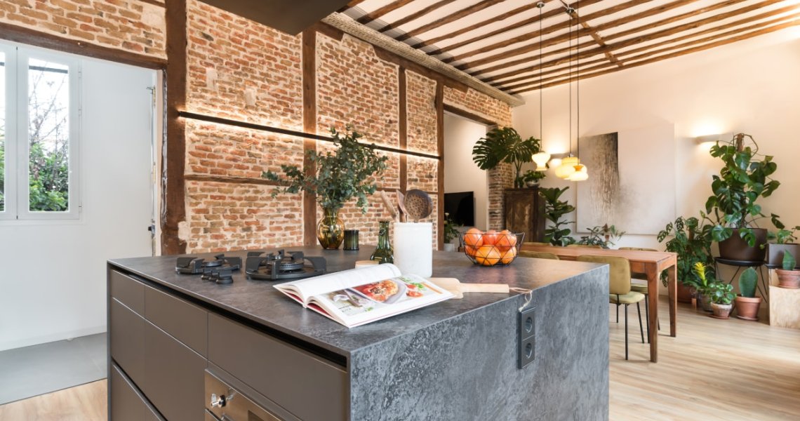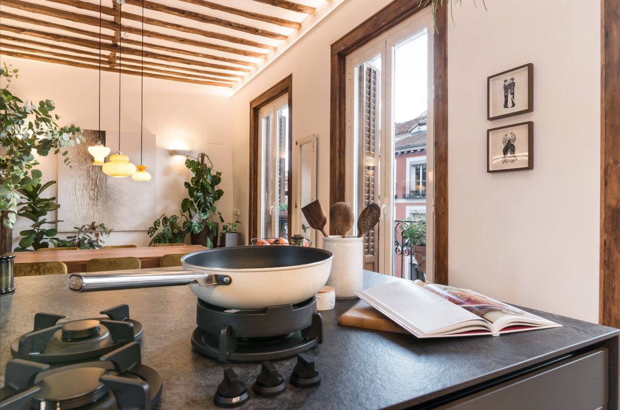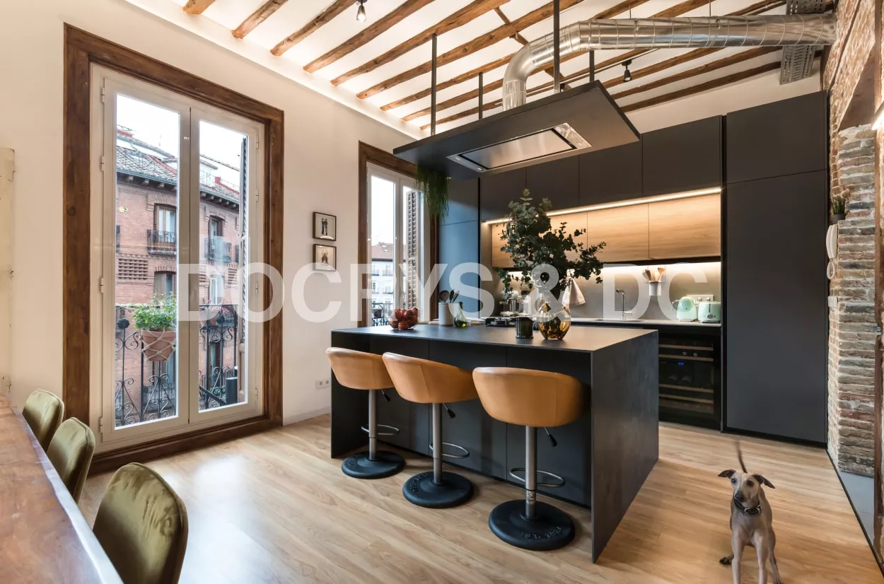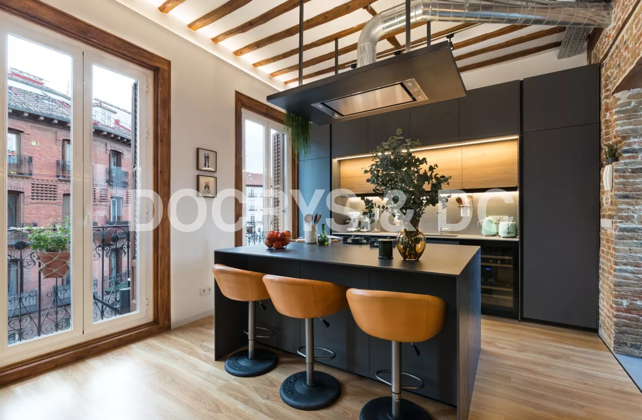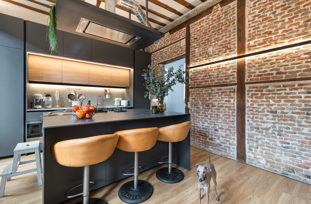 Esta cocina abierta al salón, forma parte del centro de la vivienda, con carácter y personalidad, luminosa y práctica.