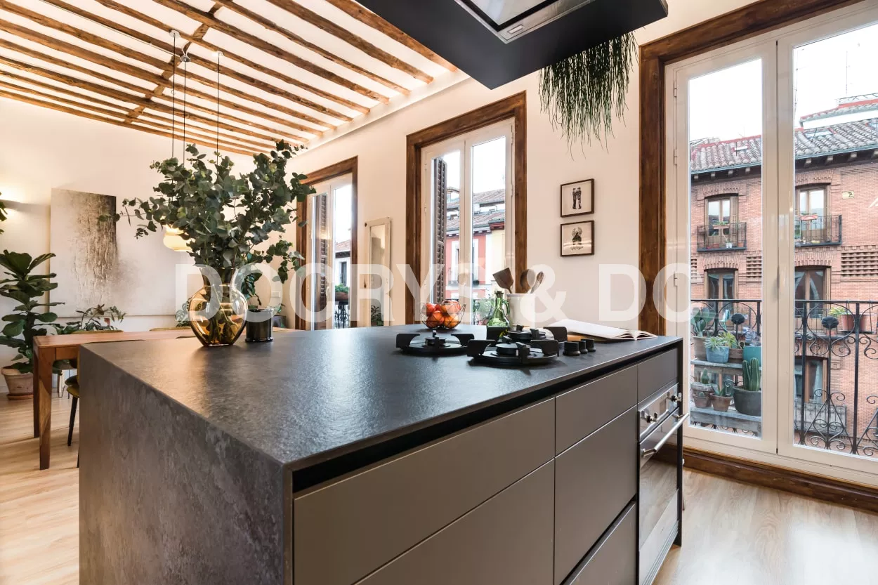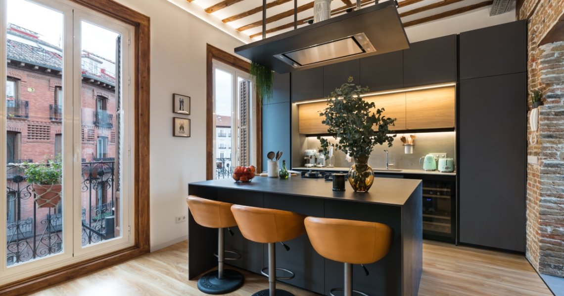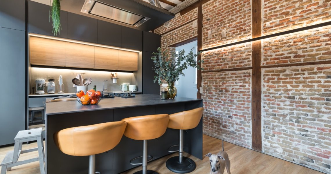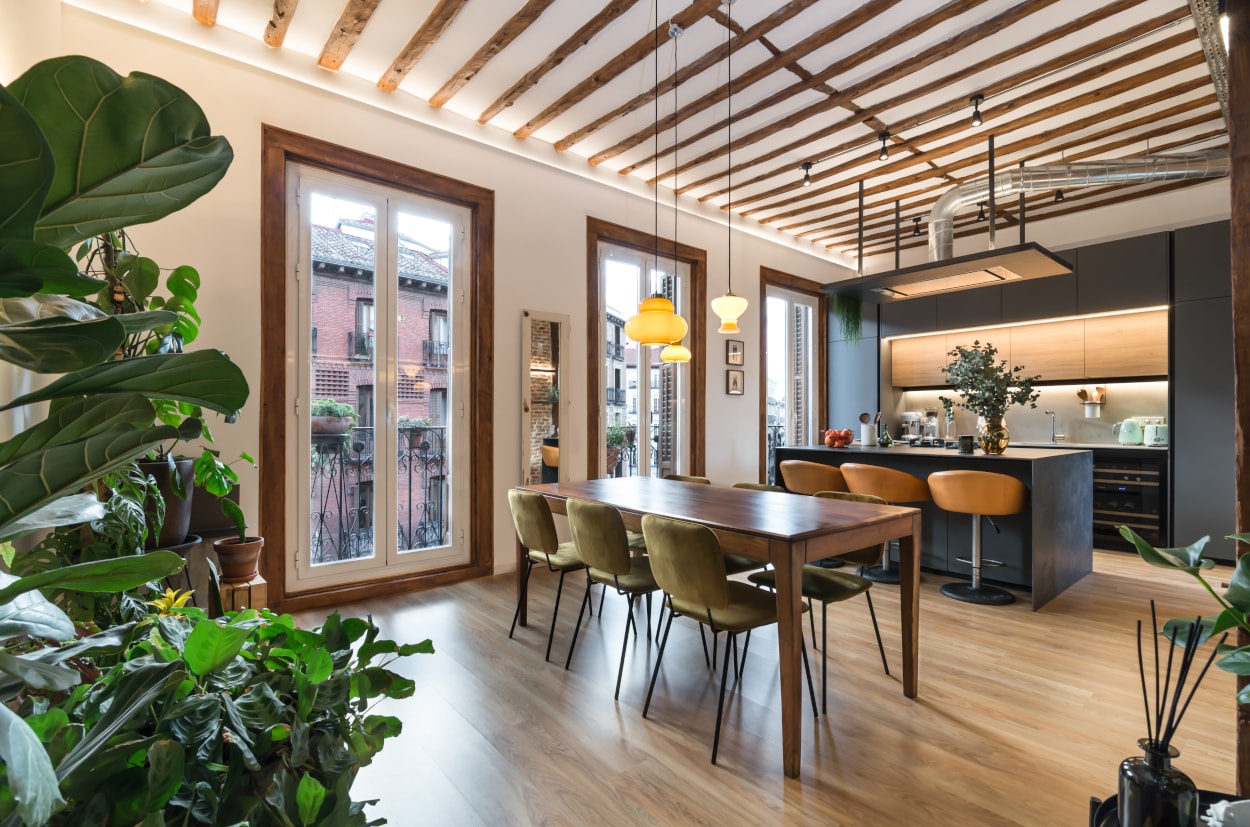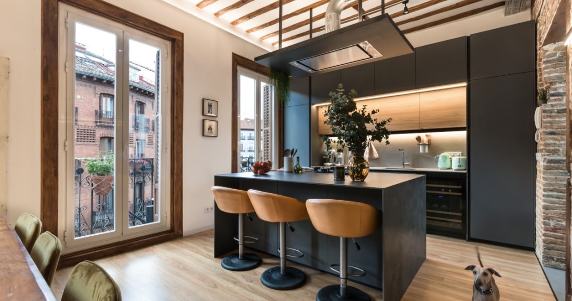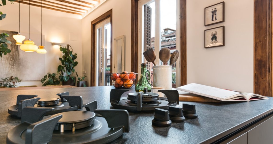 Esta cocina abierta al salón, forma parte del centro de la vivienda, con carácter y personalidad, luminosa y práctica.