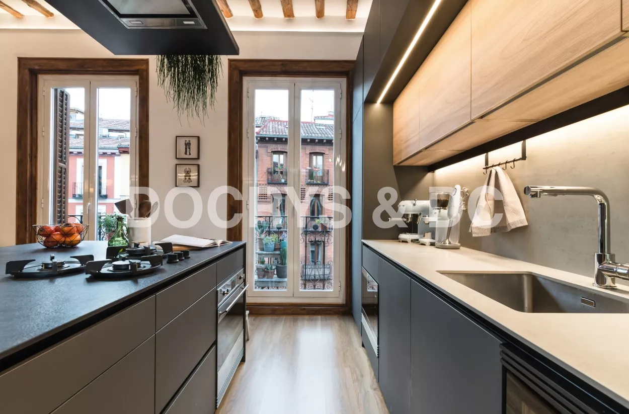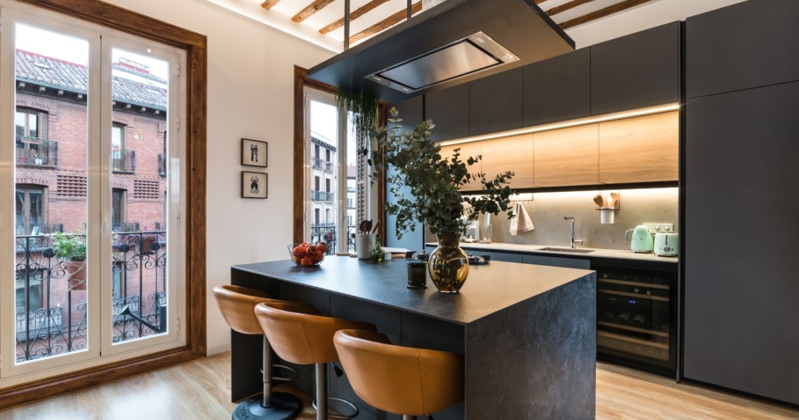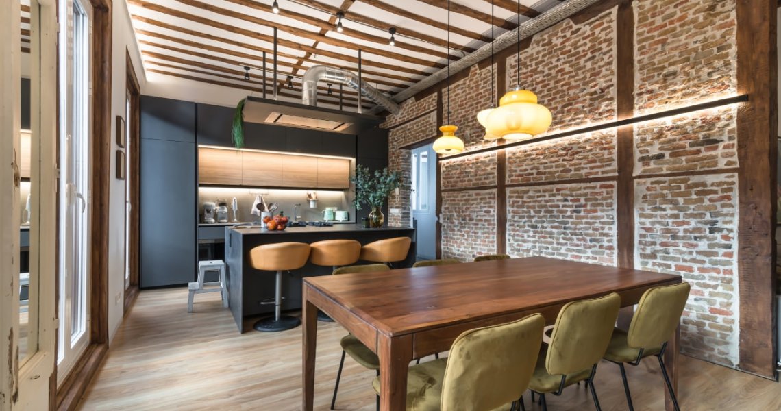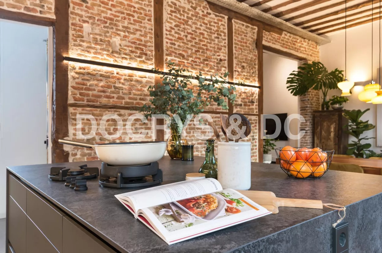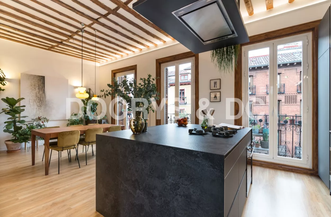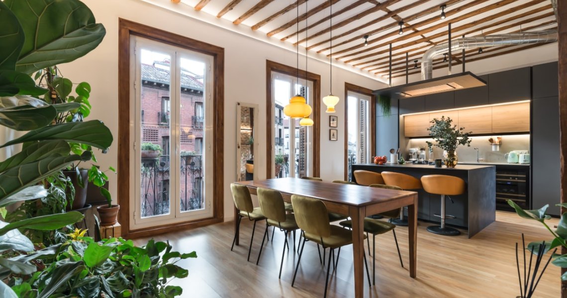 Esta cocina abierta al salón, forma parte del centro de la vivienda, con carácter y personalidad, luminosa y práctica.