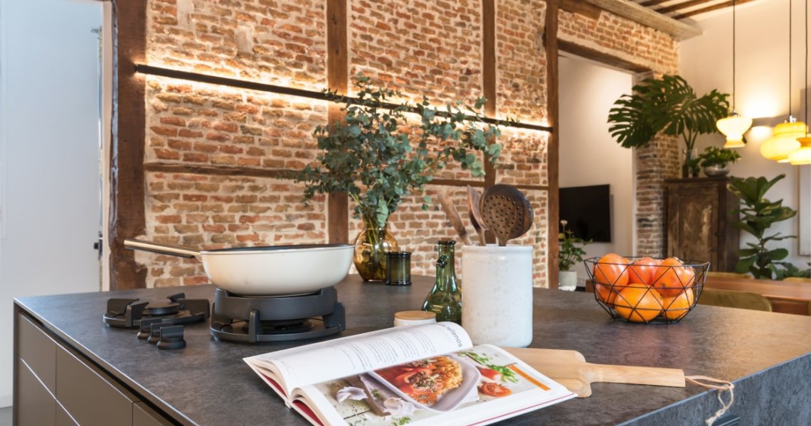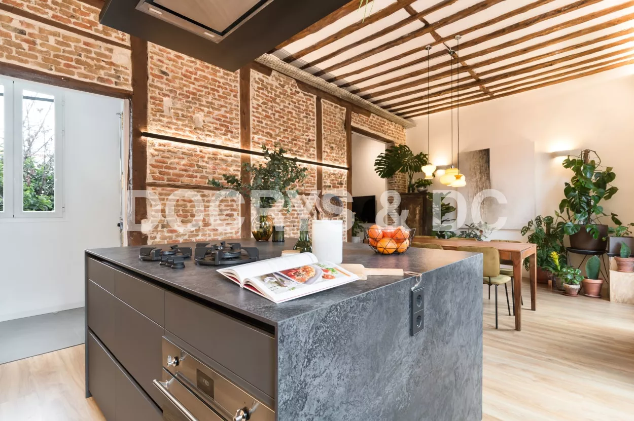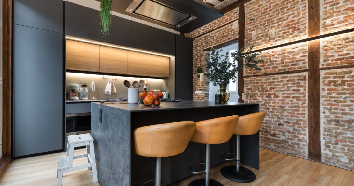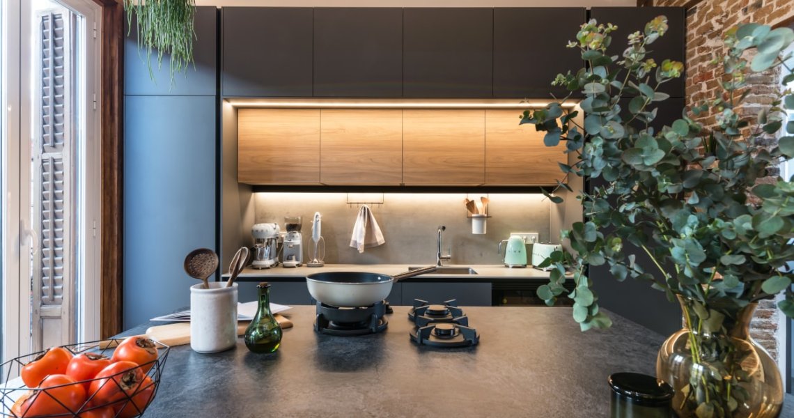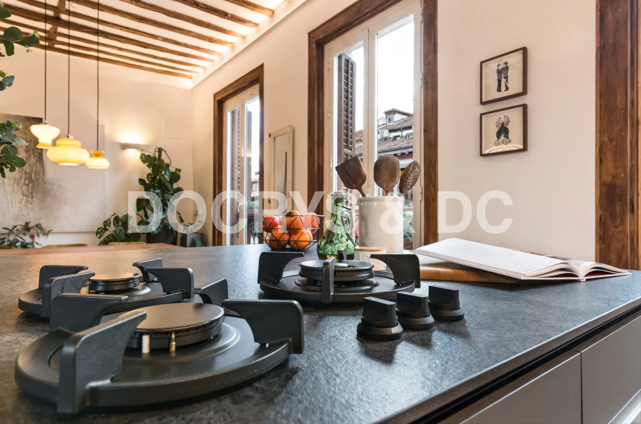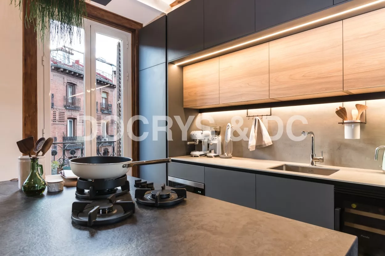 Esta cocina abierta al salón, forma parte del centro de la vivienda, con carácter y personalidad, luminosa y práctica.