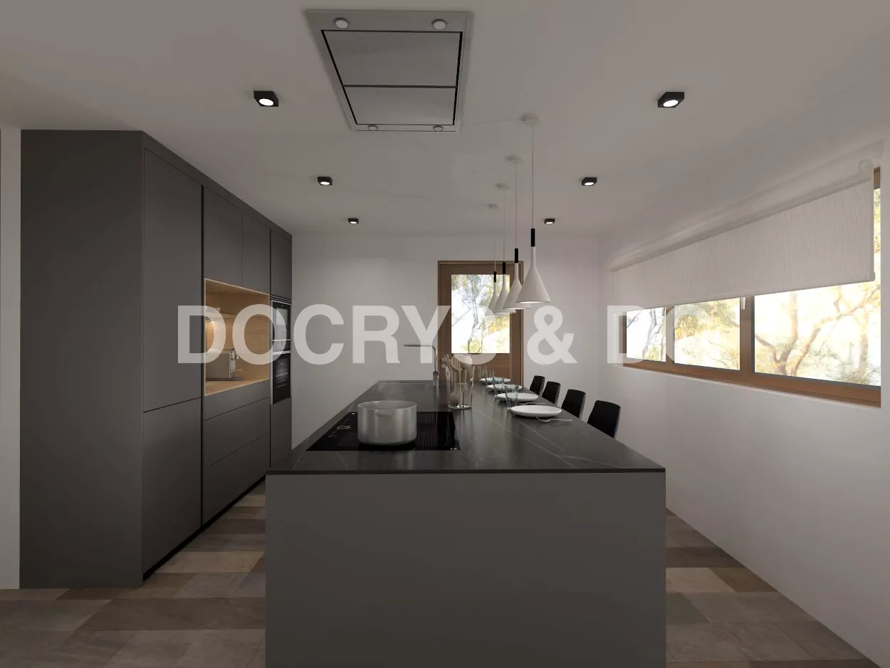 El diseño de esta cocina, se integra con la decoración del salón y se convierte en el núcleo principal de la vivienda, un lugar perfecto para compartir y disfrutar.