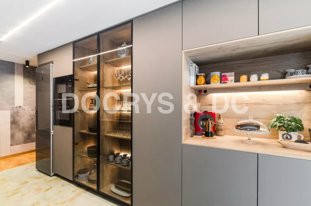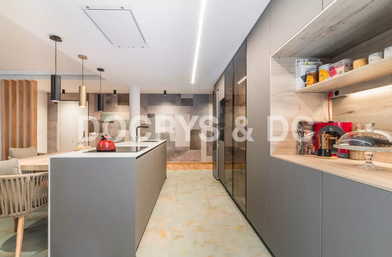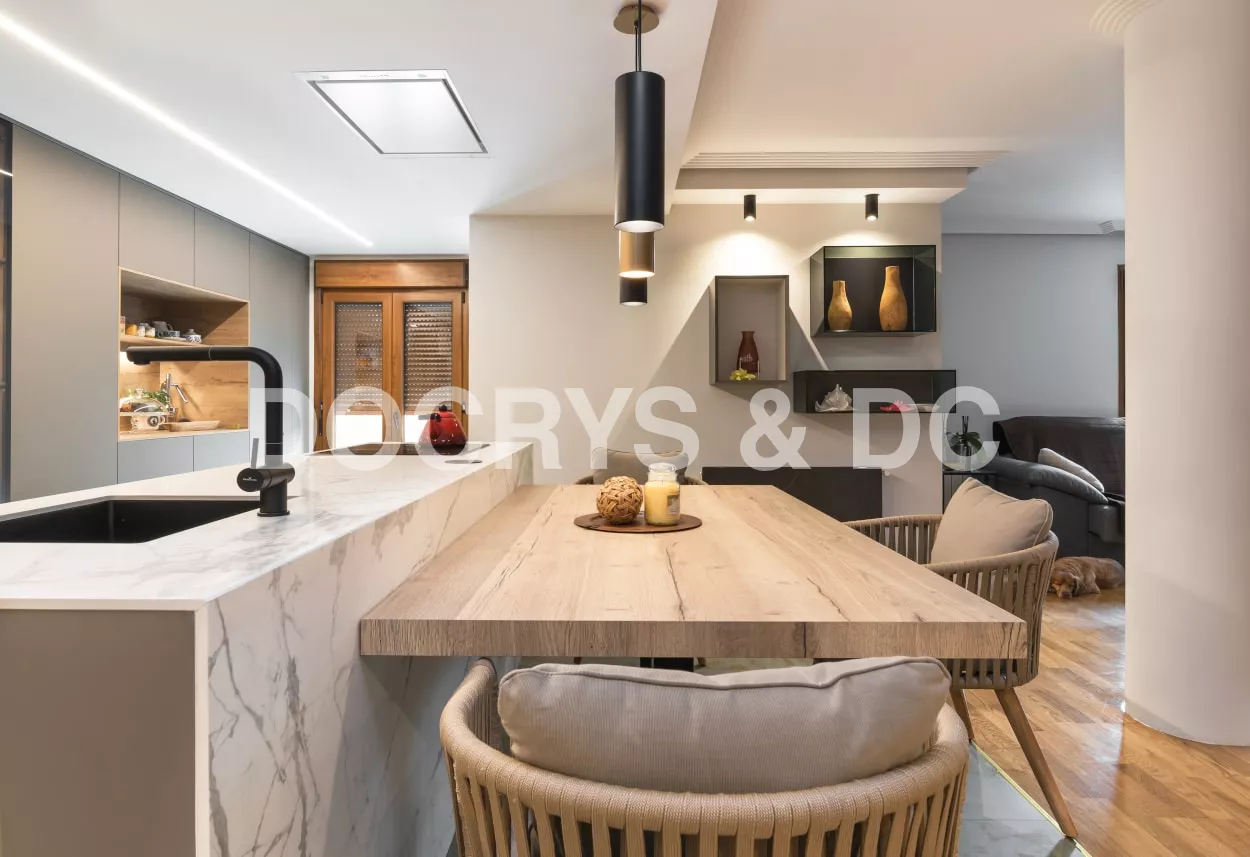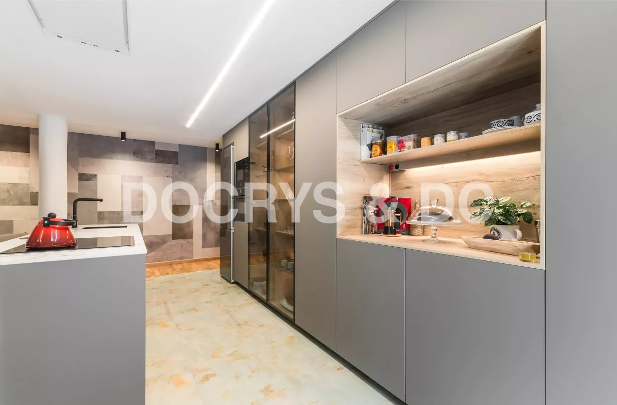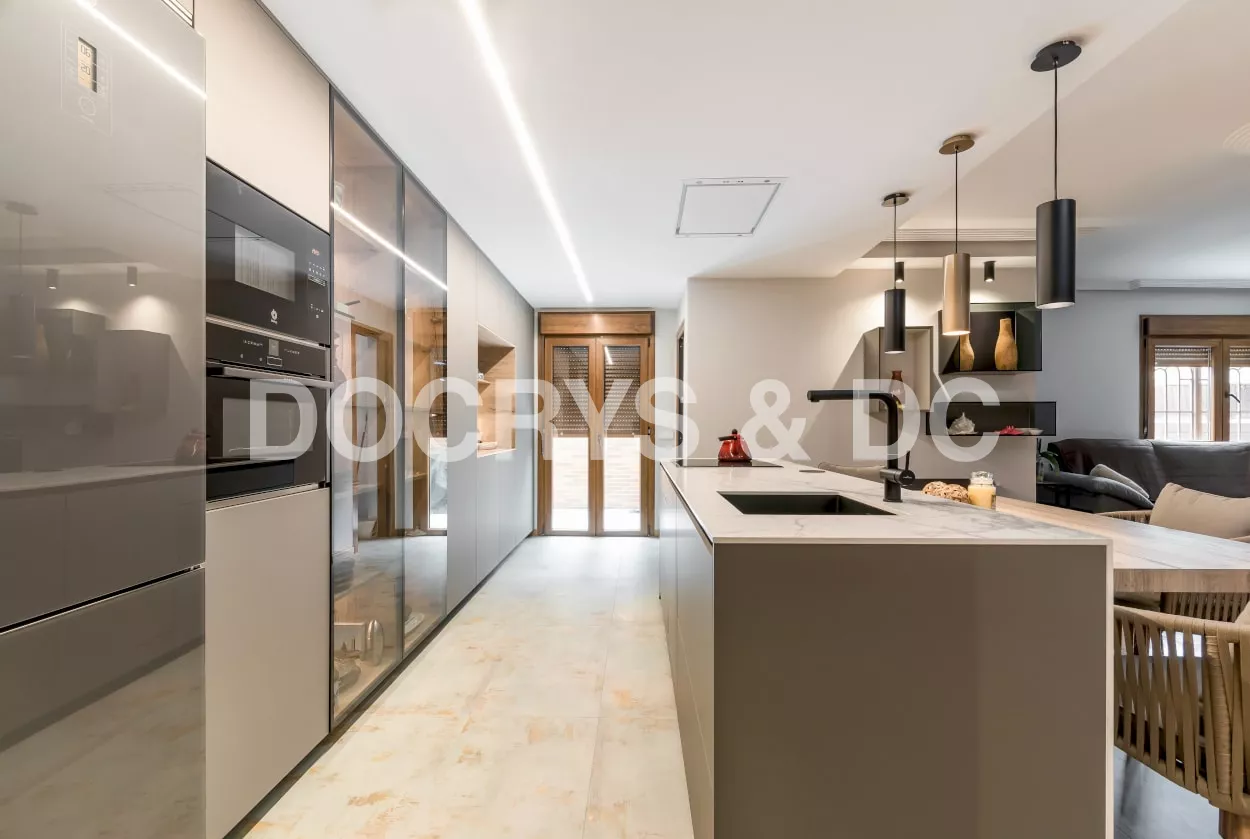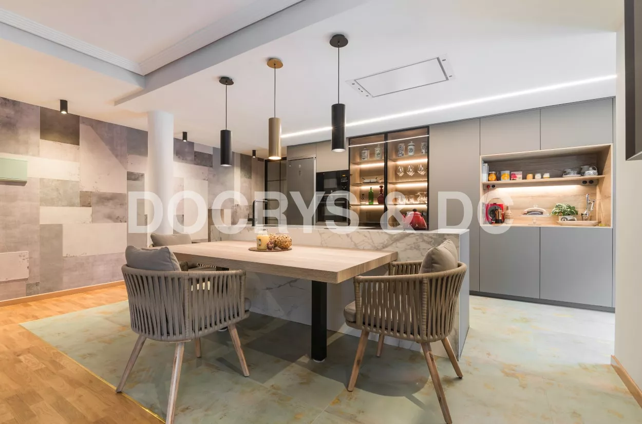 El diseño de esta cocina, es abierta al salón, creando así, un espacio con gran luminosidad y amplitud. El diseño de este proyecto se mimetiza a la perfección con la decoración del resto de la vivienda.