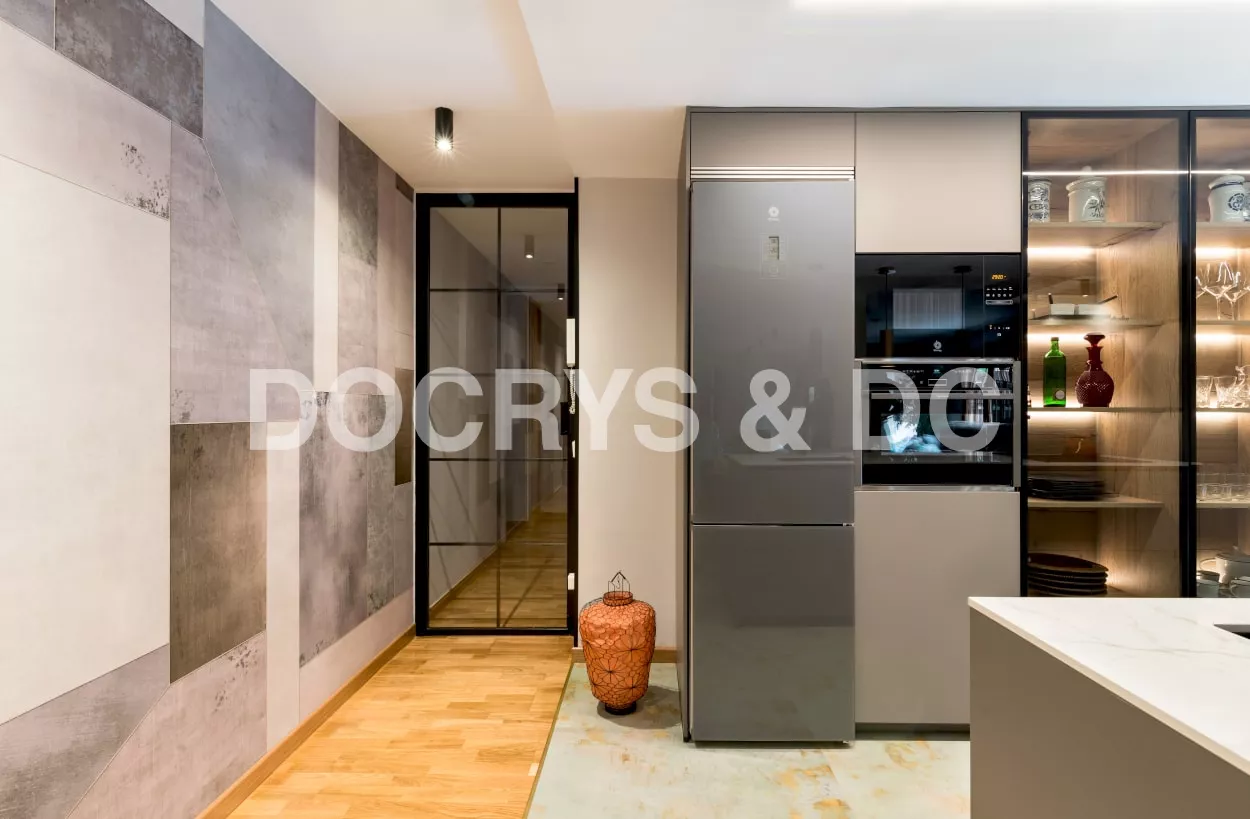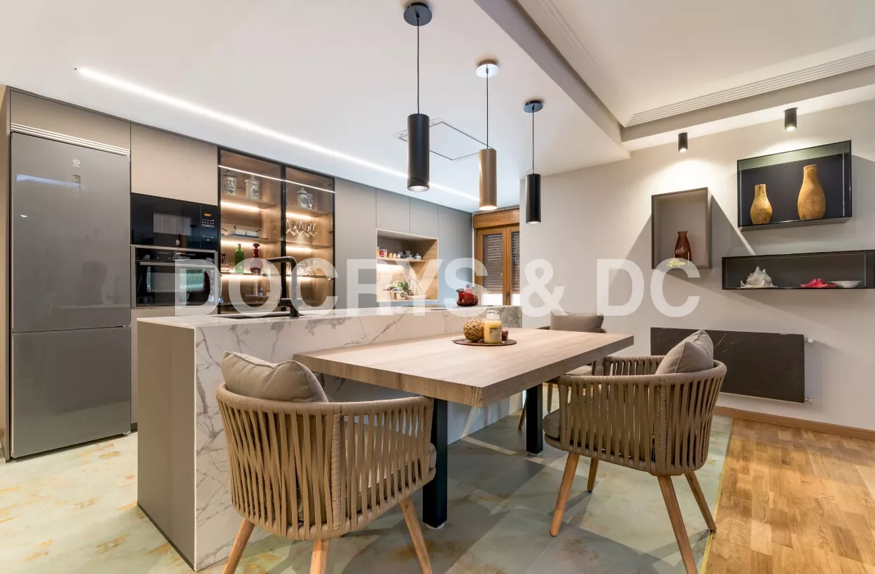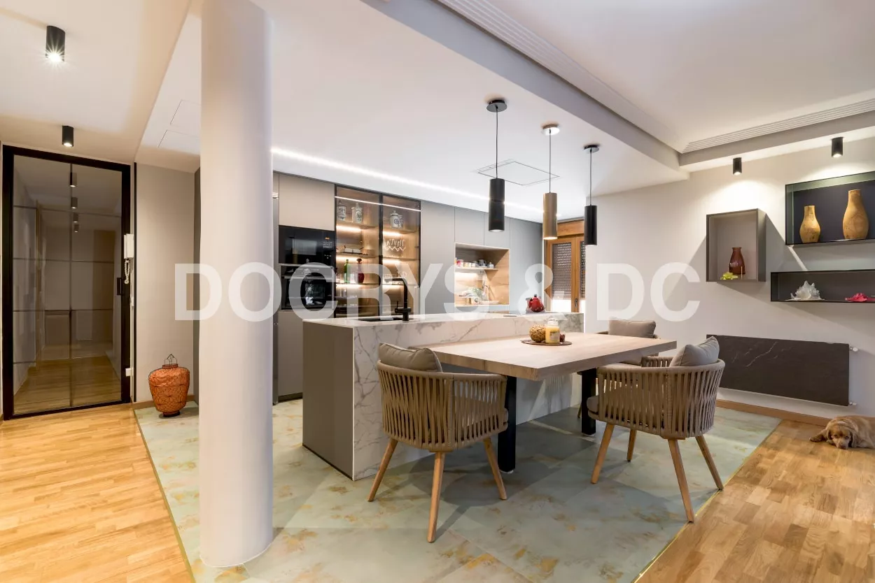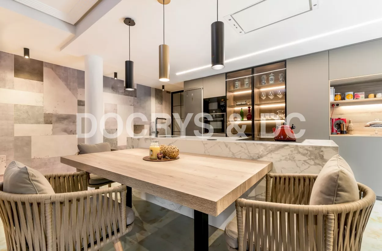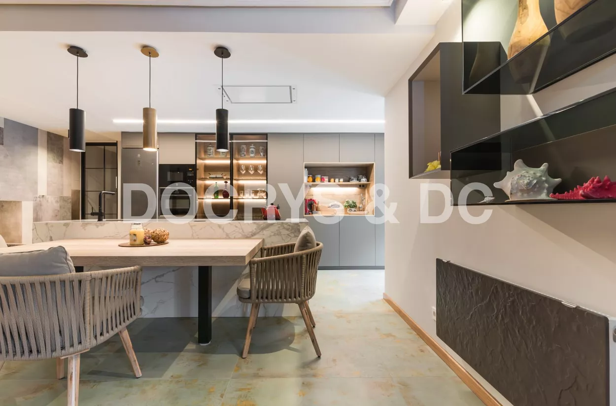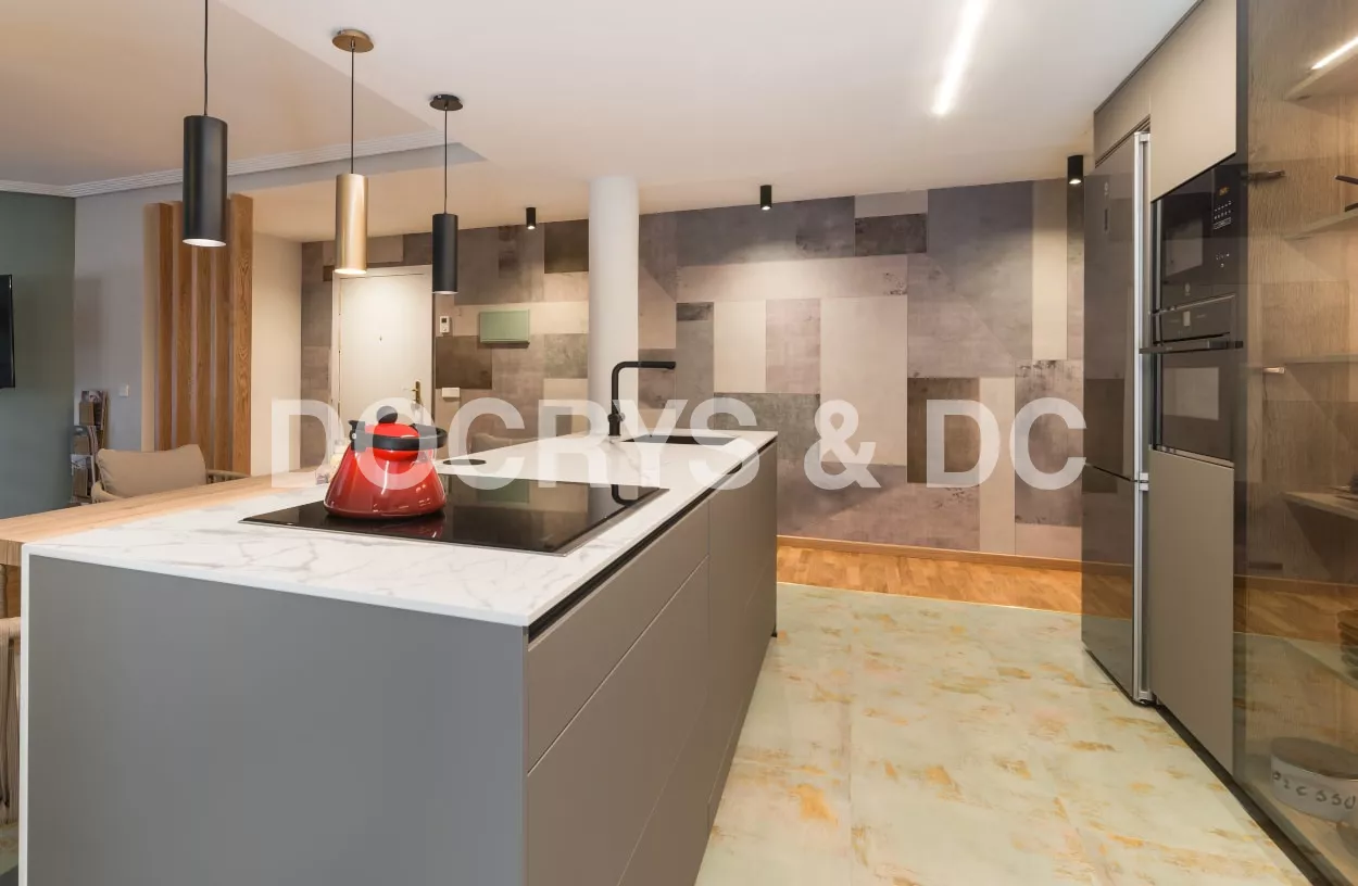 El diseño de esta cocina, es abierta al salón, creando así, un espacio con gran luminosidad y amplitud. El diseño de este proyecto se mimetiza a la perfección con la decoración del resto de la vivienda.