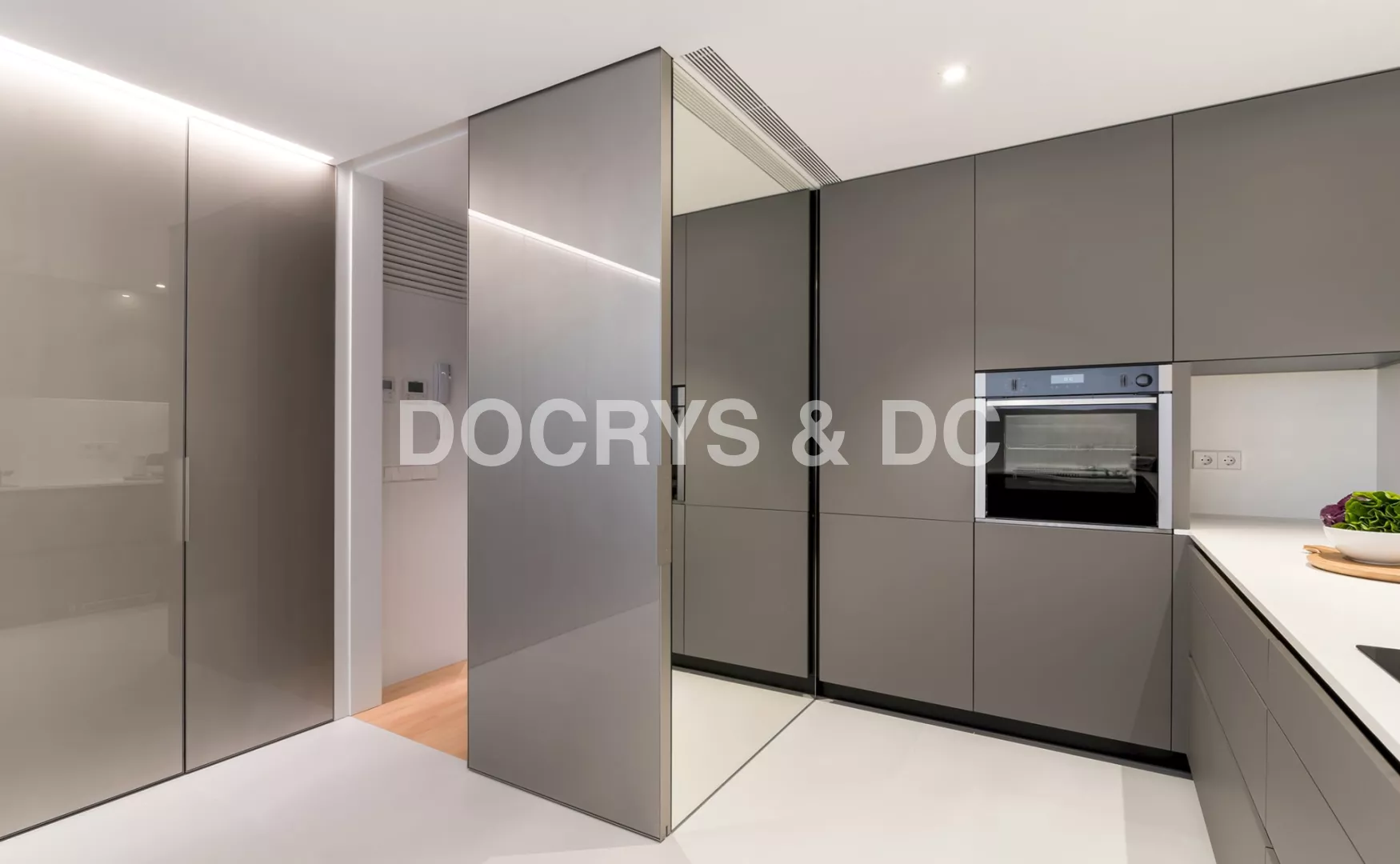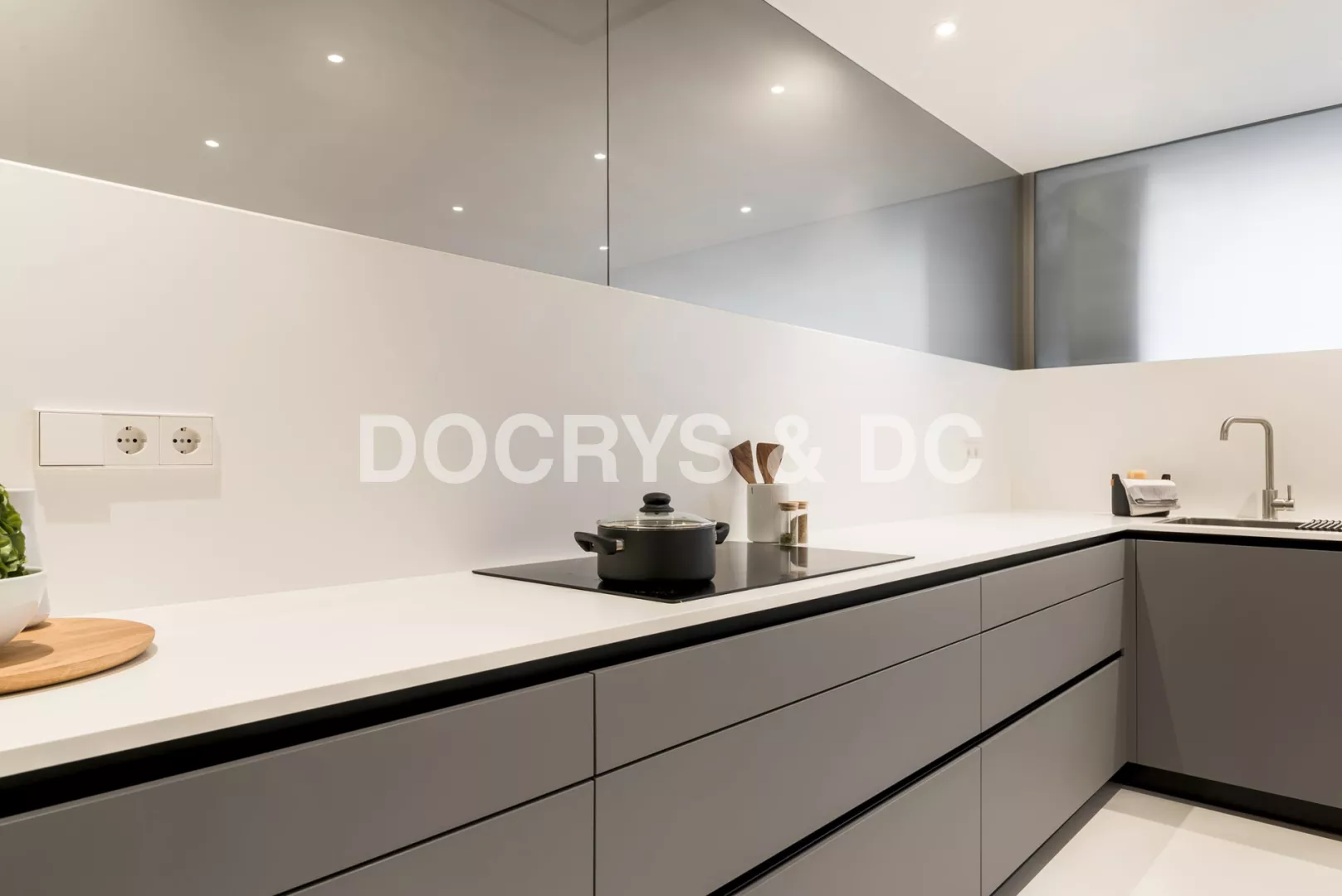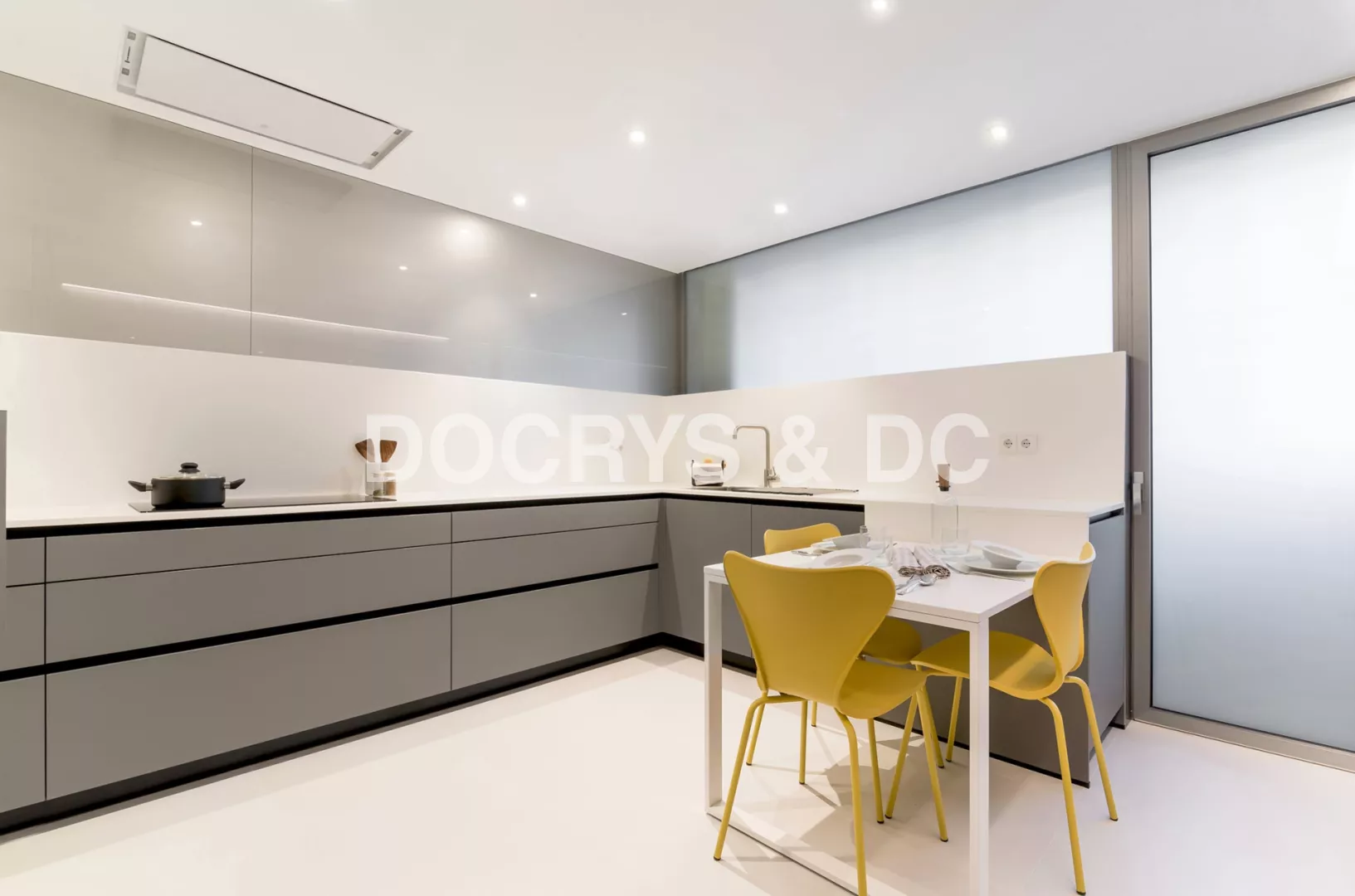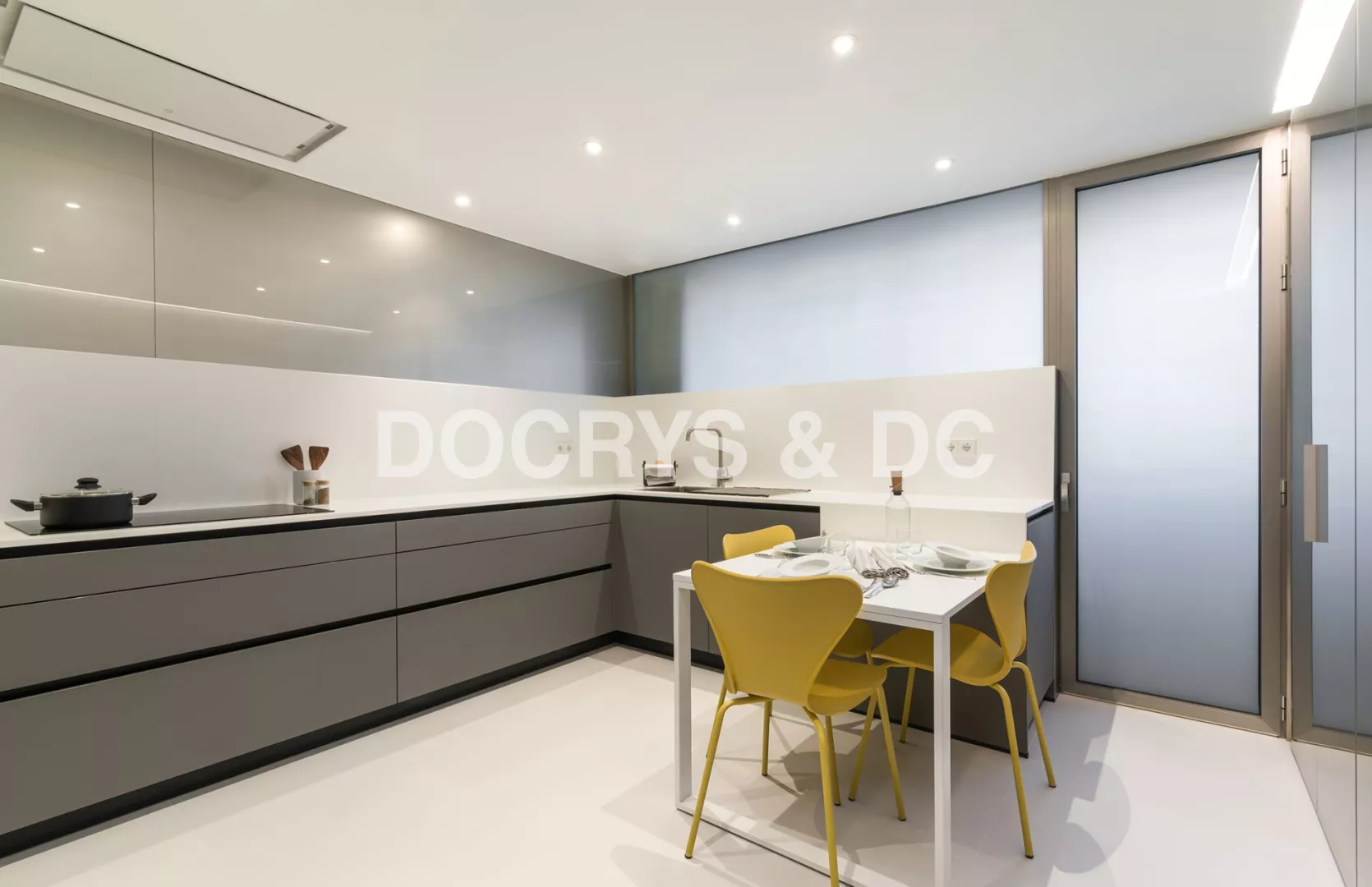 Las líneas rectas, el color gris antracita y la distribución, convierten este espacio en un lugar luminoso, amplio, moderno y elegante.