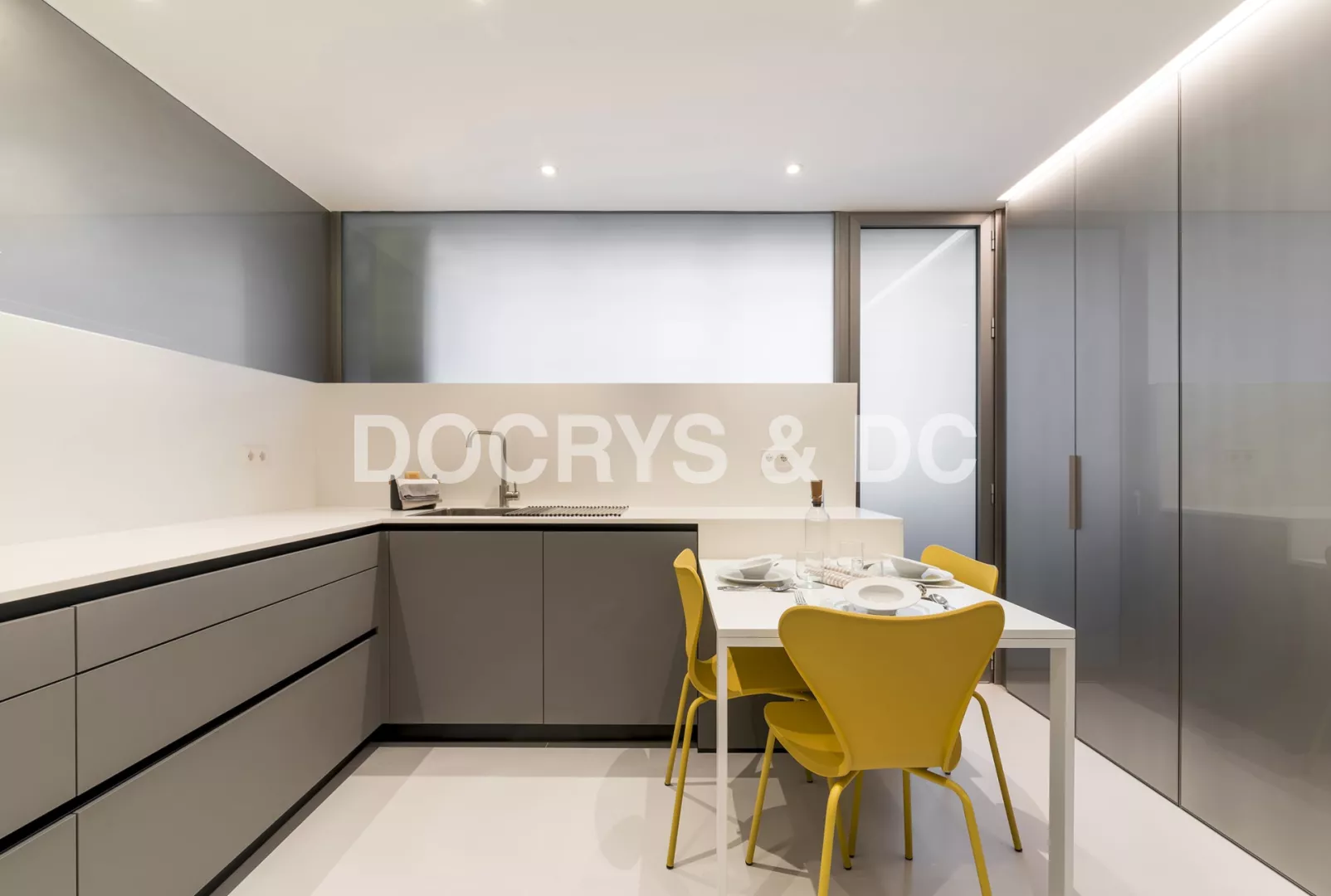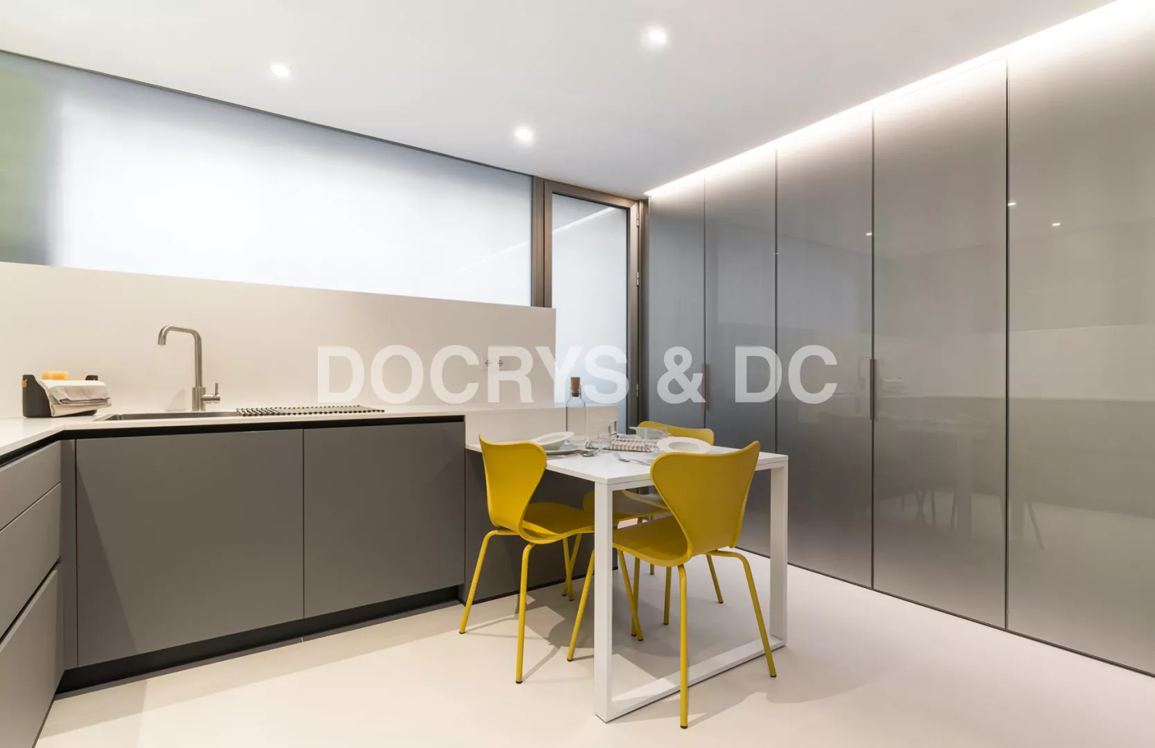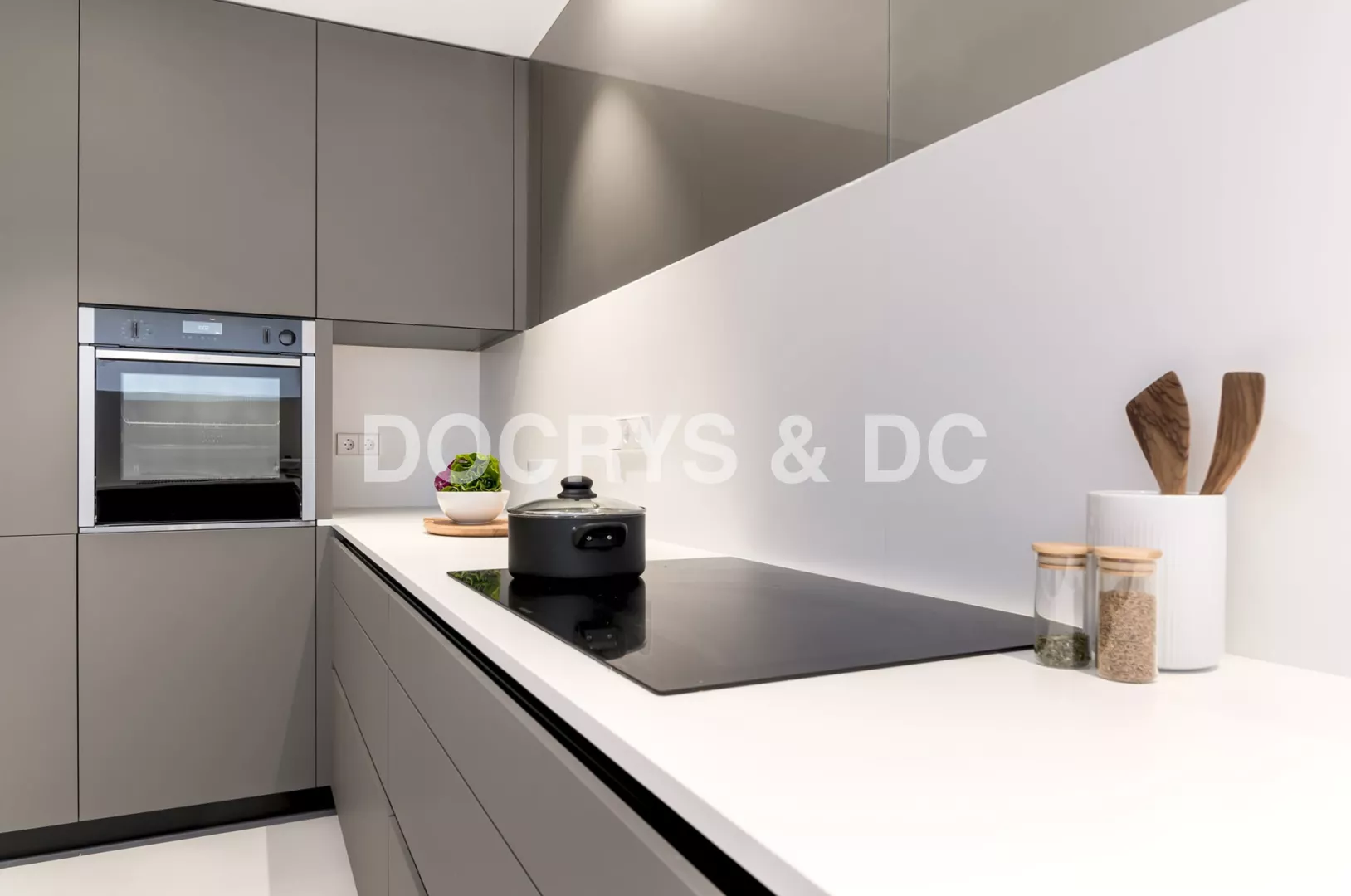 Las líneas rectas, el color gris antracita y la distribución, convierten este espacio en un lugar luminoso, amplio, moderno y elegante.