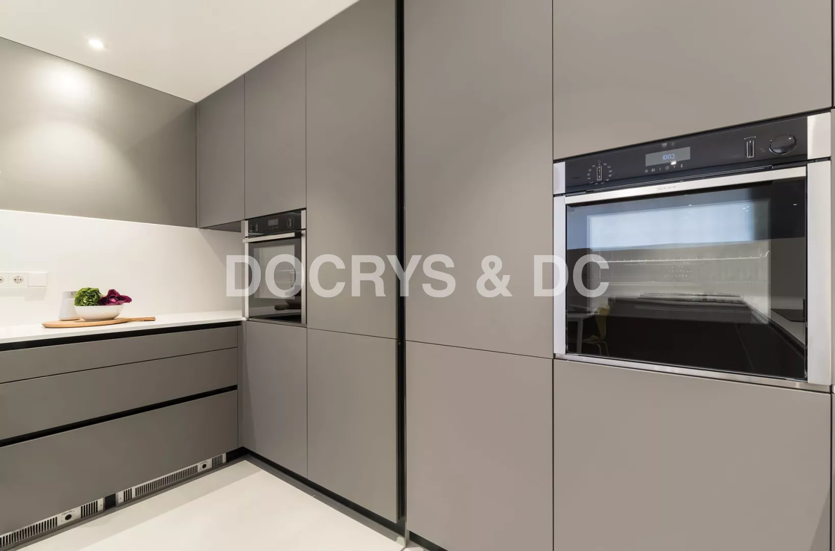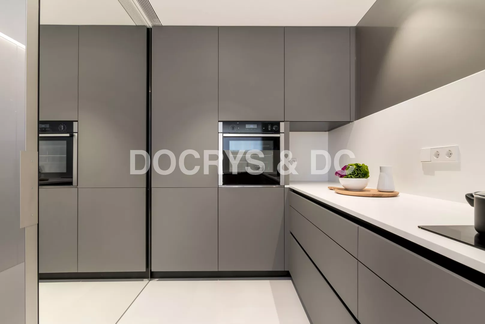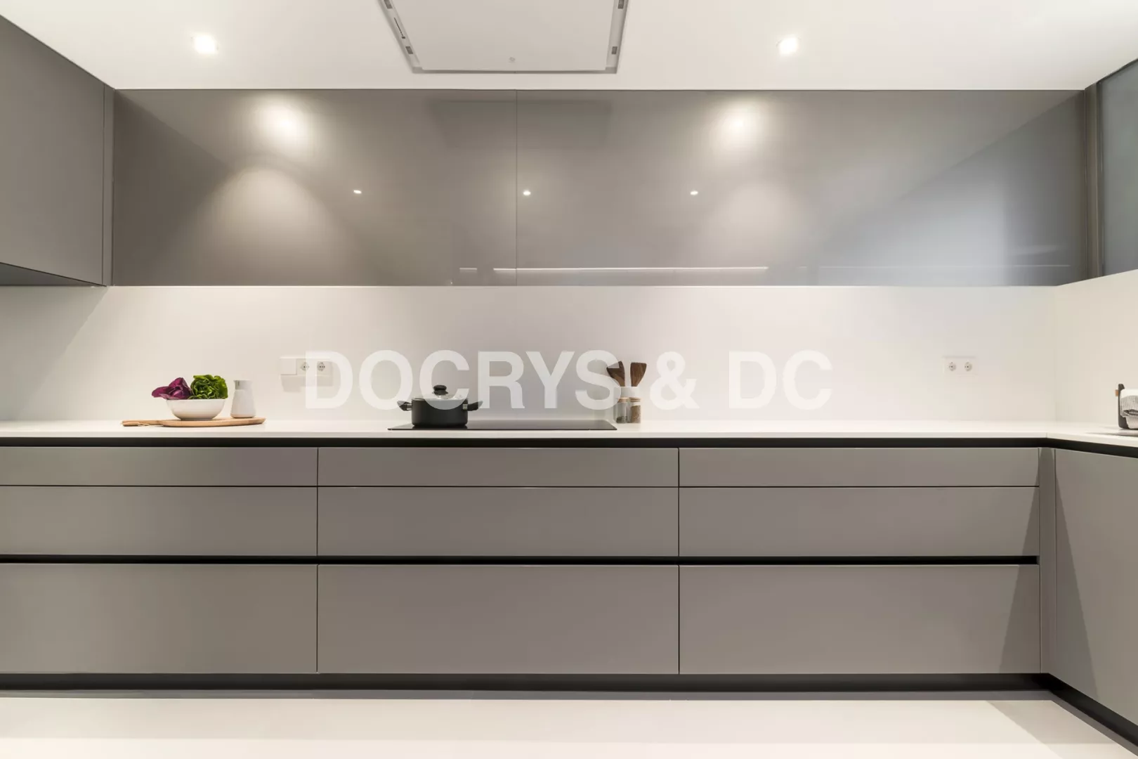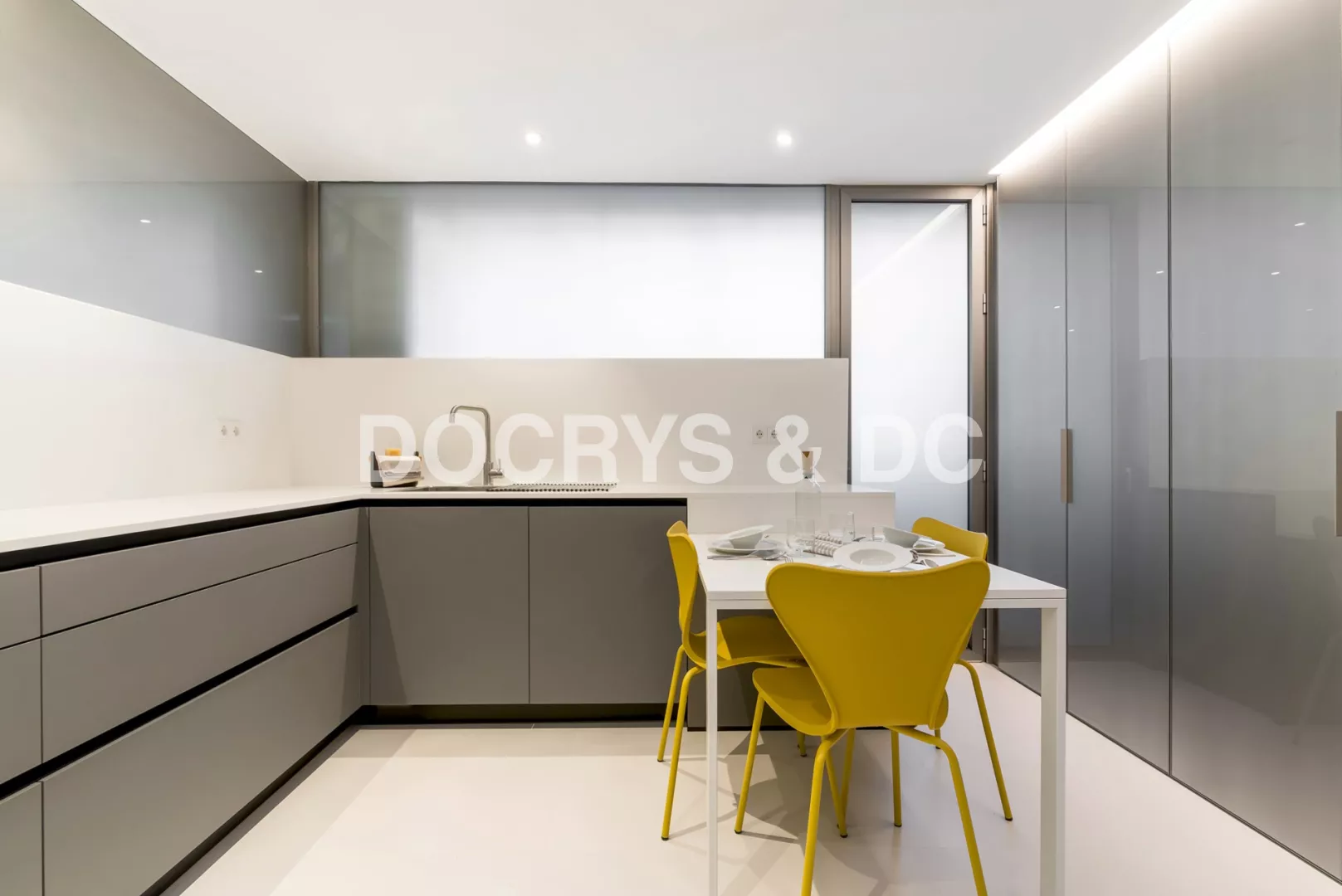 Las líneas rectas, el color gris antracita y la distribución, convierten este espacio en un lugar luminoso, amplio, moderno y elegante.