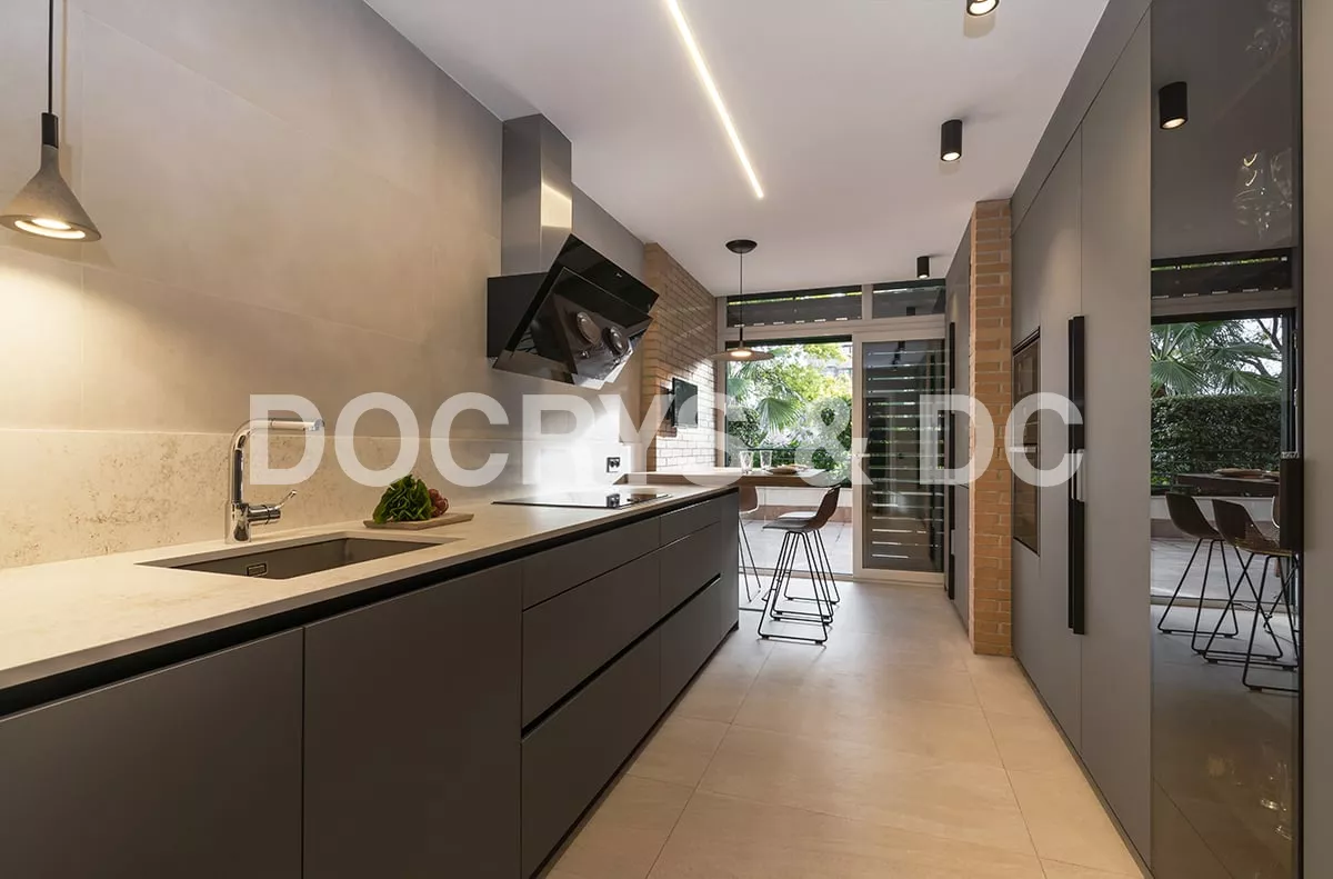 Diseño de cocina moderna en paralelo de Santos Cocinas
