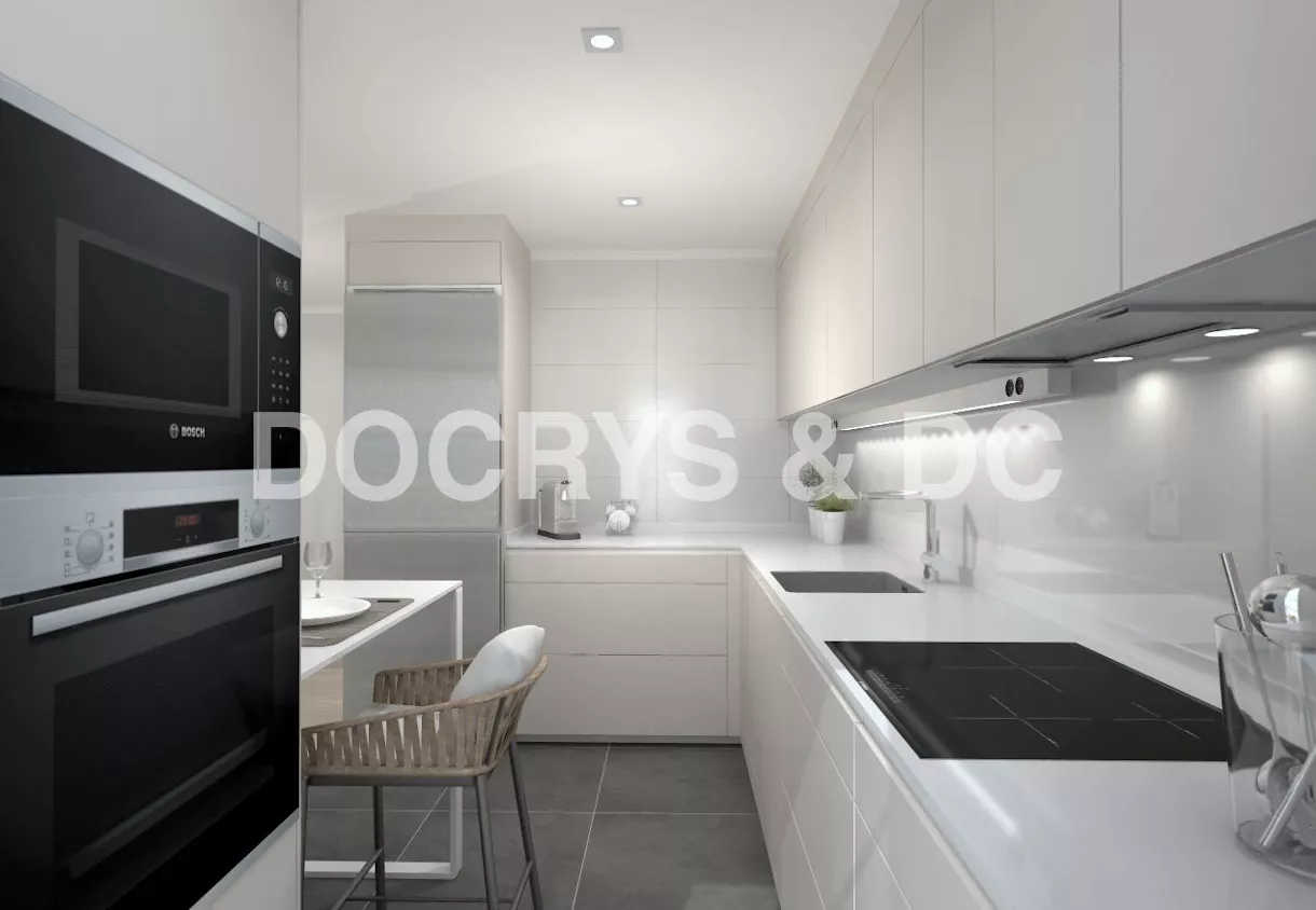 La cocina está abierta al salón, permitiendo la entrada de luz, creando un espacio luminoso y mucho más amplio.