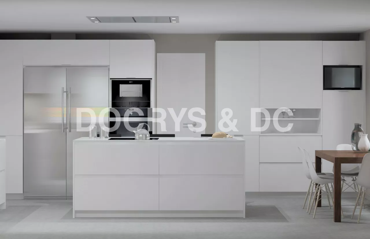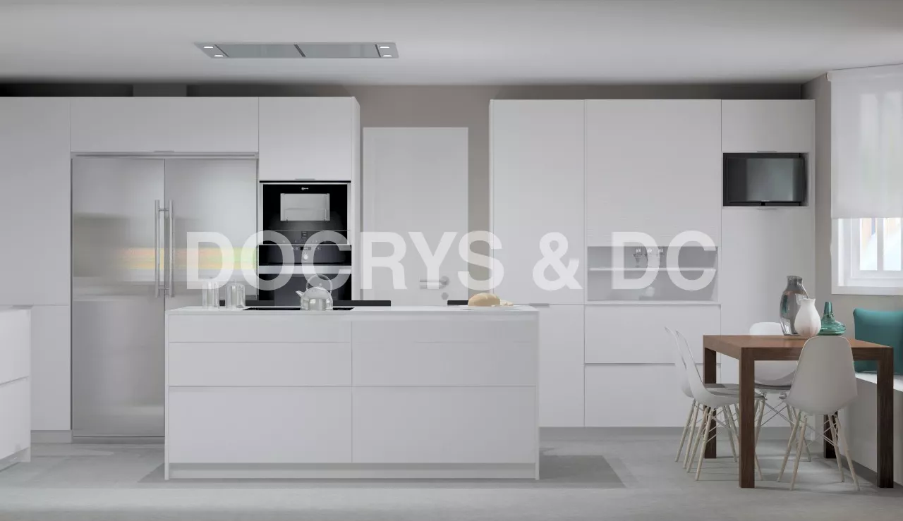 Cocina Santos LINE-L Seda Mate con Silestone Blanco Zeus y almacenaje optimizado