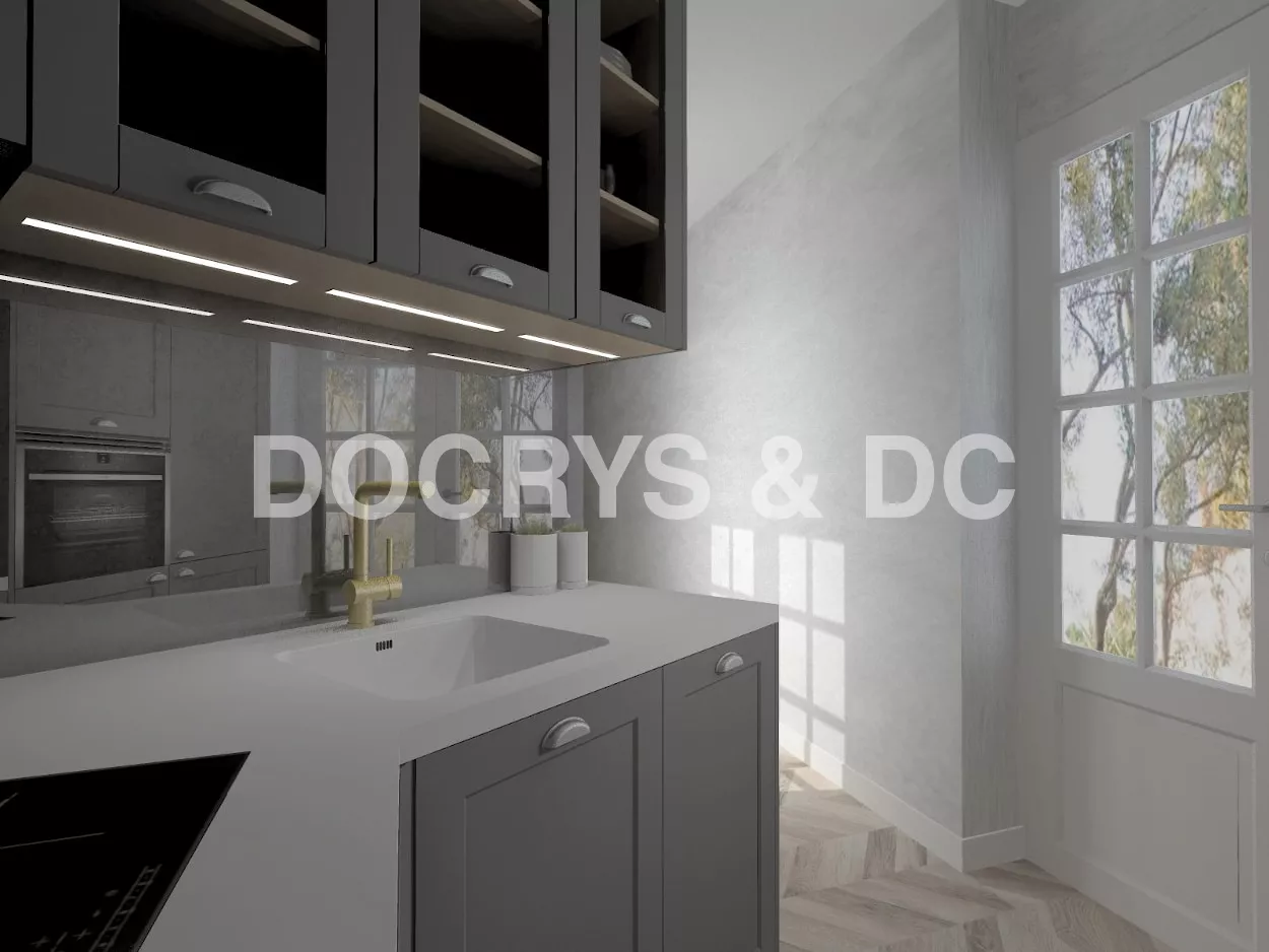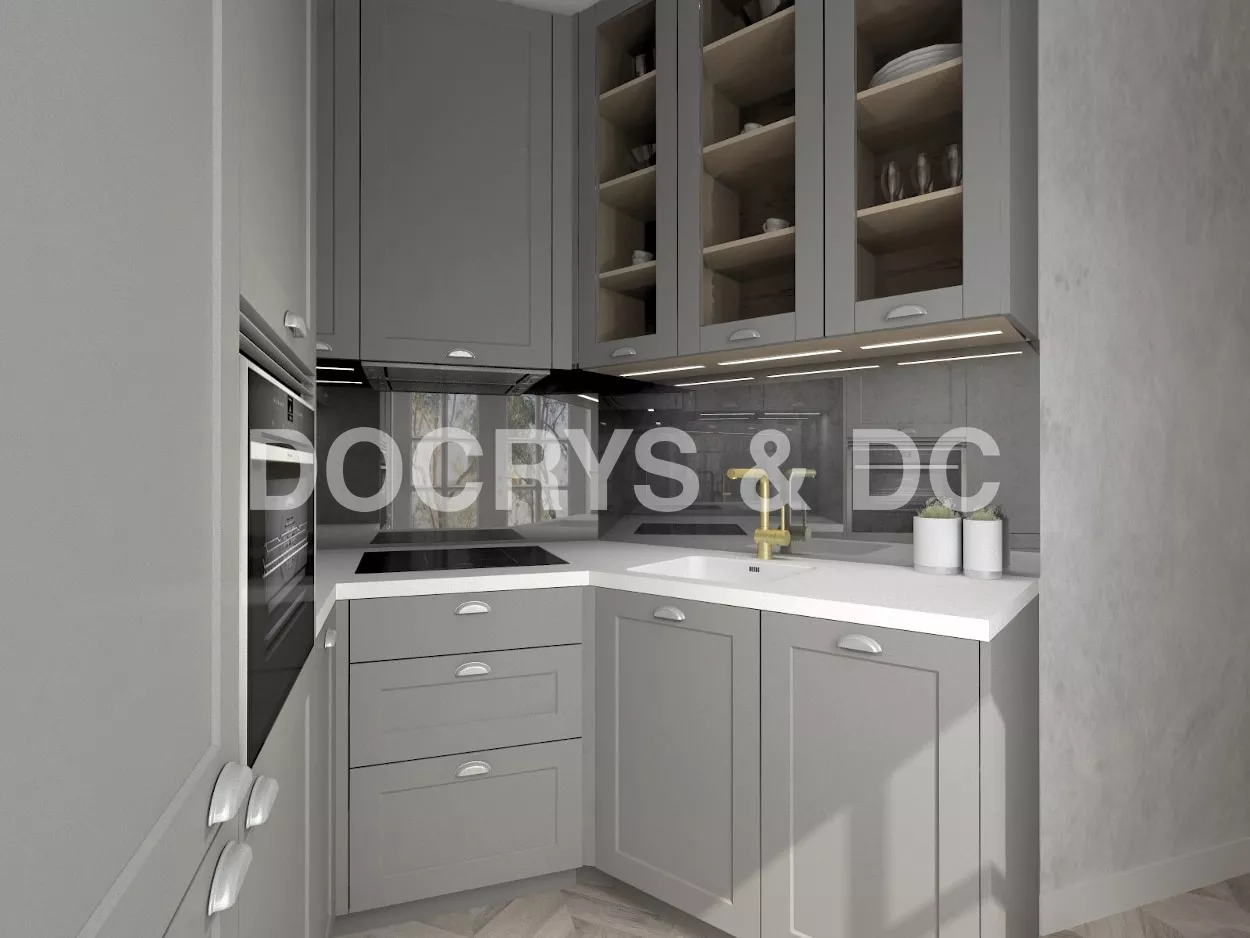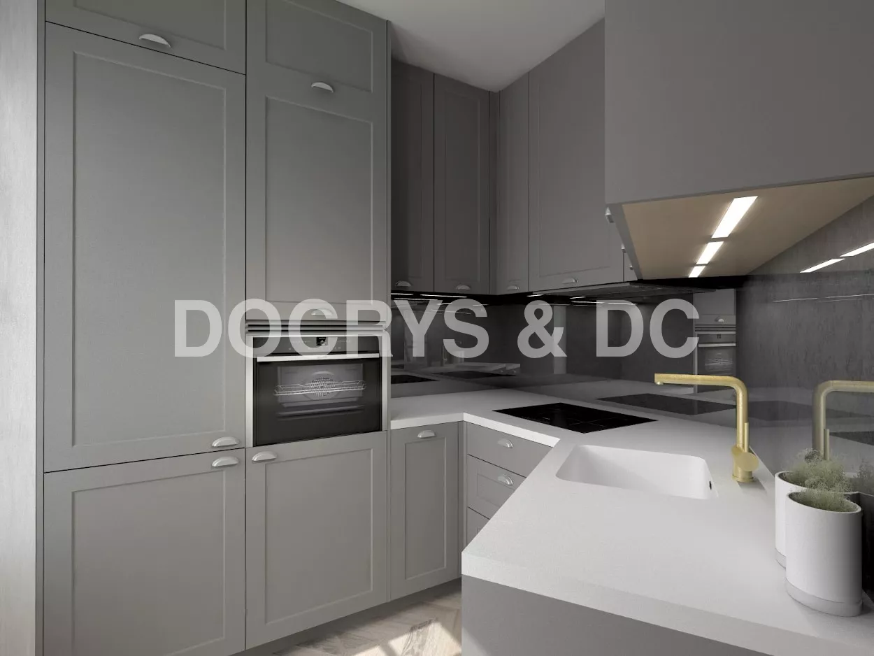 Cocina Santos en Gris vison seda mate con material Laca seda mate y encimera de Lapitec, color Bianco assoluto, acabado Satin.