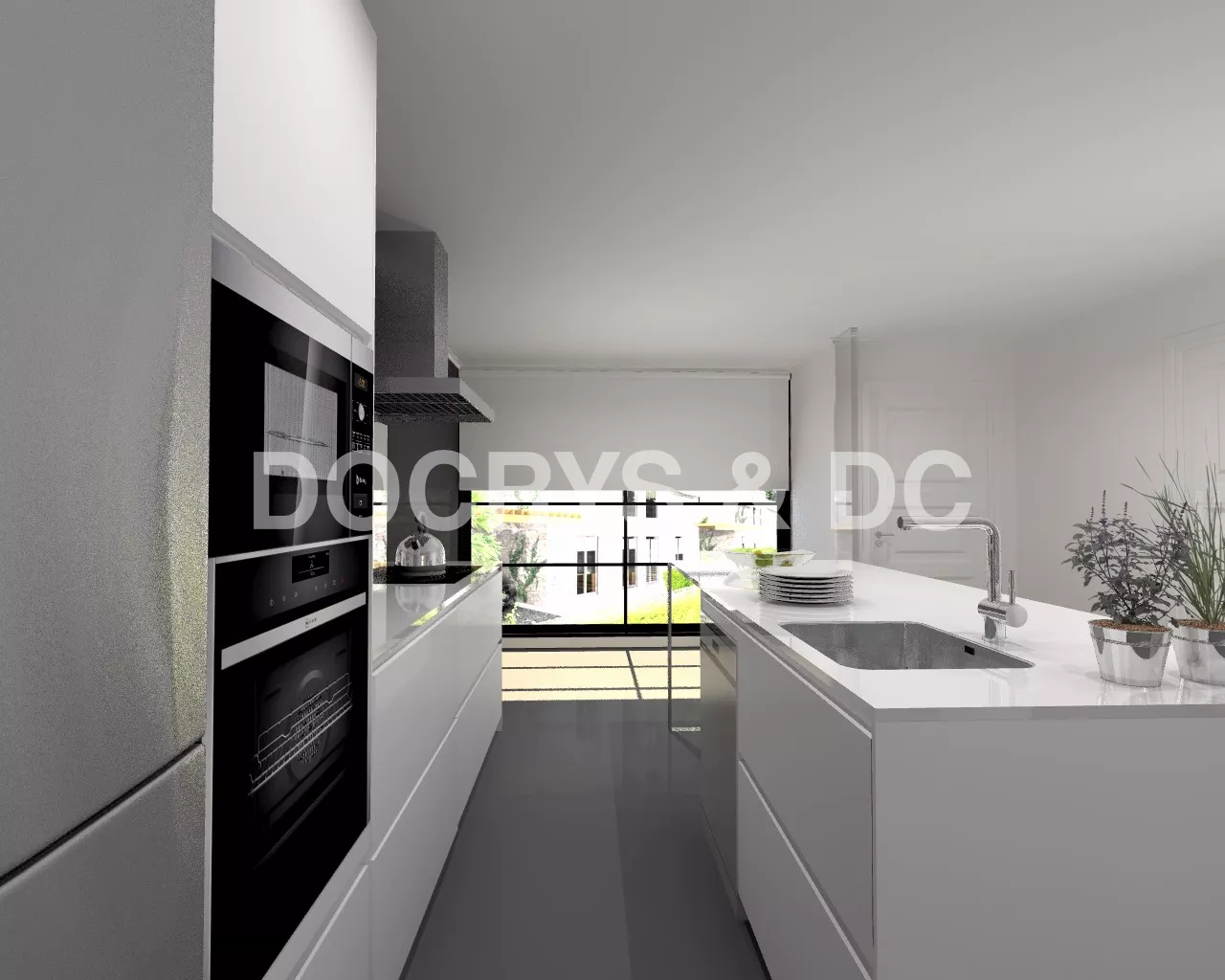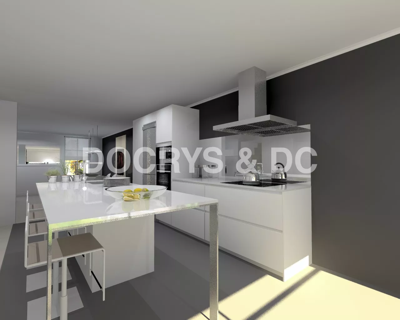 Cocina Santos | Modelo Line E Estratificado Blanco Innsbruk | Encimera Silestone Blanco Zeus