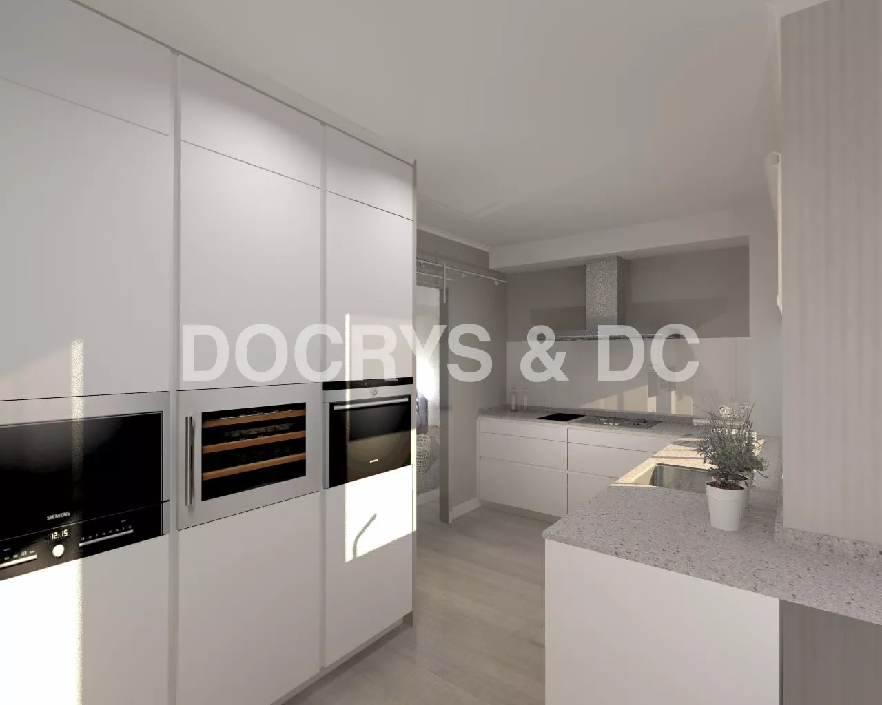 Cocina Santos | Modelo Line E13 Estratificado Blanco Innsbruck | Encimera Silestone Royal Reef