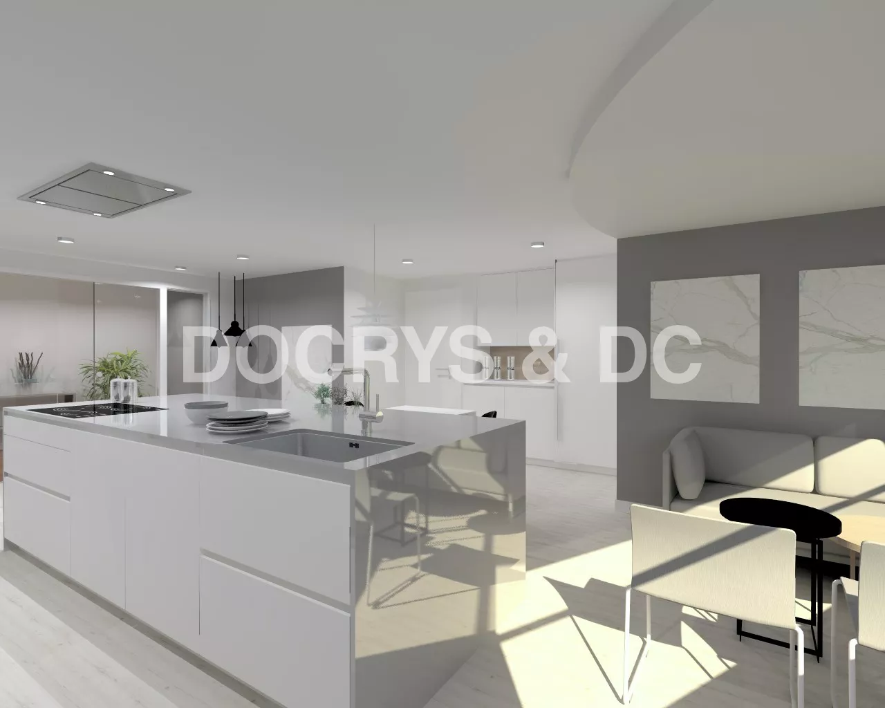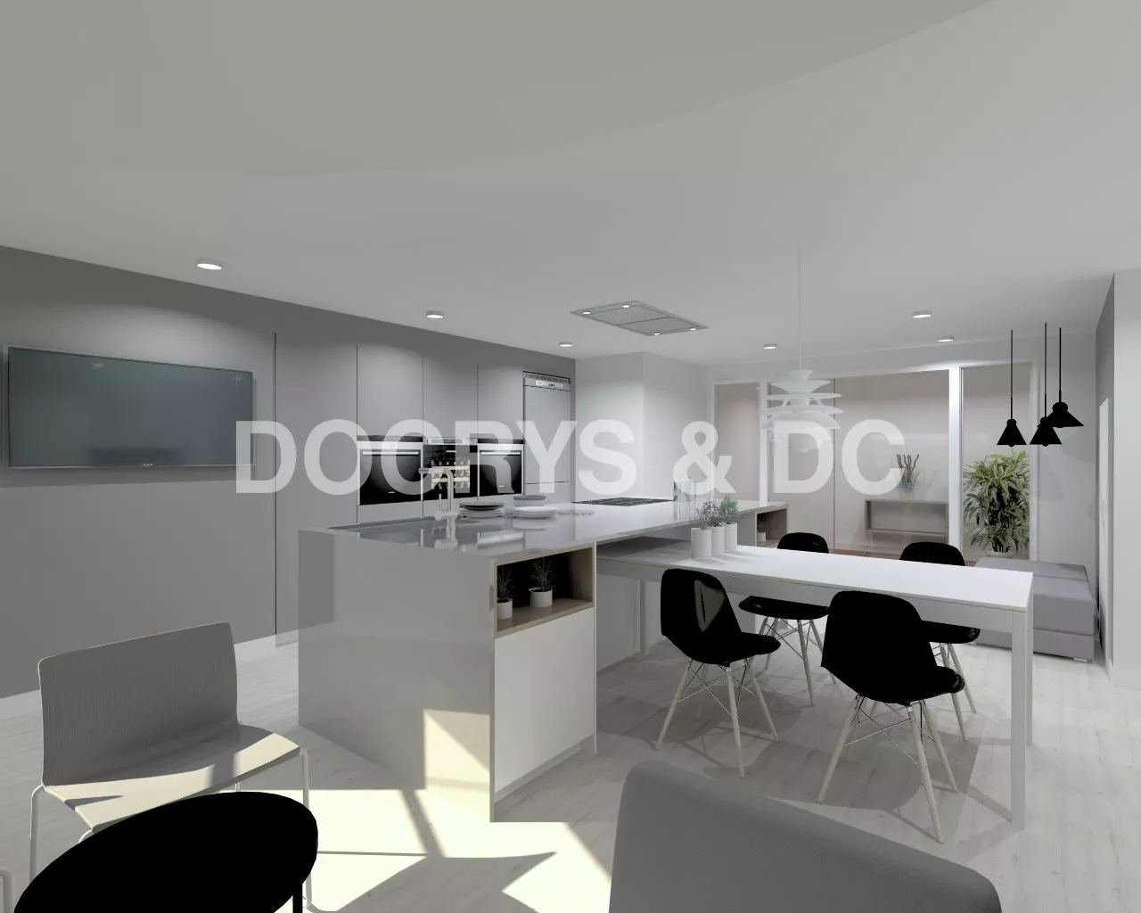Cocina Santos | Modelo Line Lah Blanco Y Gris Vison | Encimera Dekton Lumina Solid