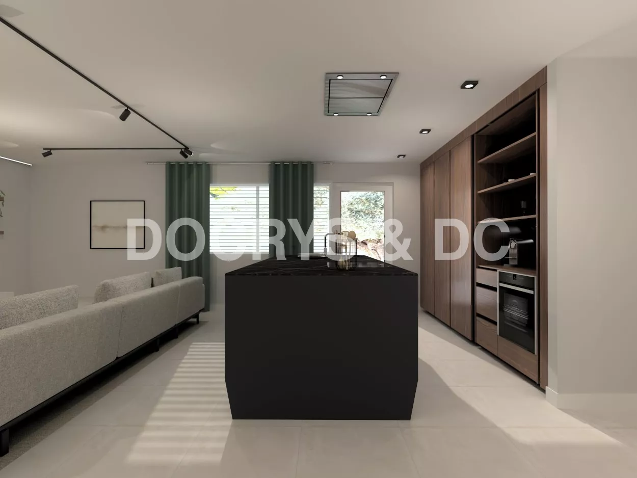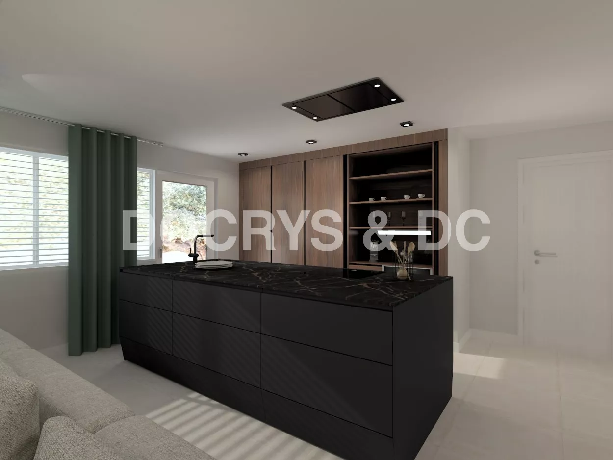 Esta cocina abierta abierta al salón, forma parte del corazón de la vivienda, elegante, moderna y luminosa.