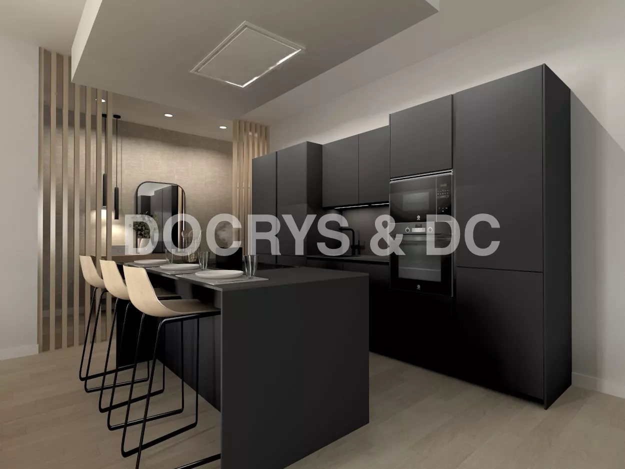 Esta cocina abierta abierta al salón, es el espacio principal de la vivienda, el punto de reunión, un espacio ideal para compartir y disfrutar.
