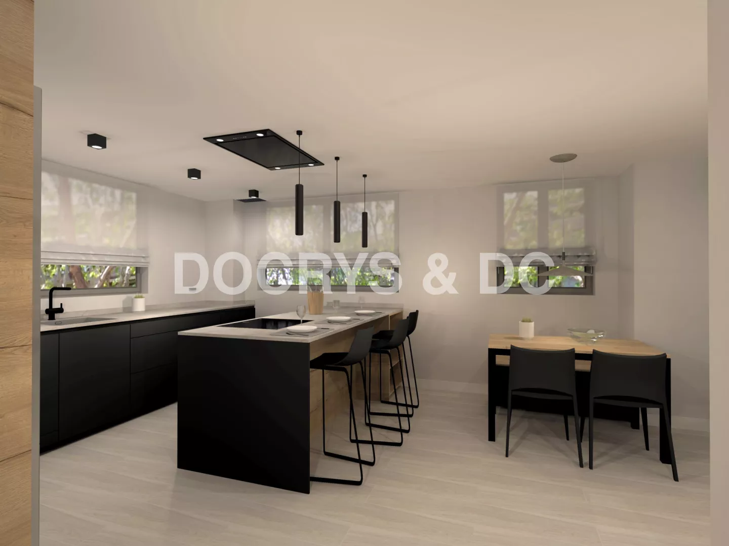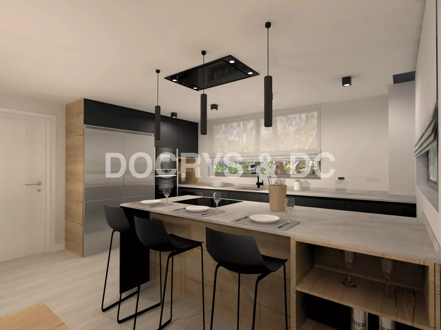 El diseño de esta cocina moderna es abierta al salón, creando una gran amplitud visual.
