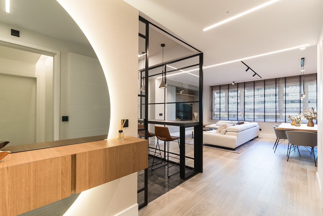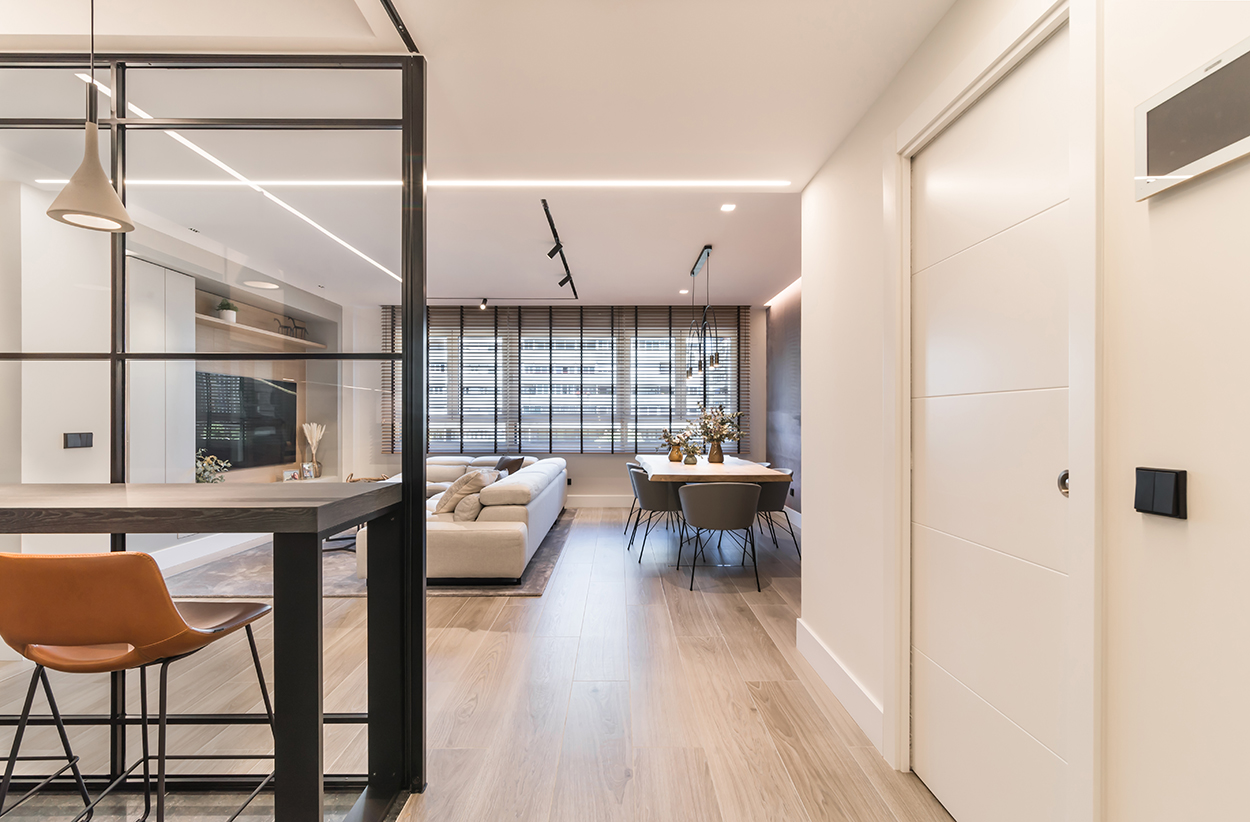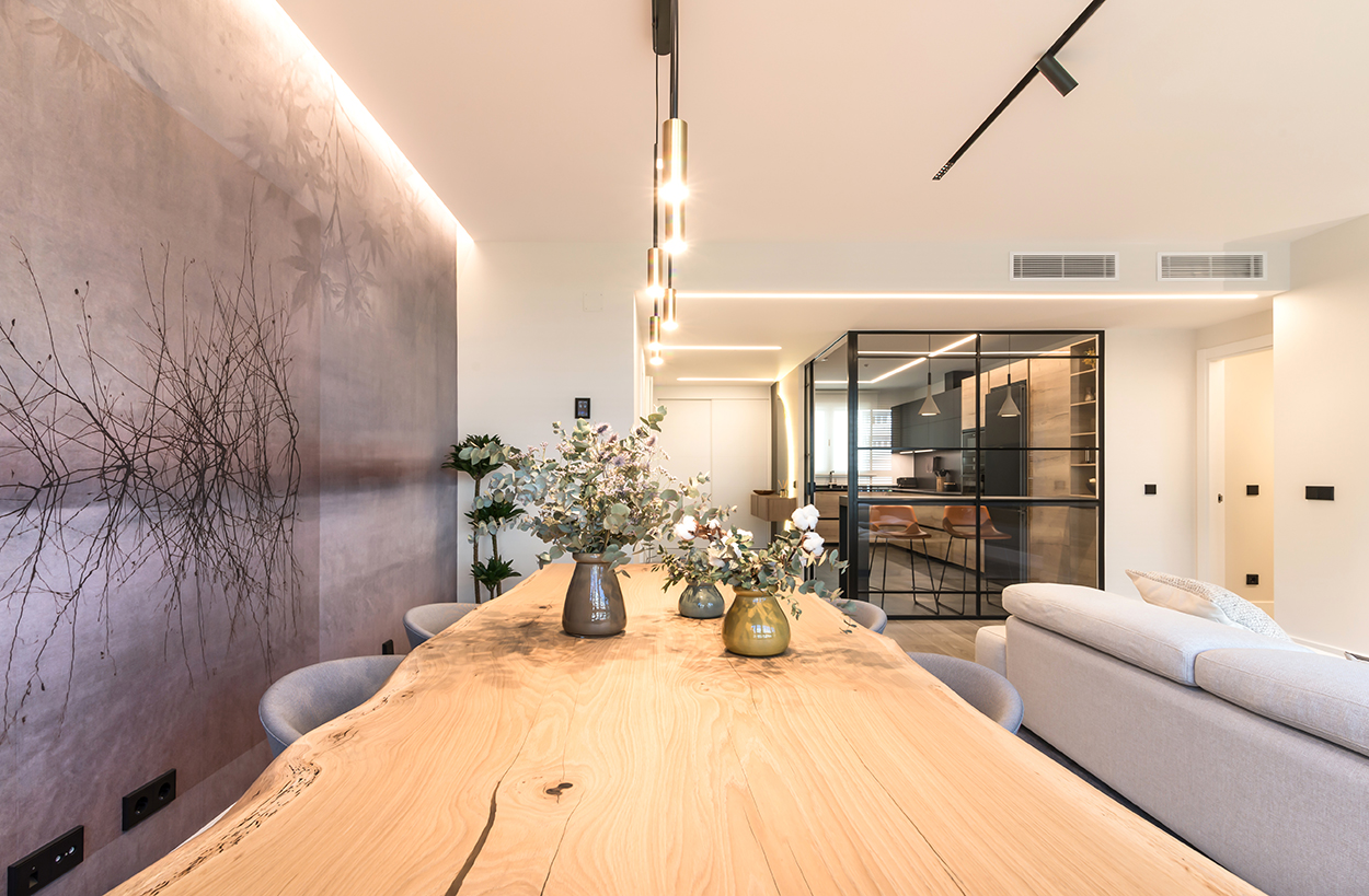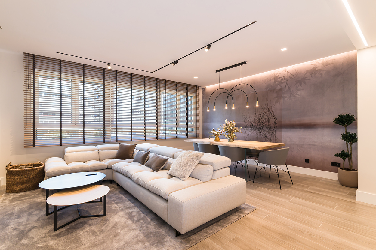 La combinación de colores, generan un espacio elegante, moderno y sofisticado, siendo el núcleo principal de la vivienda.