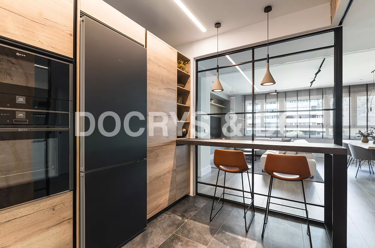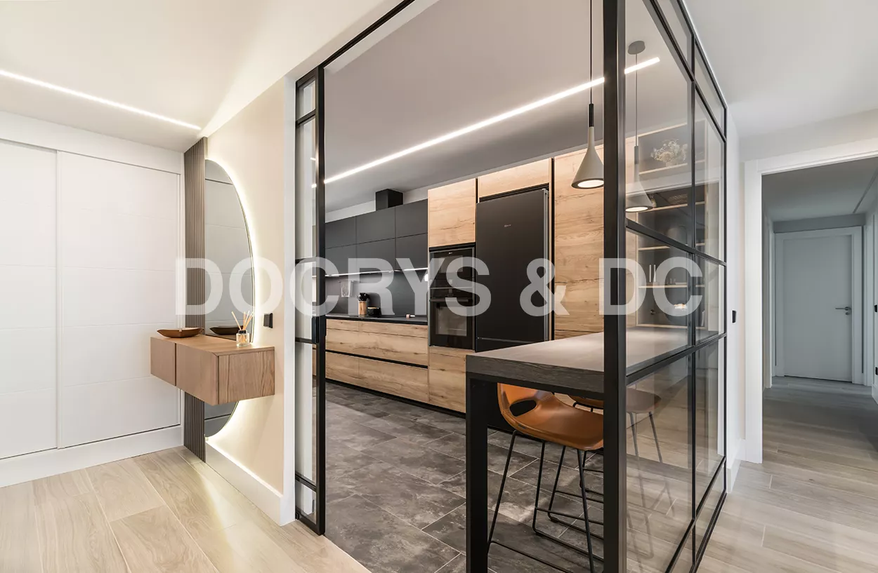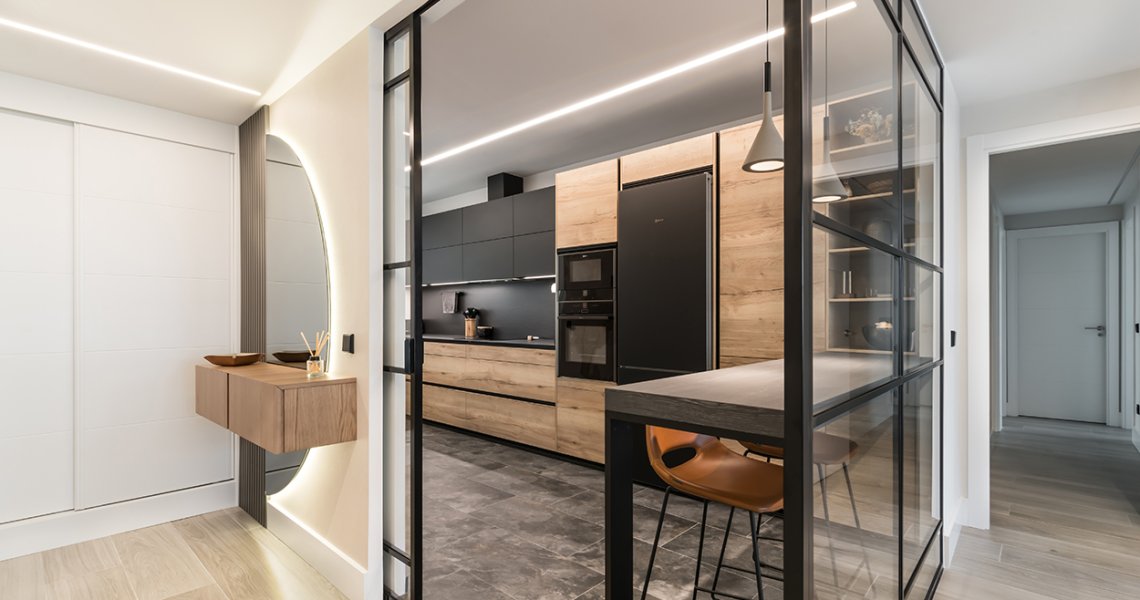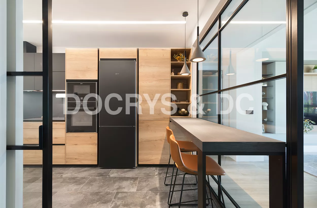 Esta cocina se ubica en una estancia de 13 m2 y es semiabierta al salón, creando un espacio de diseño, amplio, luminoso y funcional.