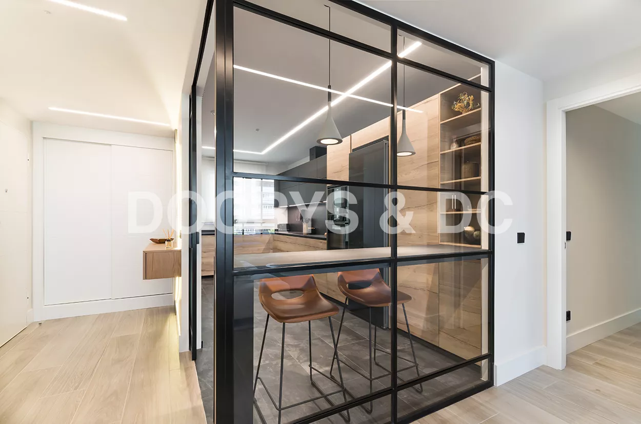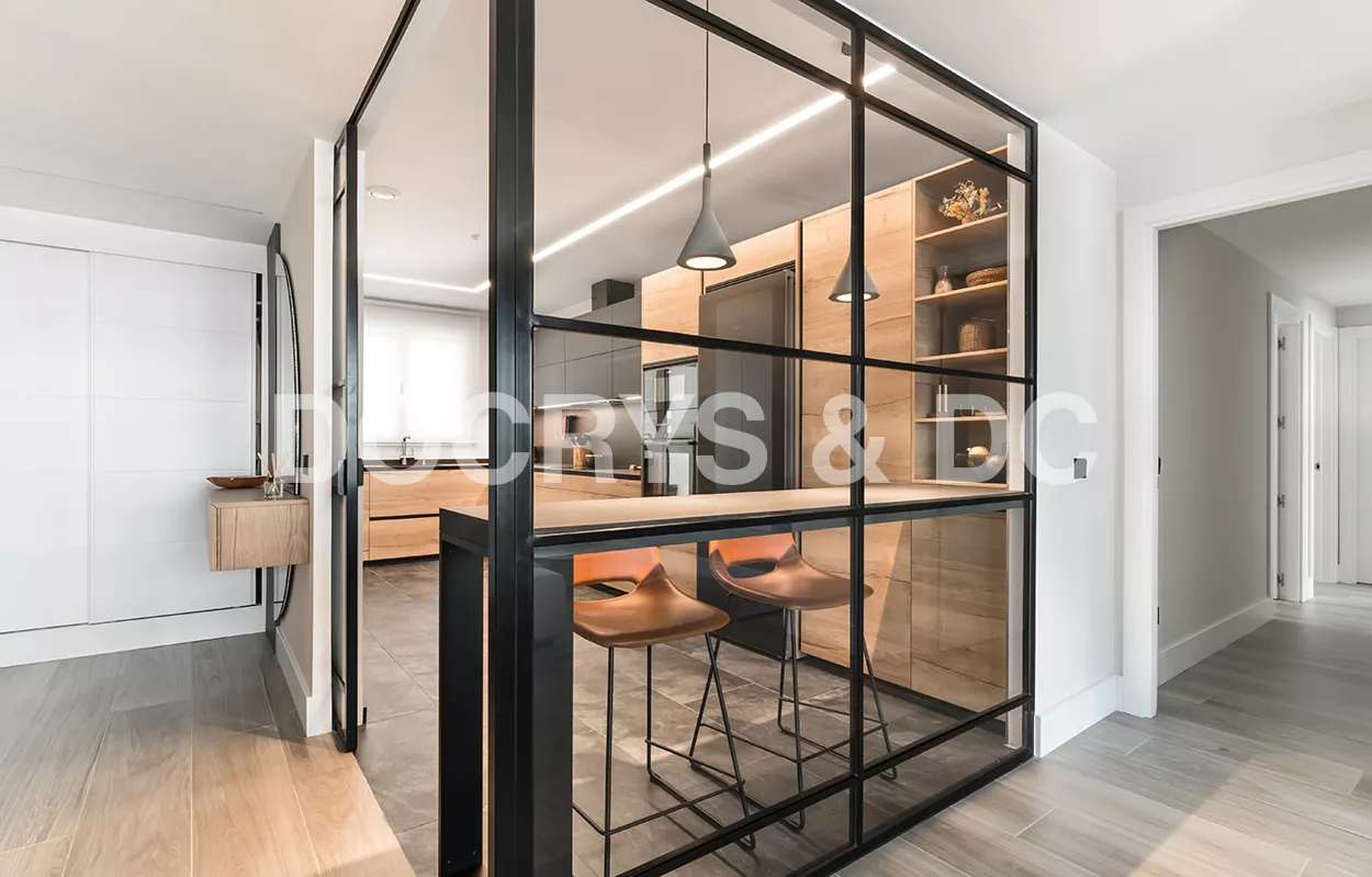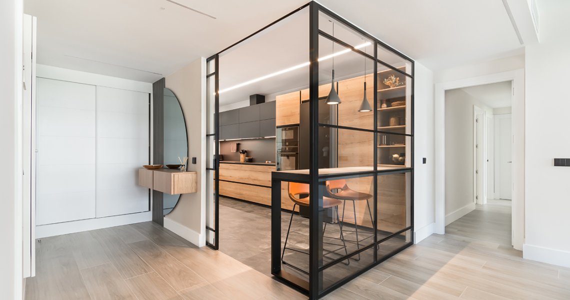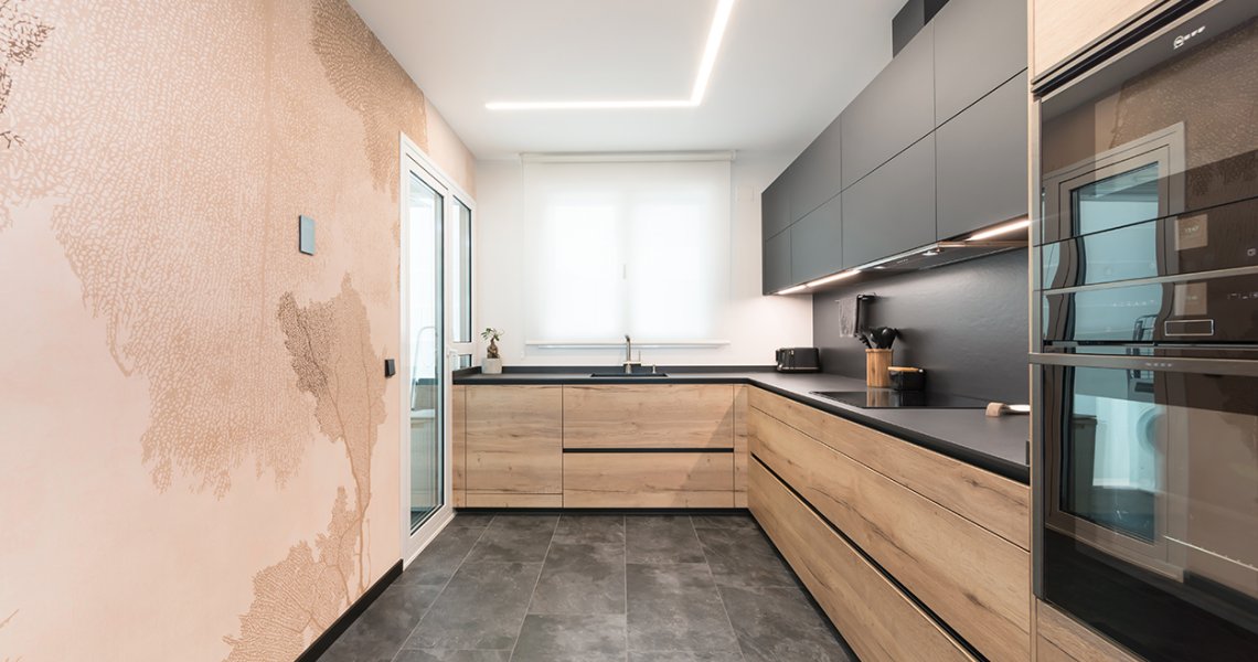 Esta cocina se ubica en una estancia de 13 m2 y es semiabierta al salón, creando un espacio de diseño, amplio, luminoso y funcional.