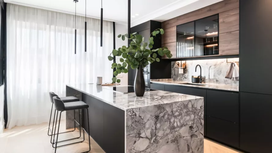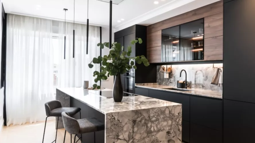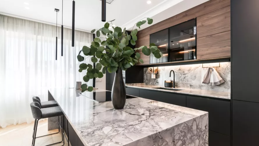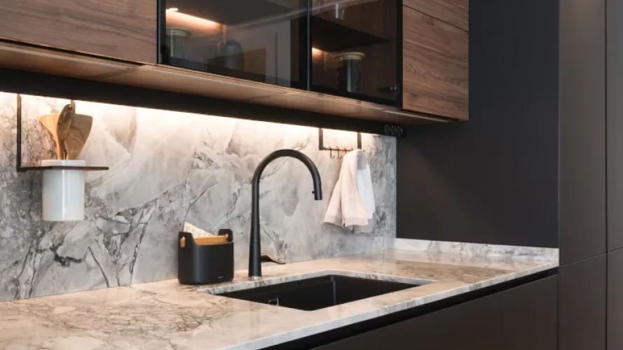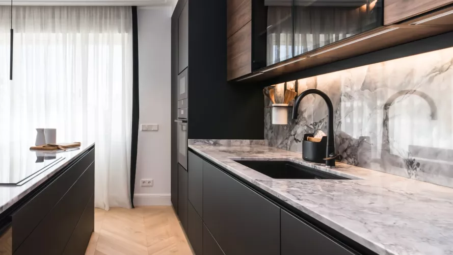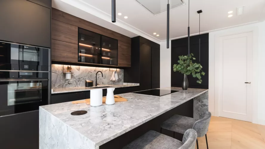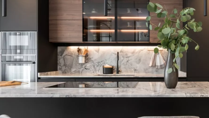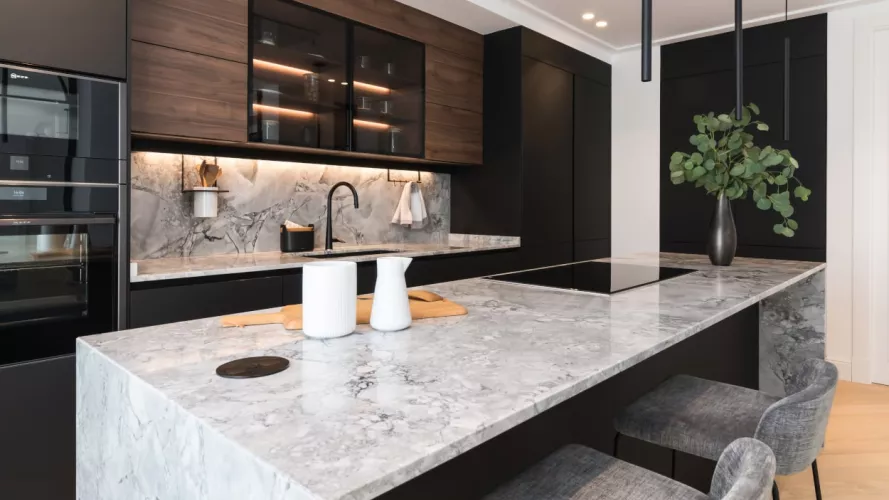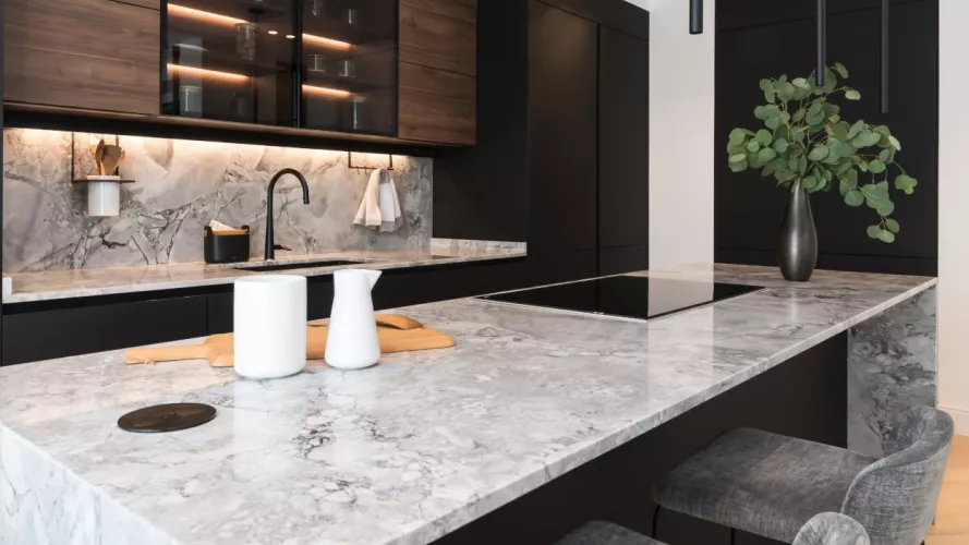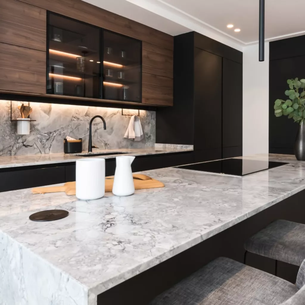 Encimera de Naturamia en color Portobello con acabado pulido.