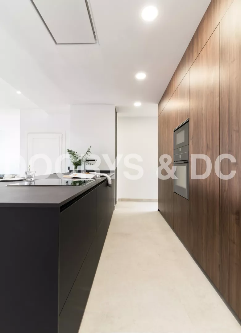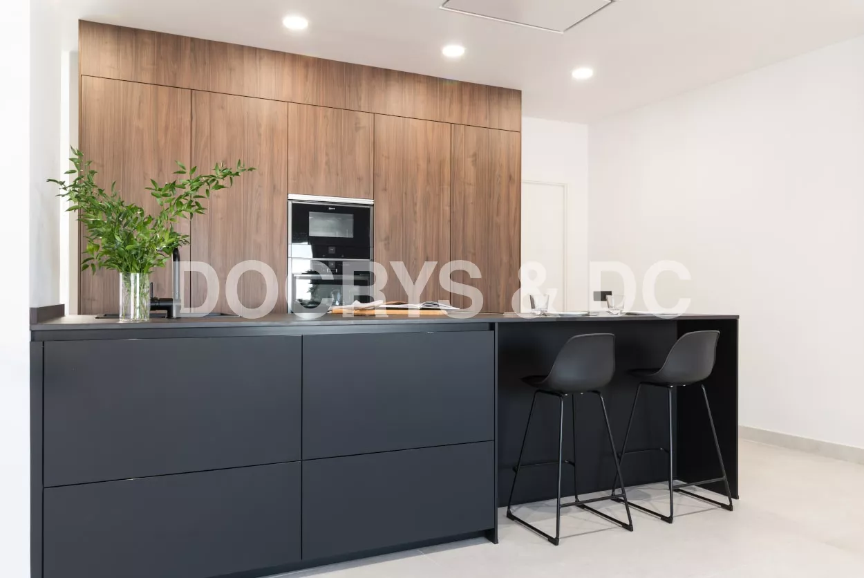 La combinación de negro y nogal, aportan al espacio elegancia y diseño.