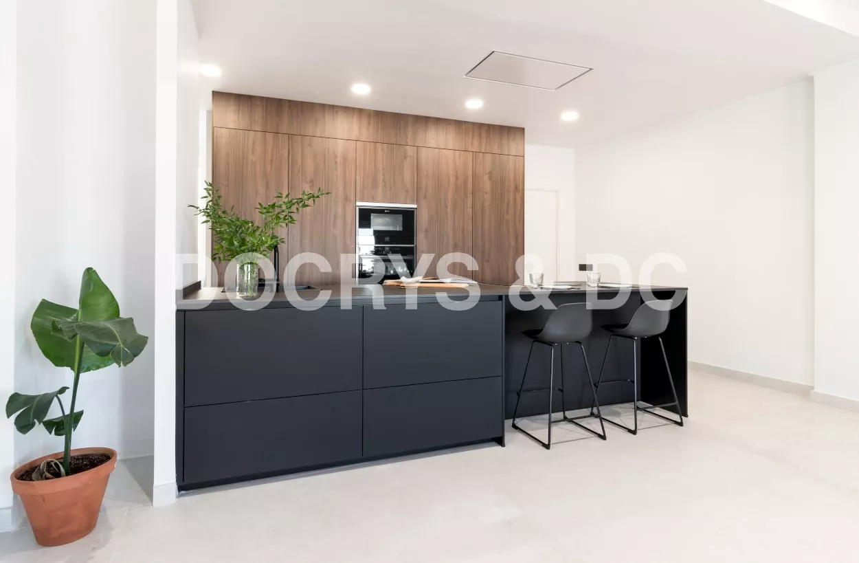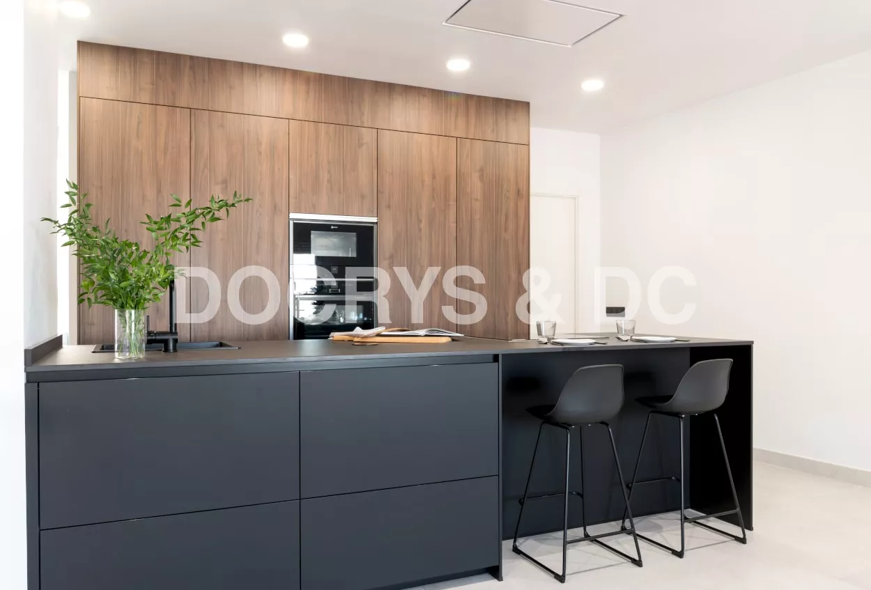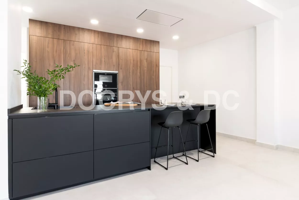 Esta cocina se ubica en una estancia de 10 m2 y está abierta al salón y comedor, convirtiéndose en el núcleo principal del espacio, un espacio perfecto para compartir y disfrutar.