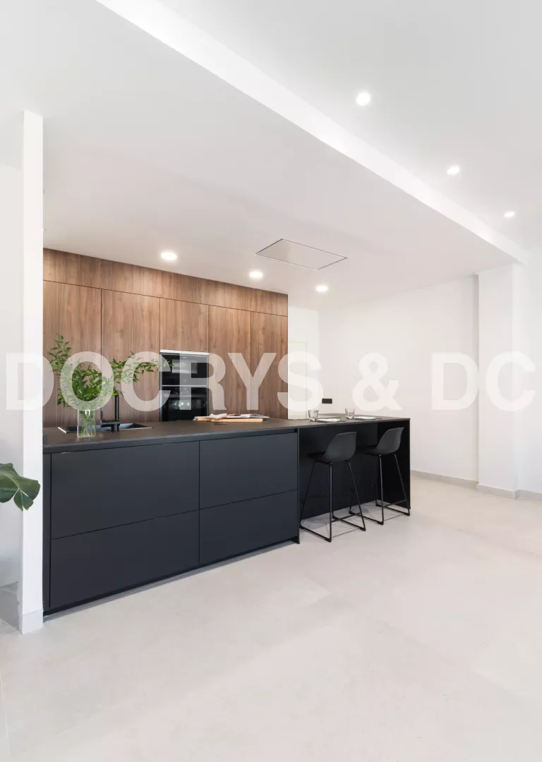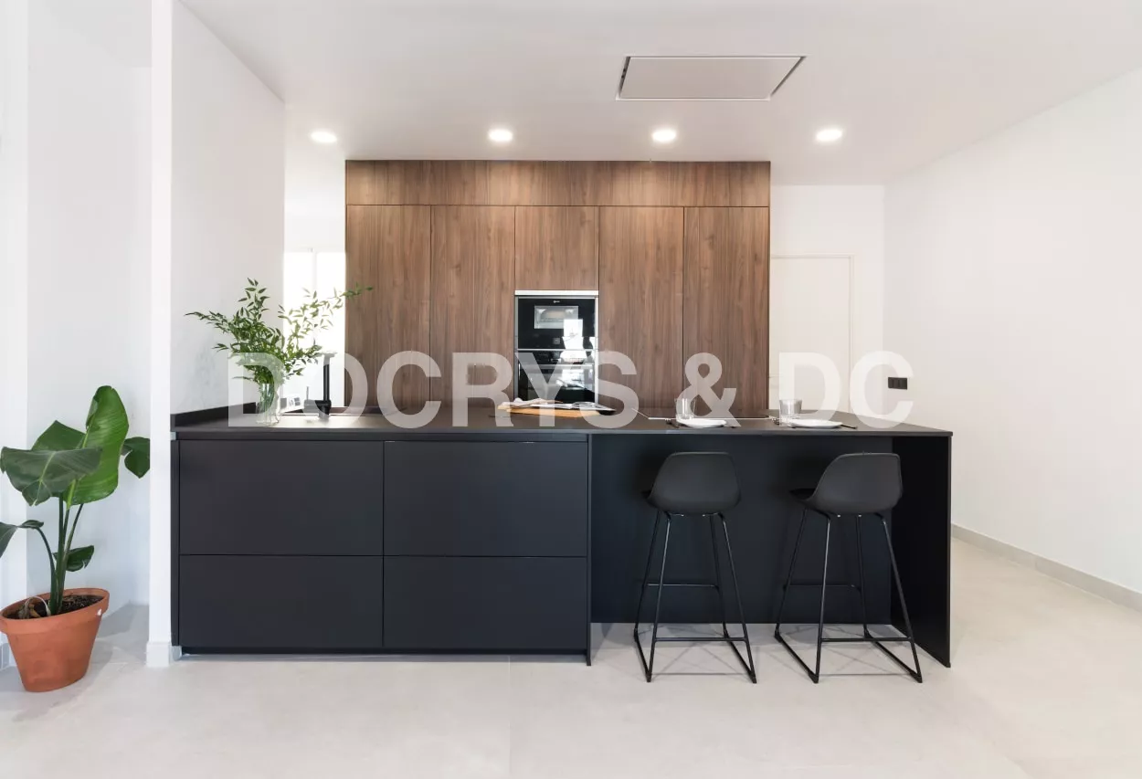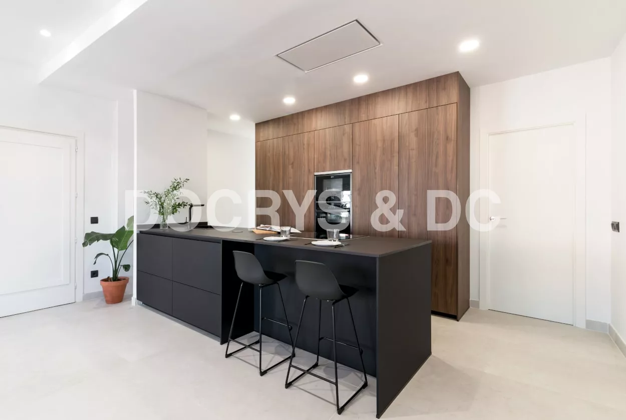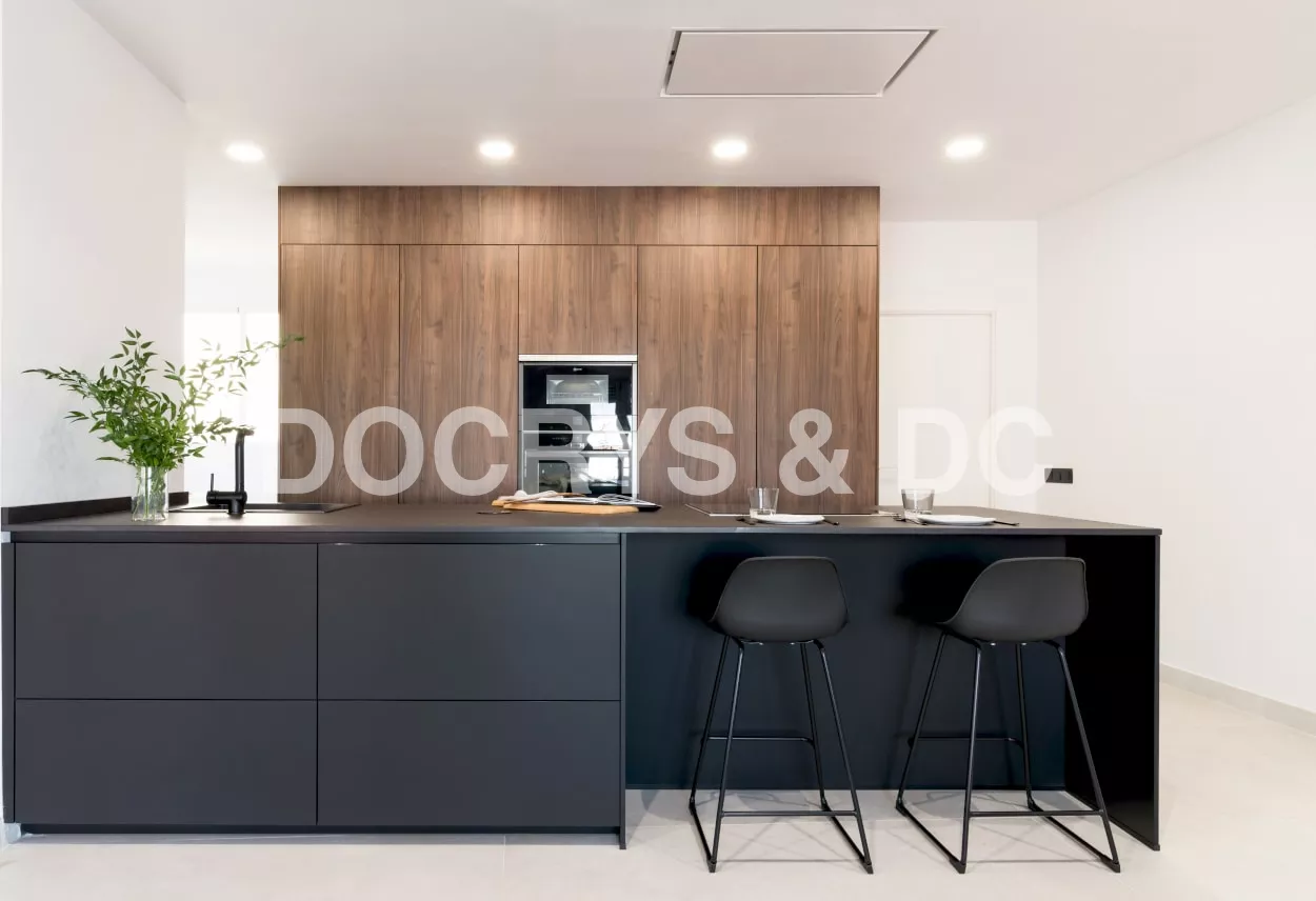Esta cocina se ubica en una estancia de 10 m2 y está abierta al salón y comedor, convirtiéndose en el núcleo principal del espacio, un espacio perfecto para compartir y disfrutar.