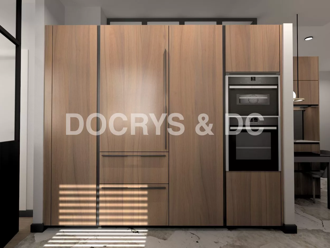 Cocina Santos en paralelo en color Nogal tierra con encimera de Dekton, color Khalo, acabado mate.