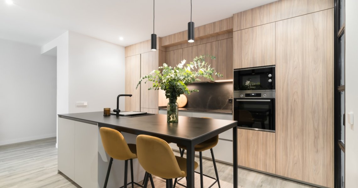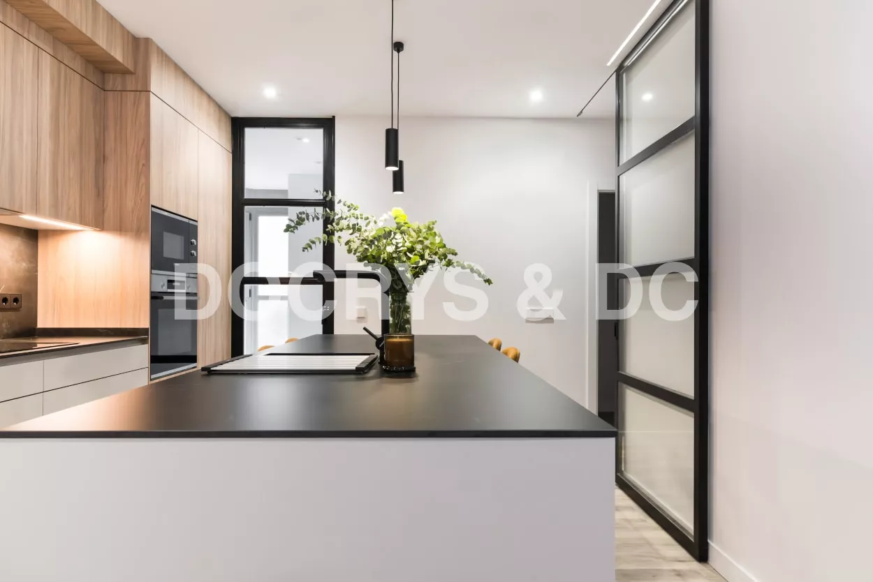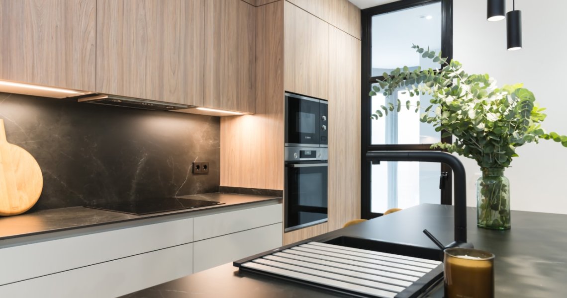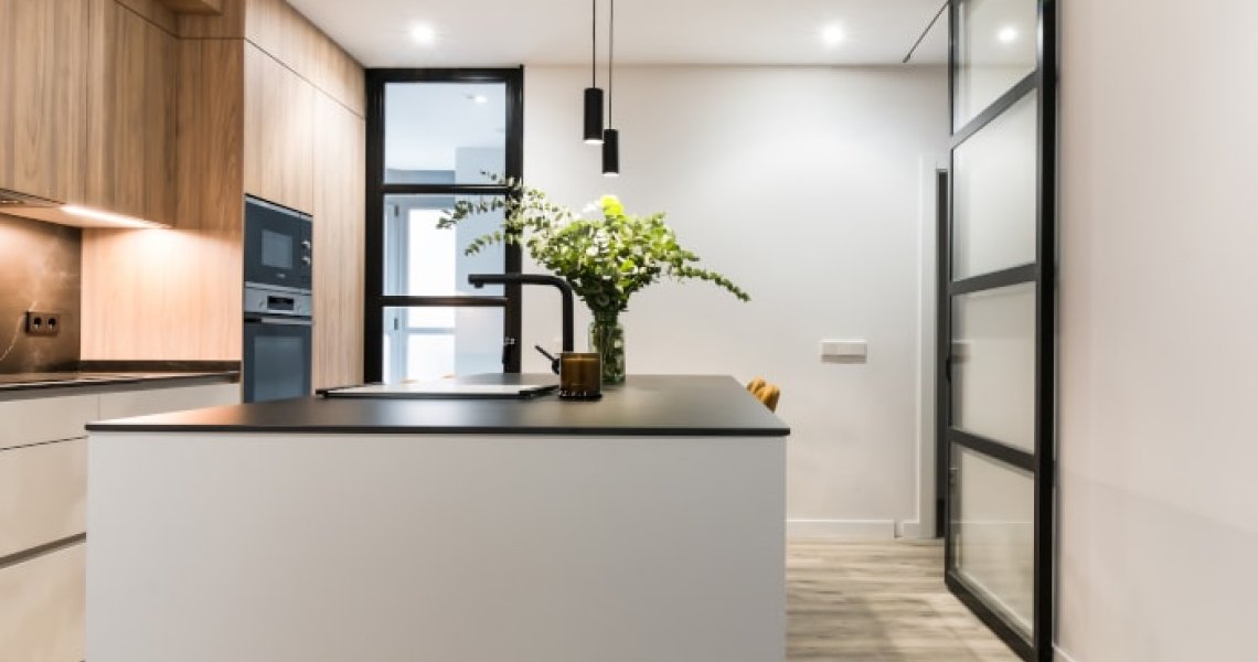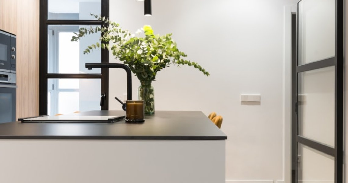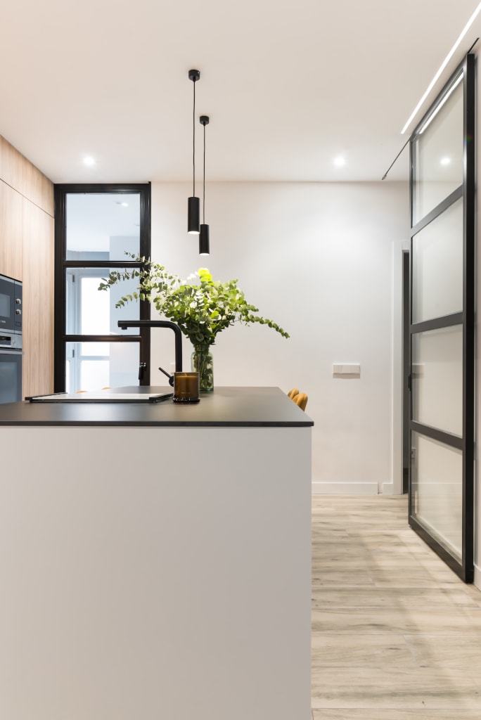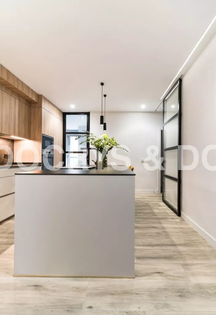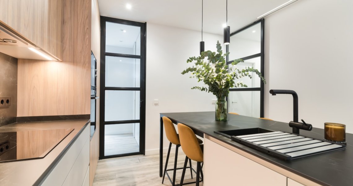 La combinación del color de los muebles y la encimera, generan un espacio elegante, moderno y de diseño, siendo el núcleo principal de la vivienda.