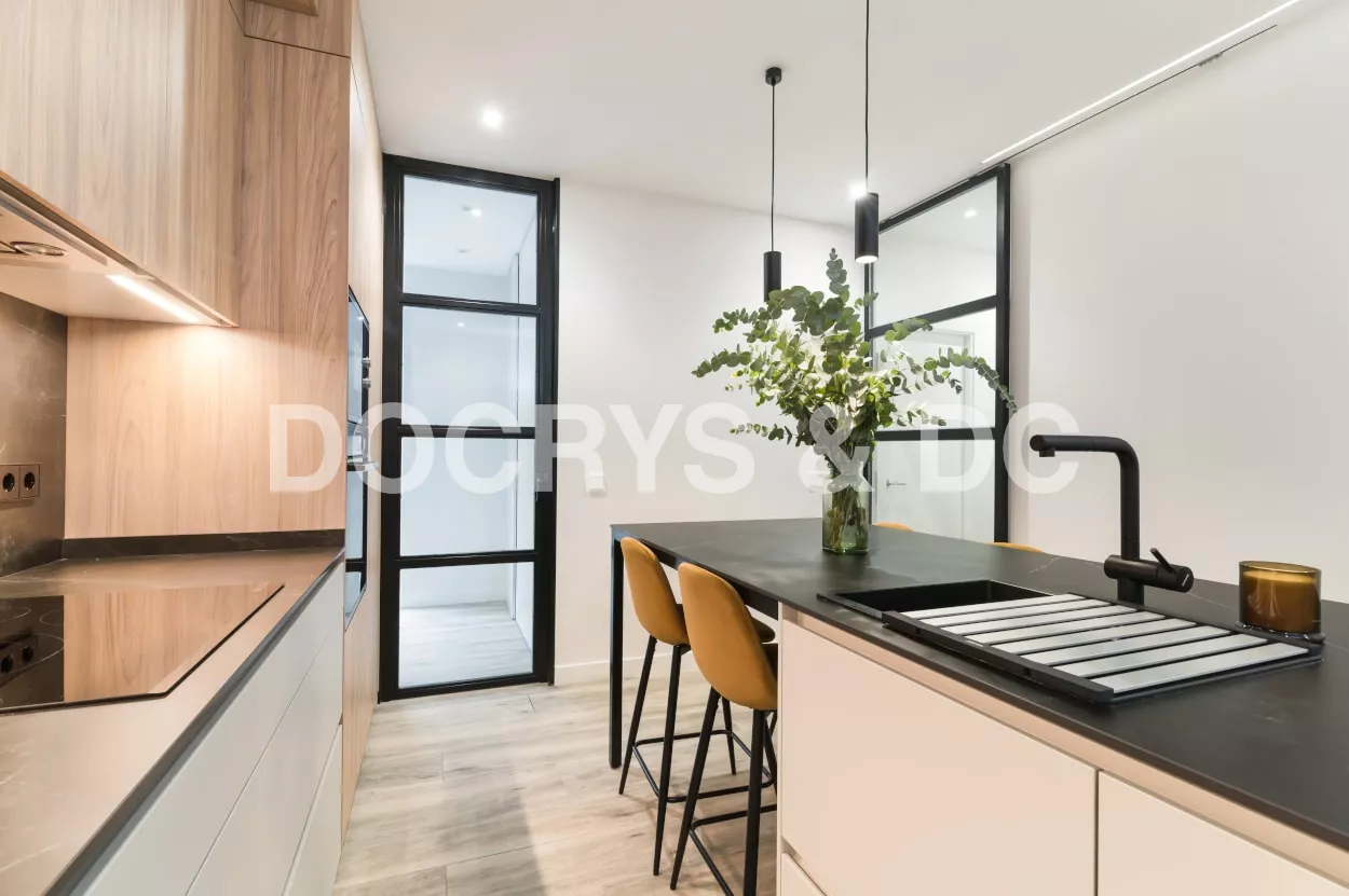 Esta cocina se ubica en una estancia de 14.5 m2 y está abierta al salón, creando un espacio amplio, luminoso y totalmente integrado.
