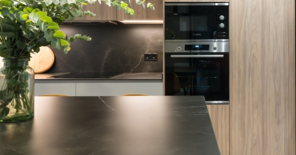 Encimera de Inalco en color storm negro , con acabado natural.