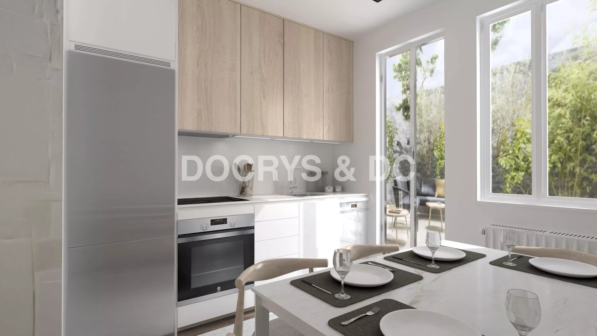 Esta cocina moderna está abierta al salón, creando una sensación visual de amplitud.
