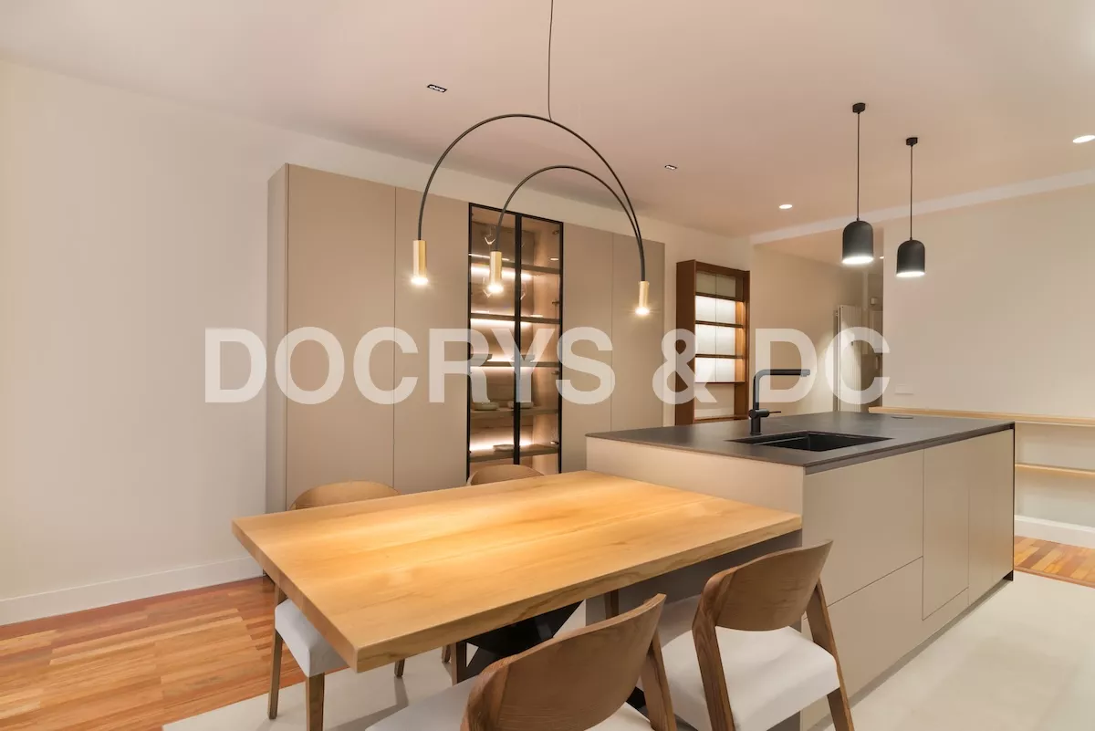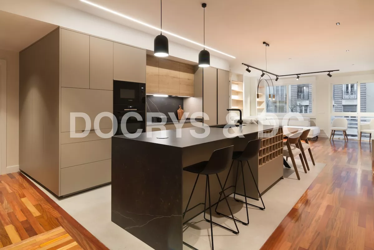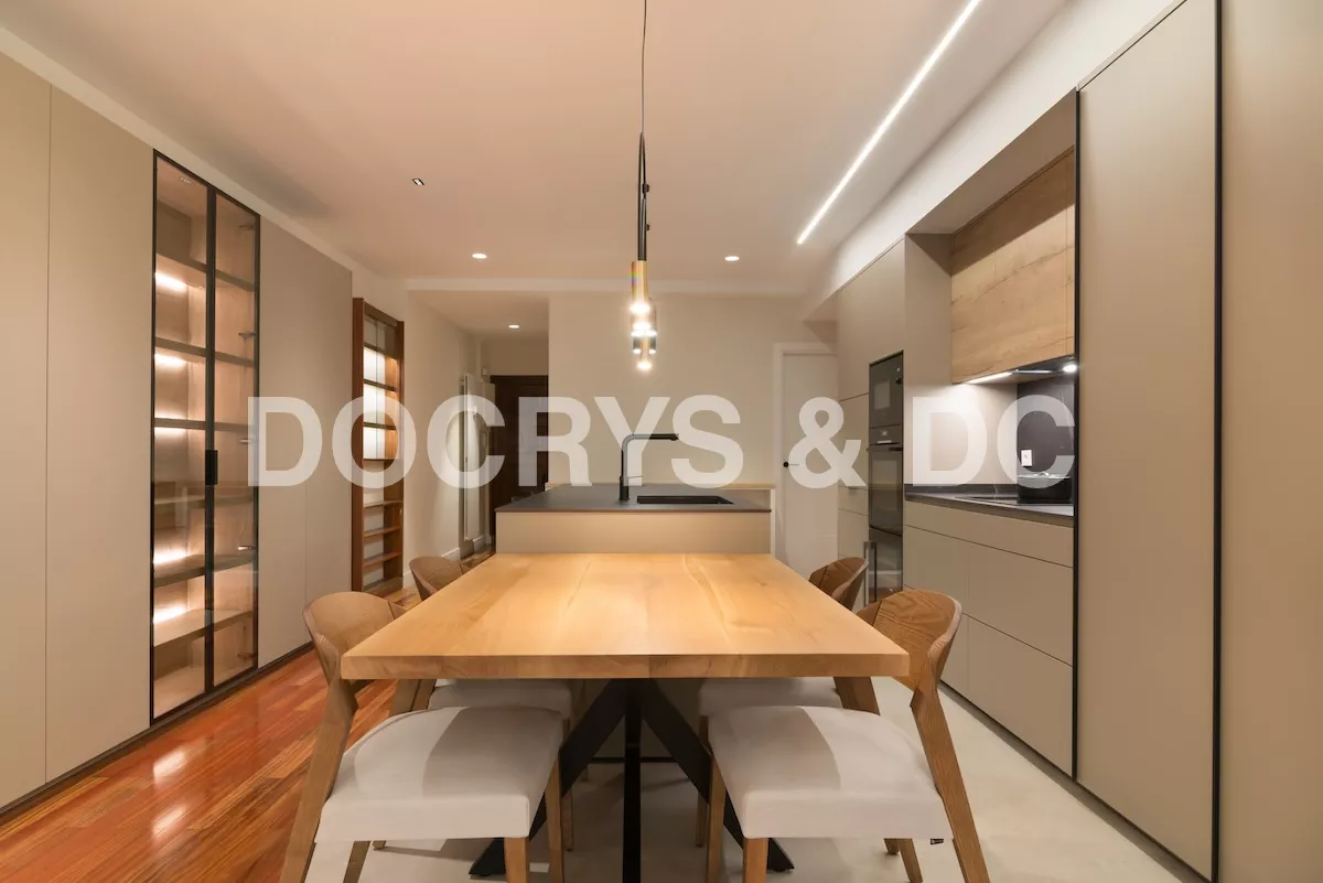 Los electrodomésticos son integrados, de esta manera los muebles mantienen la misma línea elegante ya que al ser un espacio abierto al salón, se busca que sea lo más discreto posible para no desentonar.
