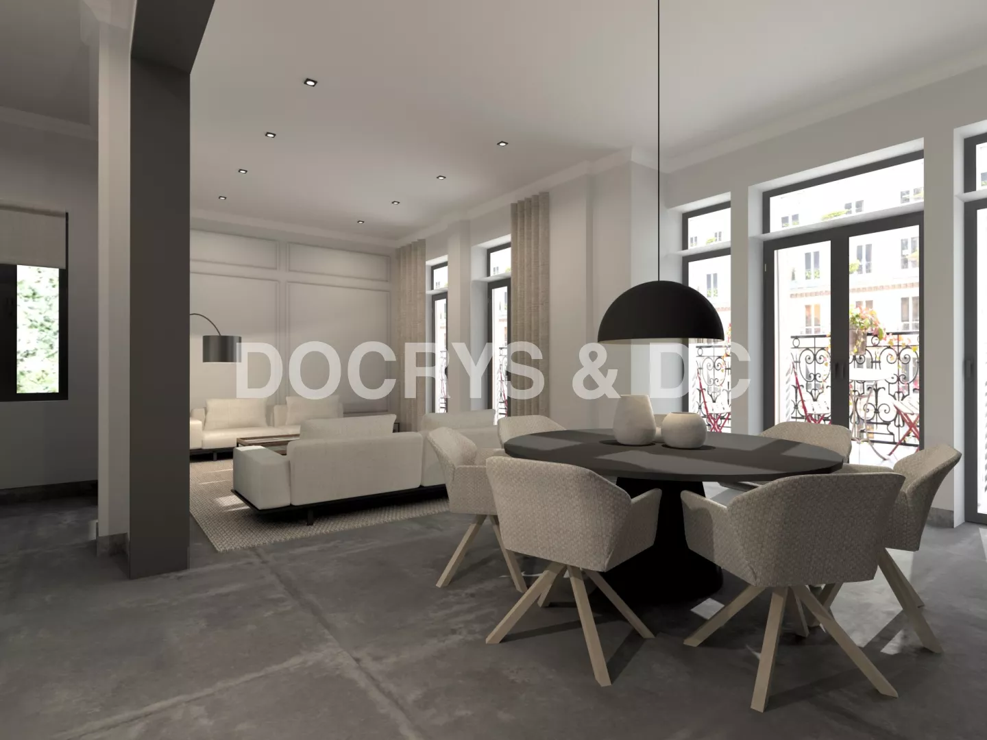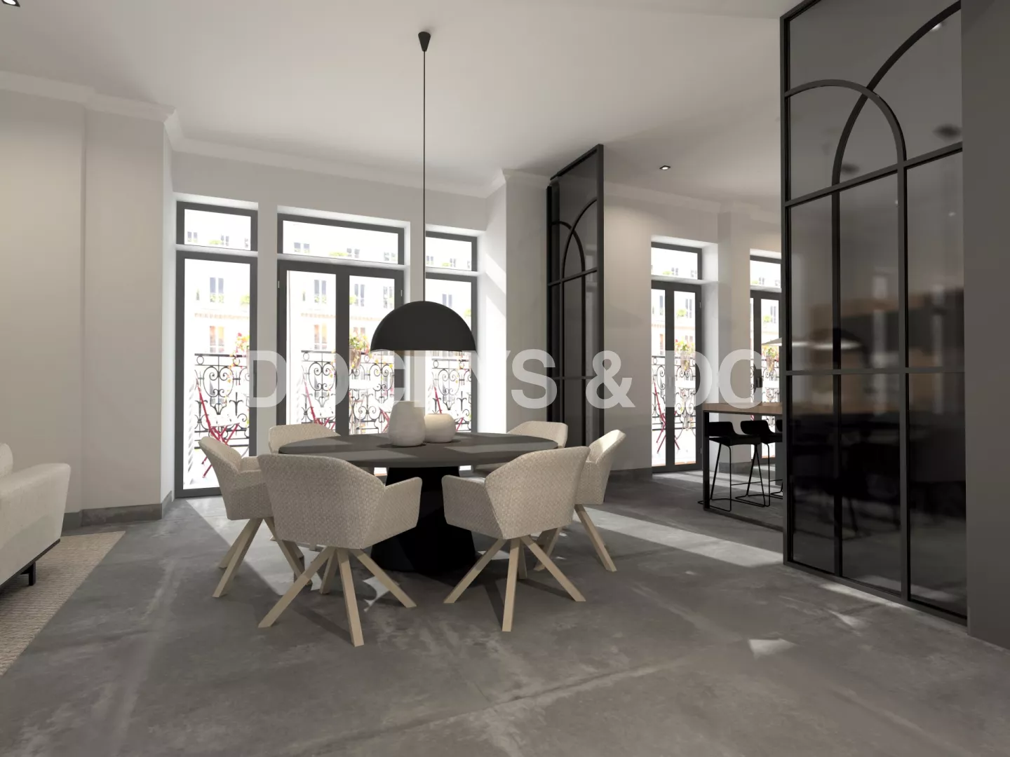 El salón cuenta con una zona de comedor con una mesa redonda de Andreu World y sillas de la misma marca.
