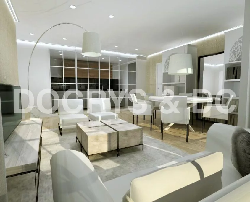 La notable luminosidad que se deriva tanto del exterior como del interior incide de forma directa en la estancia procurando una mayor sensación de amplitud visual. El mobiliario sobrio y contemporáneo se adapta con naturalidad a la arquitectura de la estancia a la vez que crea un agradable y sofisticado ambiente.