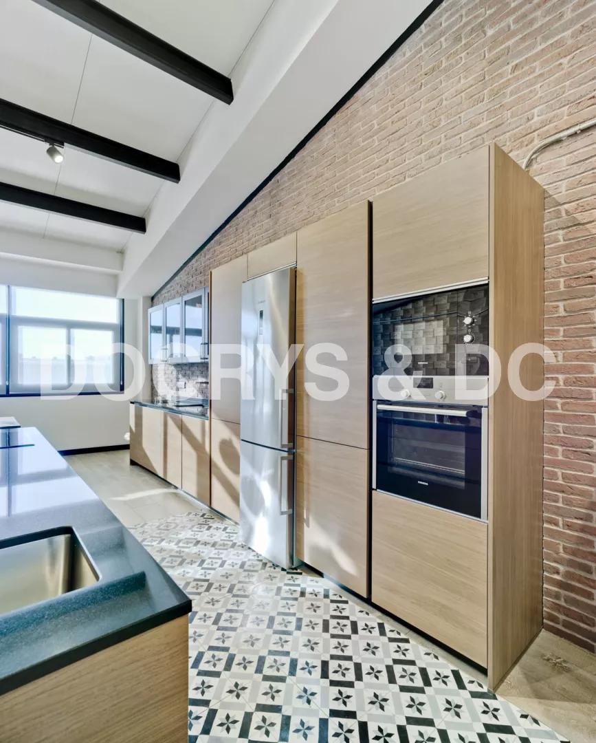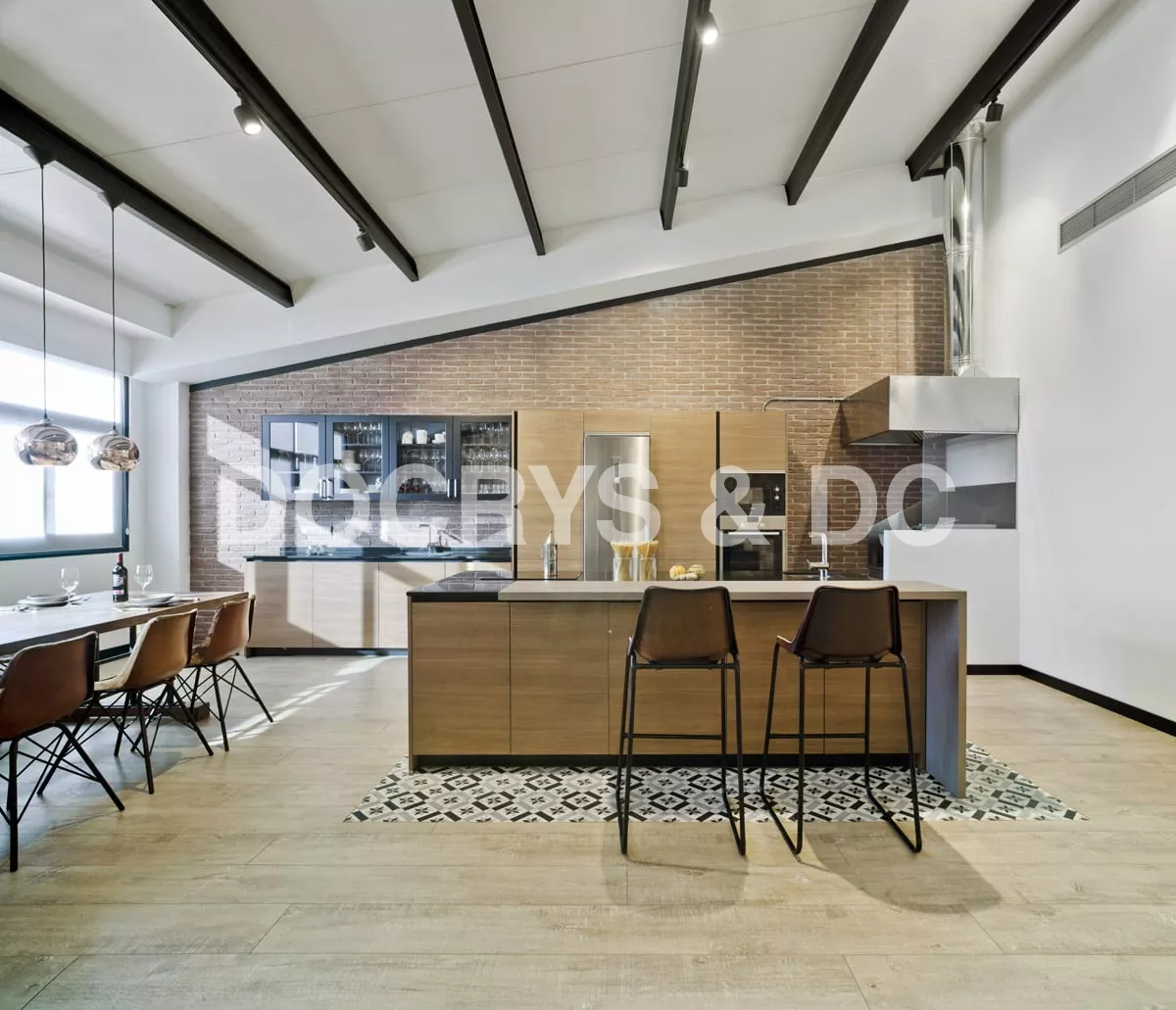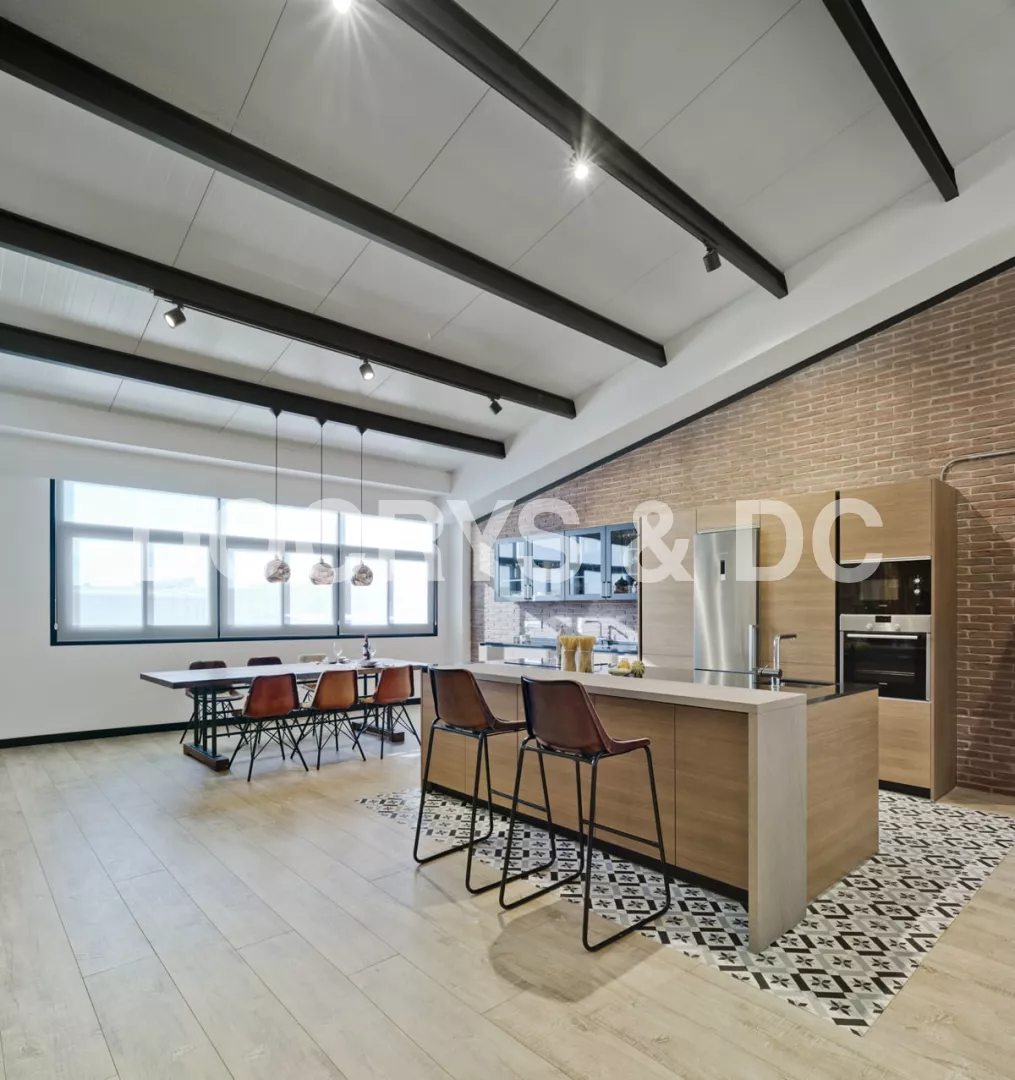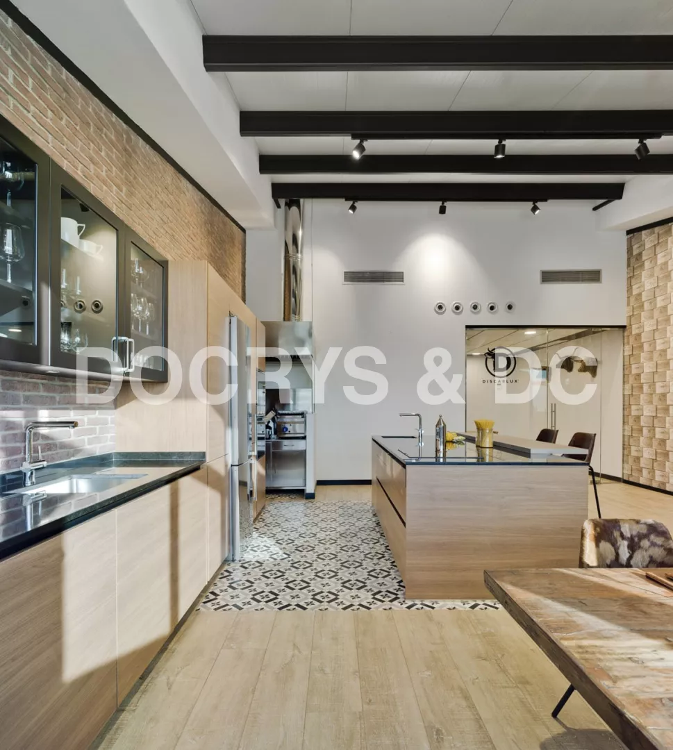Amplia cocina configurada a modo de showcooking que cuenta con una gran isla central donde se dispone de una zona de aguas, zona de trabajo y de cocción, además de una barra perfecta para ofrecer un gran servicio a varios comensales.
