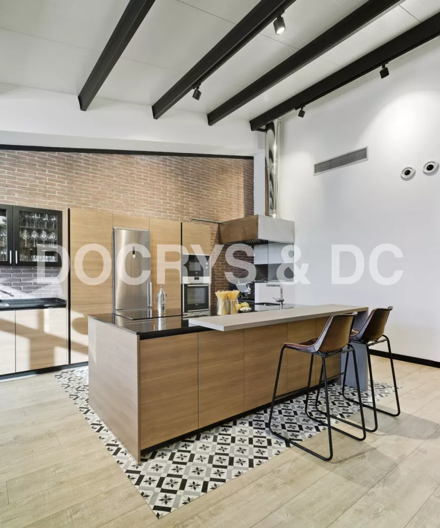 Pero si por algo destaca, es por su original suelo hidráulico que actúa como área para delimitar la zona de trabajo a la vez que aporta la nota más rústica en el conjunto.