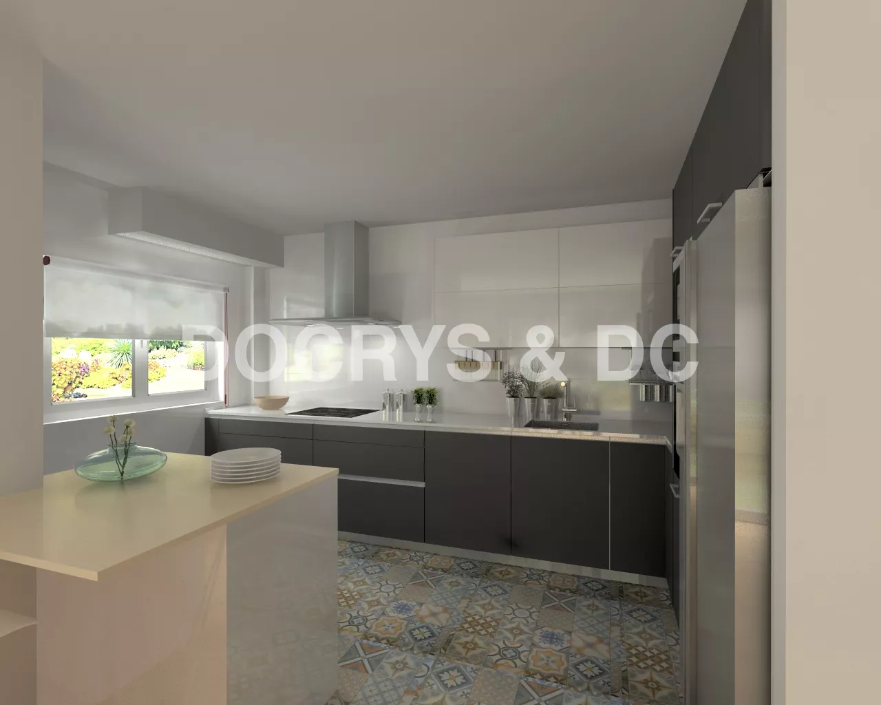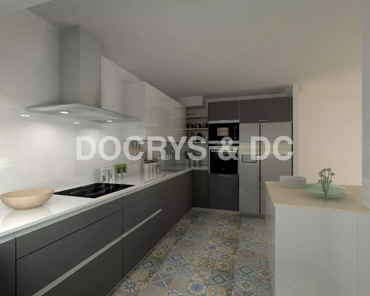 Madrid | Cocina Santos | Modelo Line E Gris y Line L Blanco | Encimera Silestone Blanco