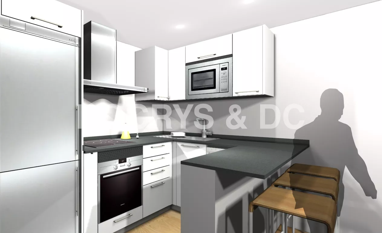 A pesar de sus reducidas dimensiones, el diseño de esta cocina responde a todas las necesidades de trabajo y almacenamiento.