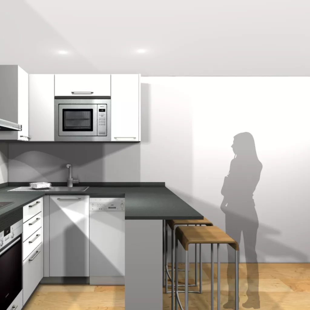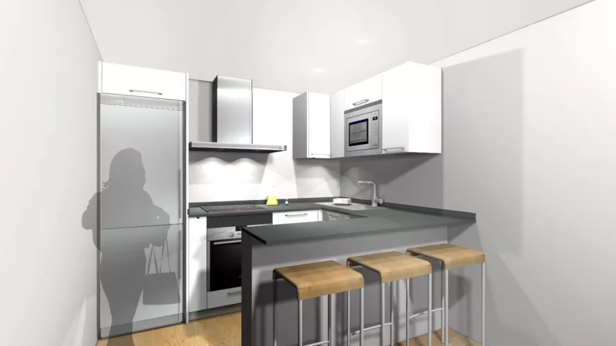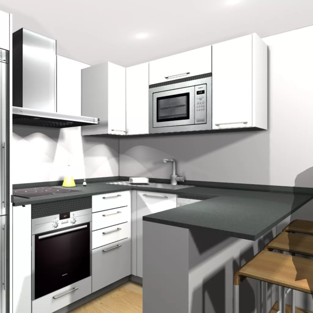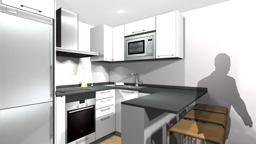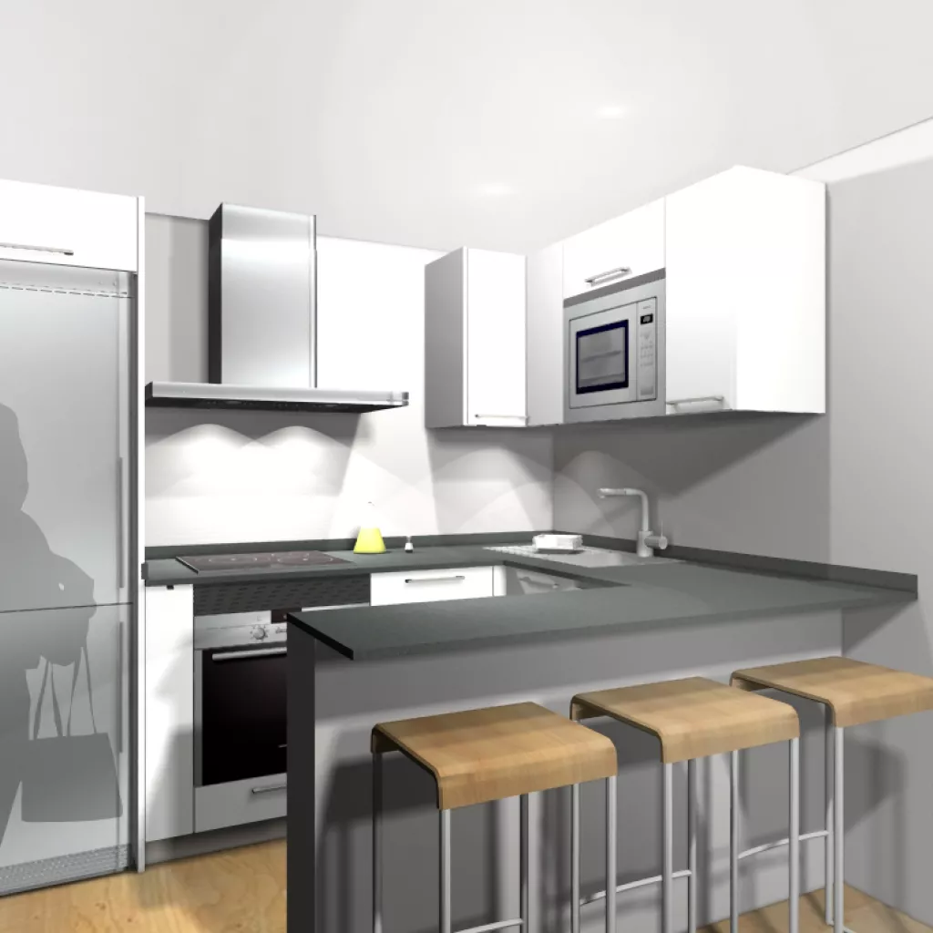 Por último, terminamos con una barra, perfecta para comidas rápidas o como zona de trabajo.