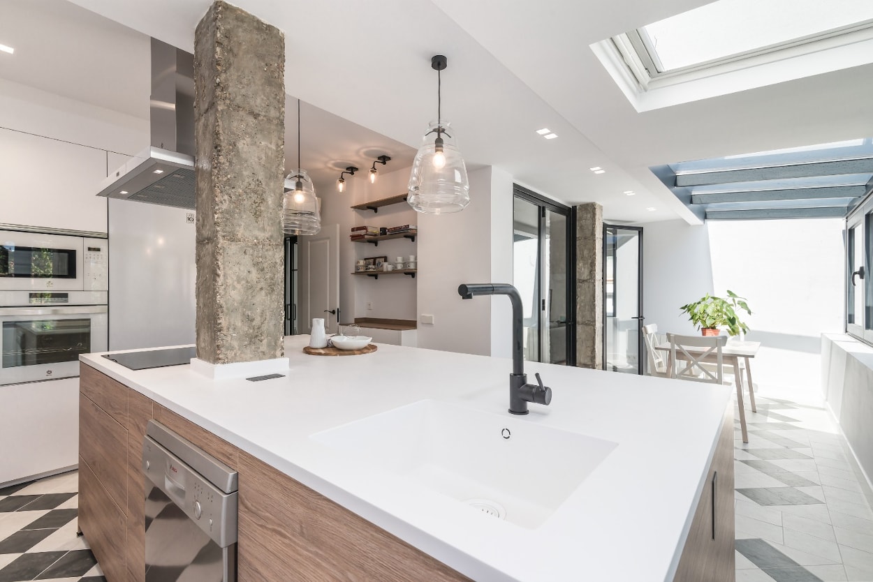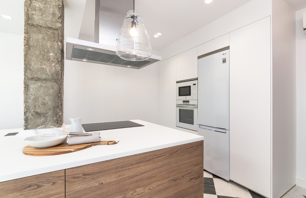 Proyecto antes y después Cocina Santos blanca y madera con isla
