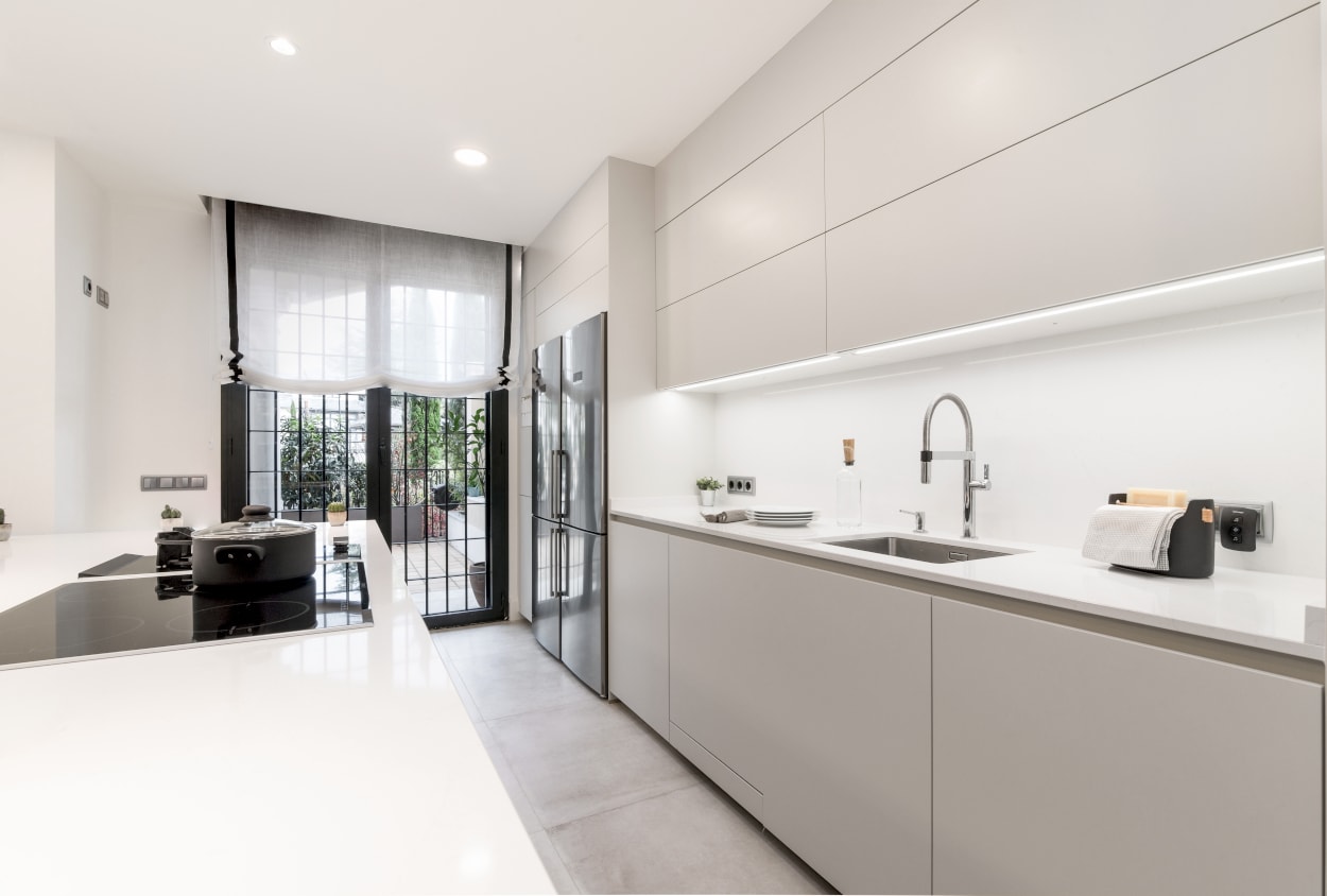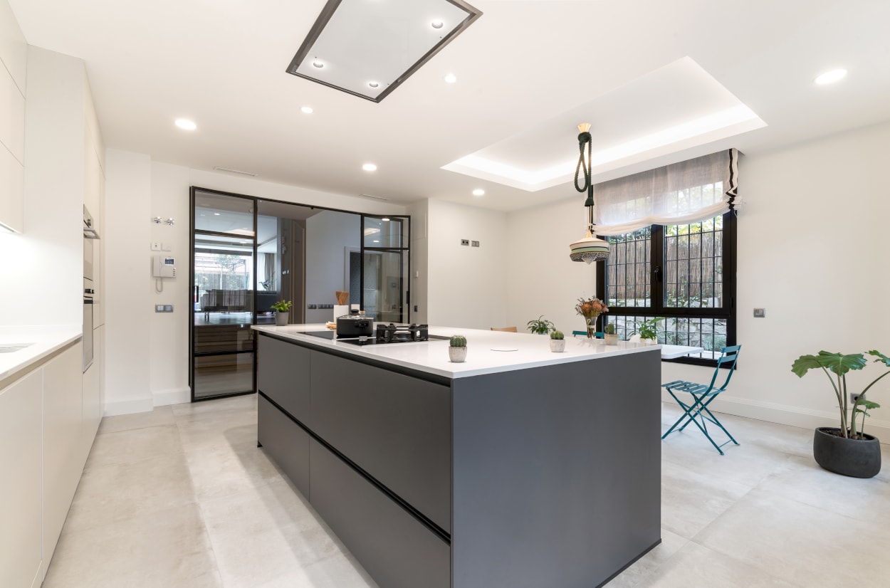 Proyecto antes y después Cocina Santos con Isla en Blanco y Gris Antracita