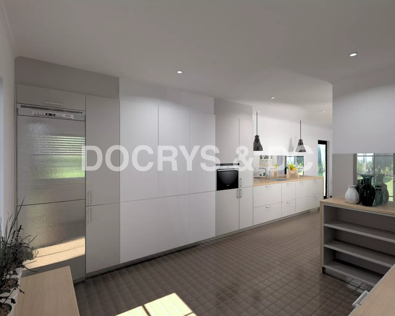 Proyecto de Cocinas Santos en Aravaca con Encimera Haya Natural y Modelo Seda Laminado Gris Arena