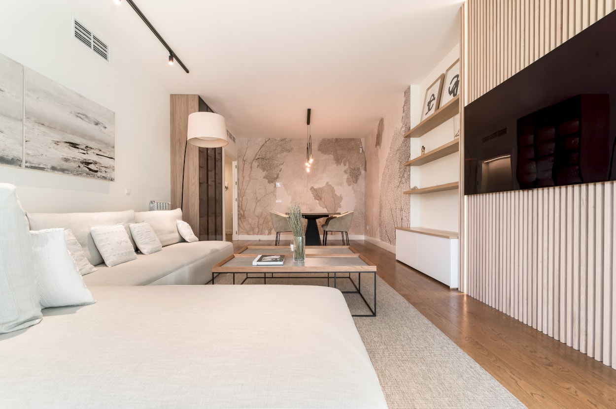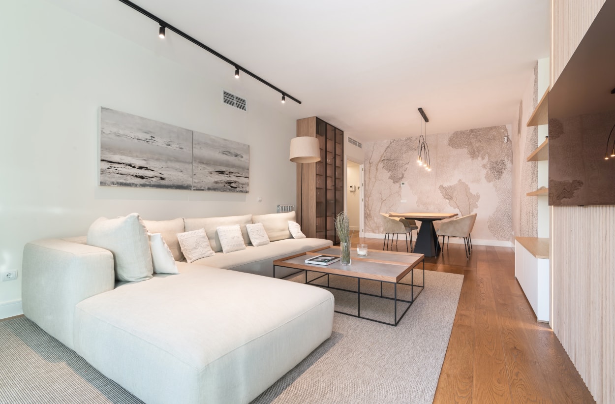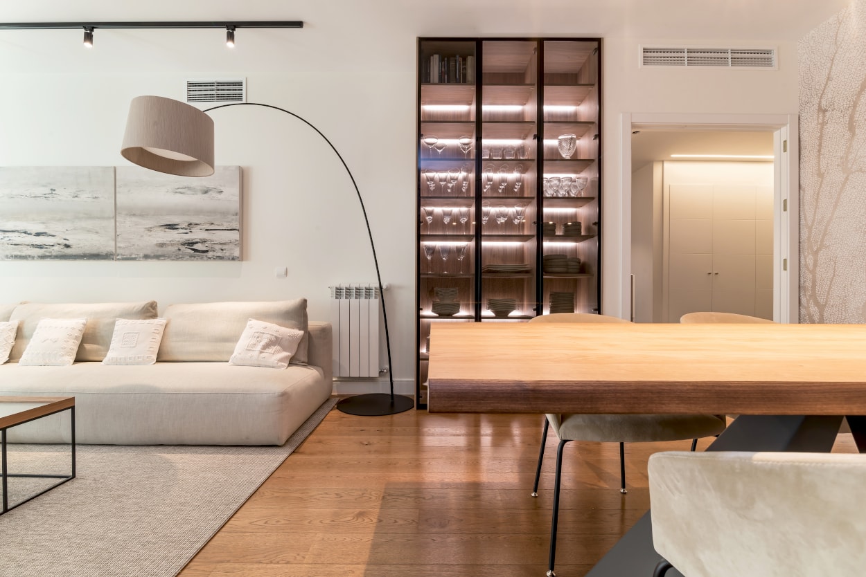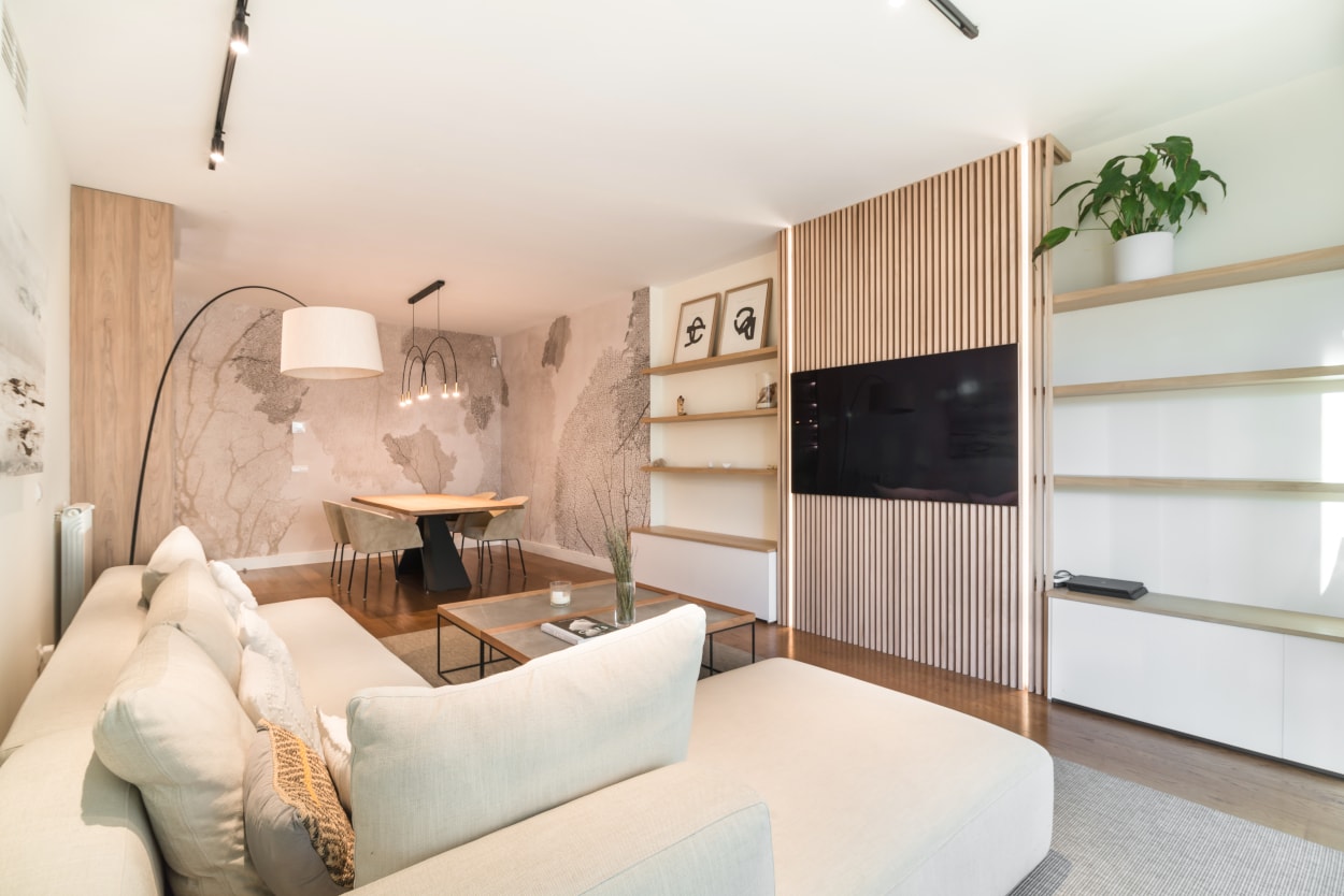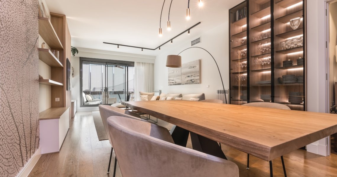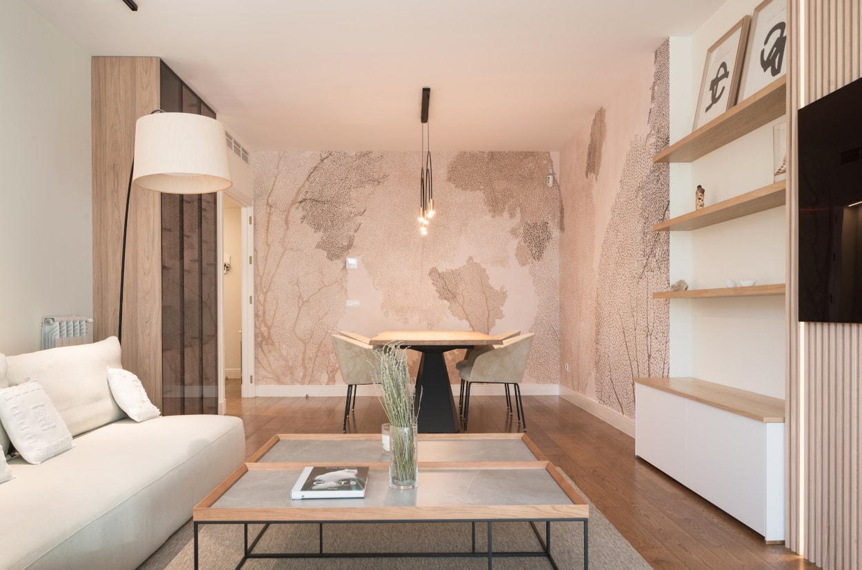 En este proyecto de decoración de salón y comedor intentamos plasmar el estilo y personalidad de nuestros clientes en un piso bajo en una de las zonas más exclusivas de Madrid.