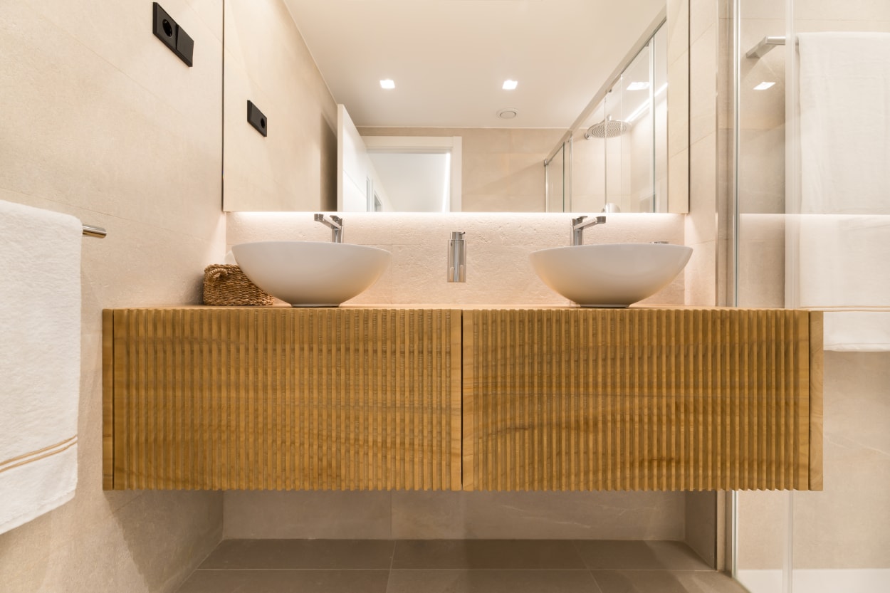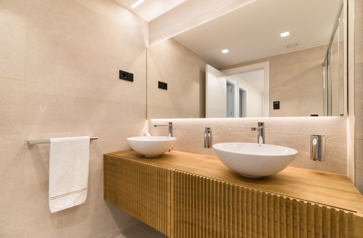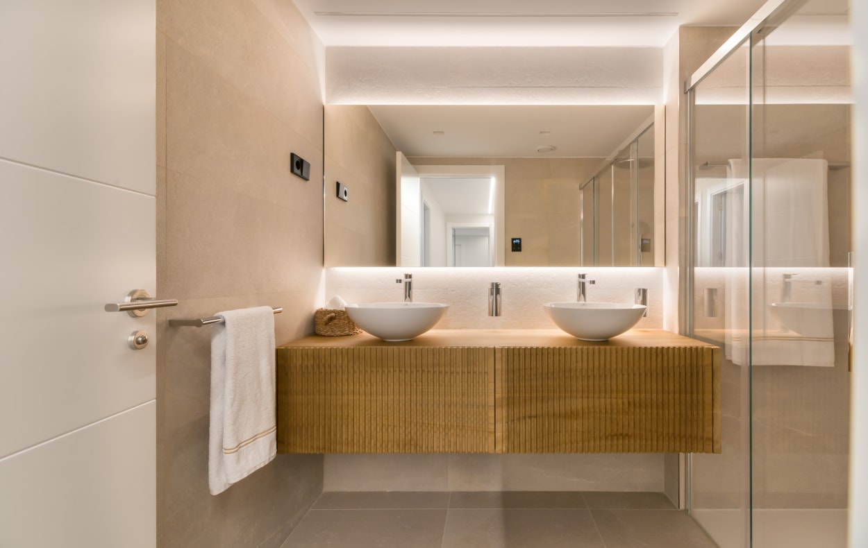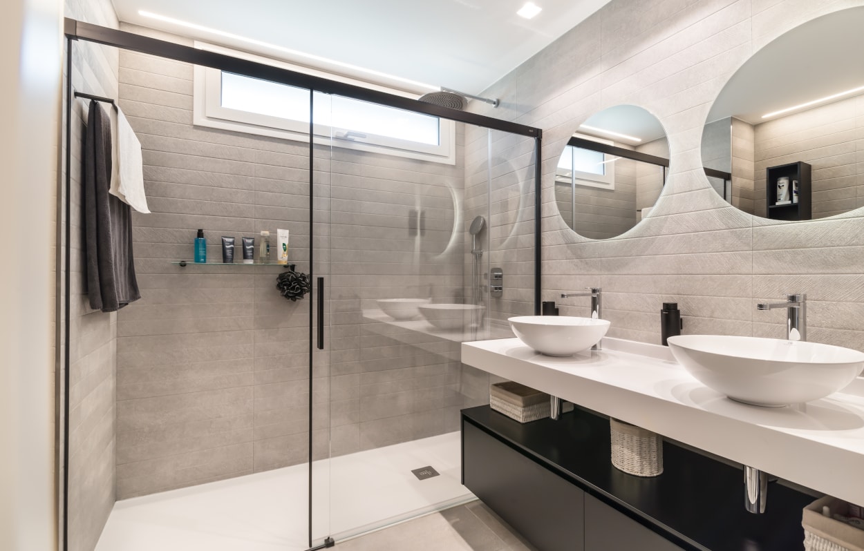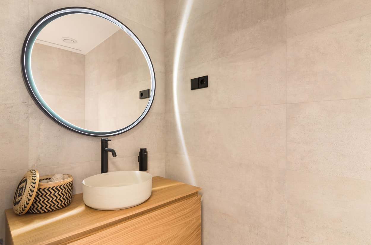 El diseño de los tres baños de la casa, siguen un mismo hilo, sencillez, diseño y comodidad, cada uno con un estilo diferente pero con el mismo carácter y personalidad.