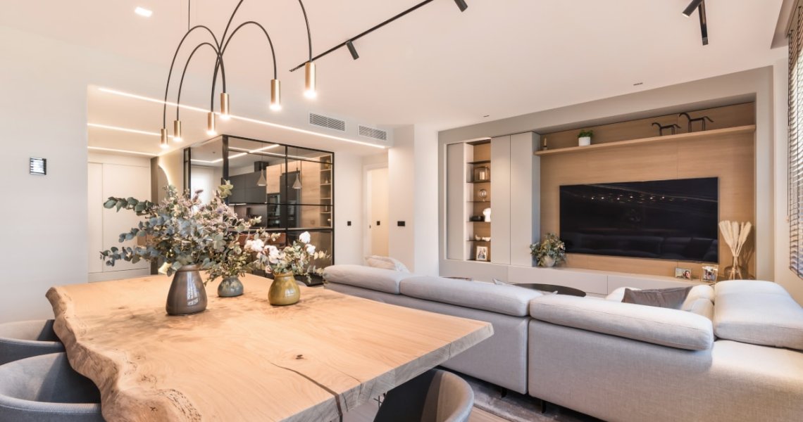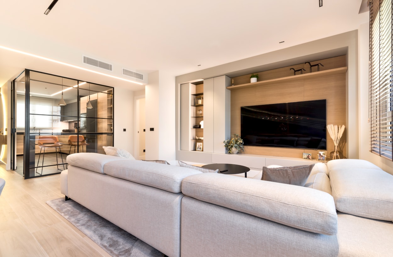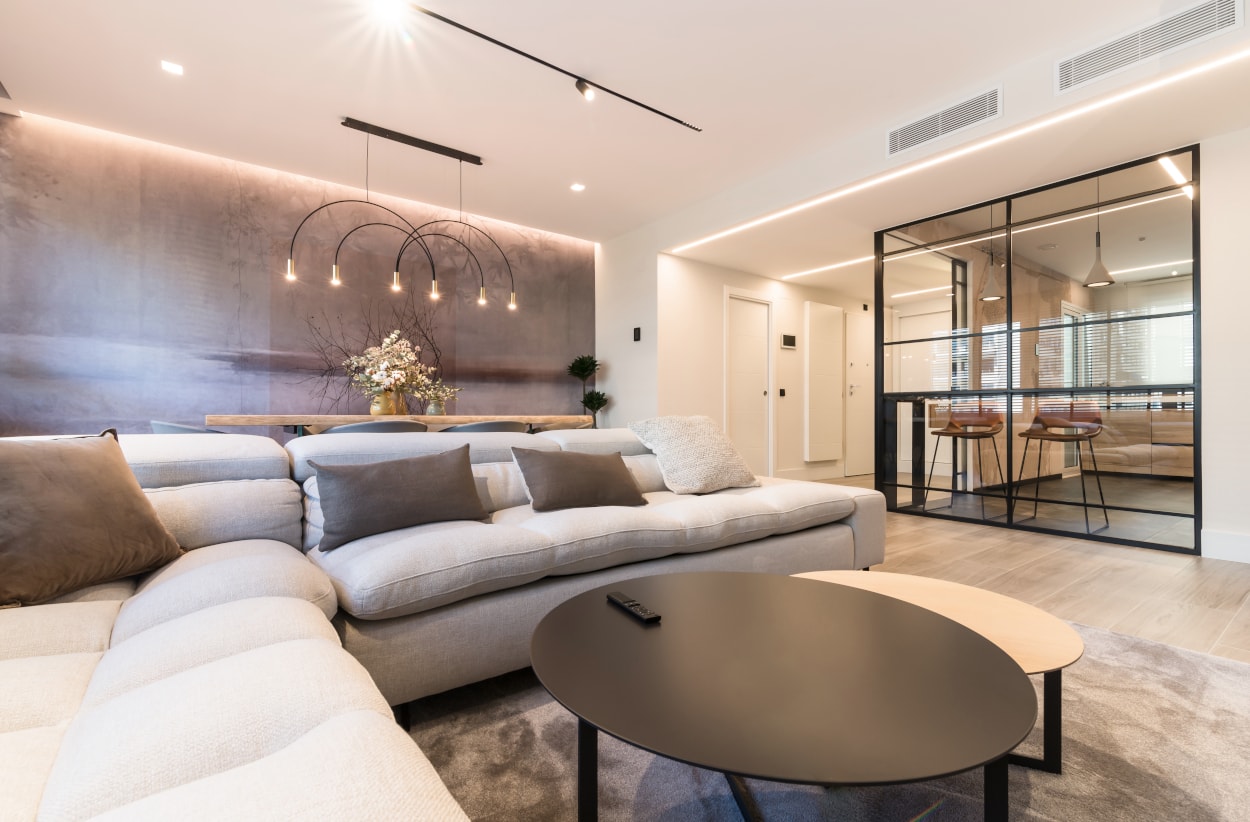 En esta vivienda, proyectamos un estilo moderno, funcional y que el hilo principal del proyecto fuera la iluminación.