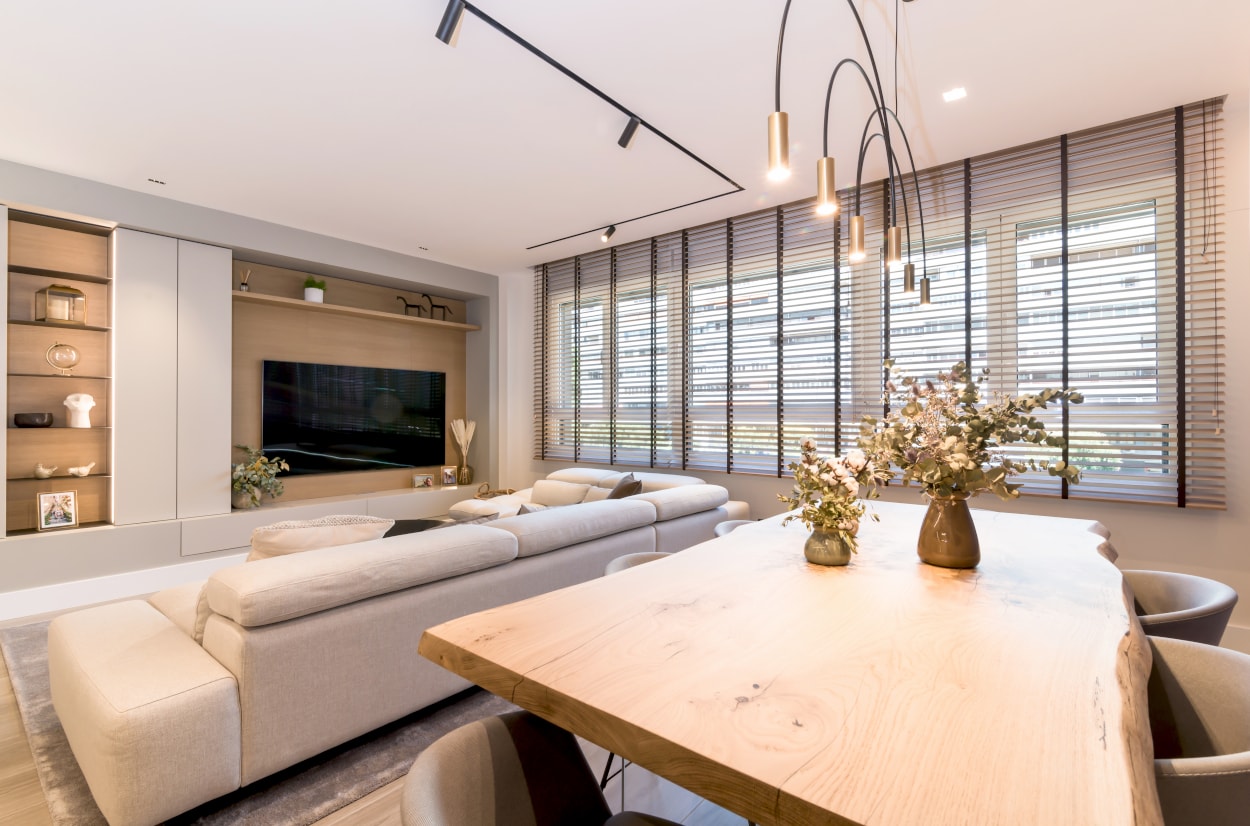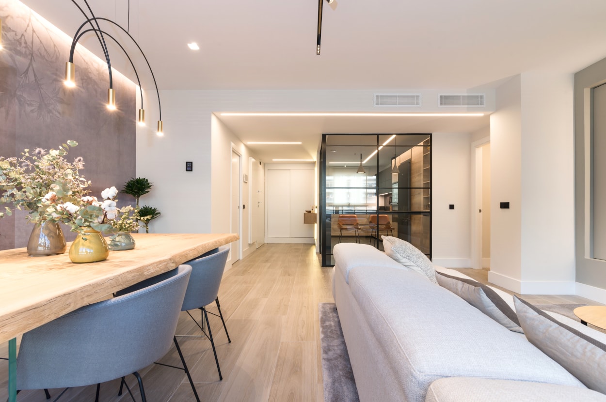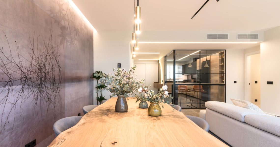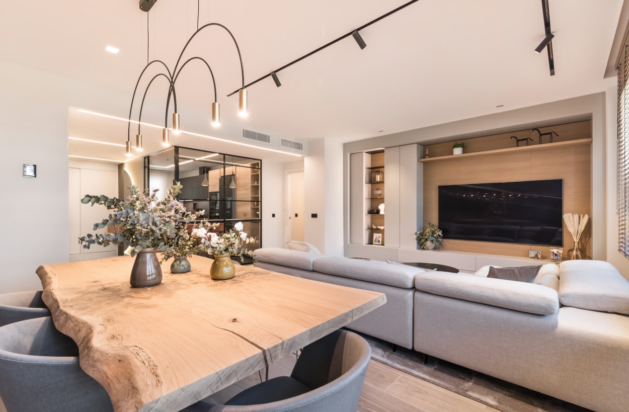 En esta vivienda, proyectamos un estilo moderno, funcional y que el hilo principal del proyecto fuera la iluminación.