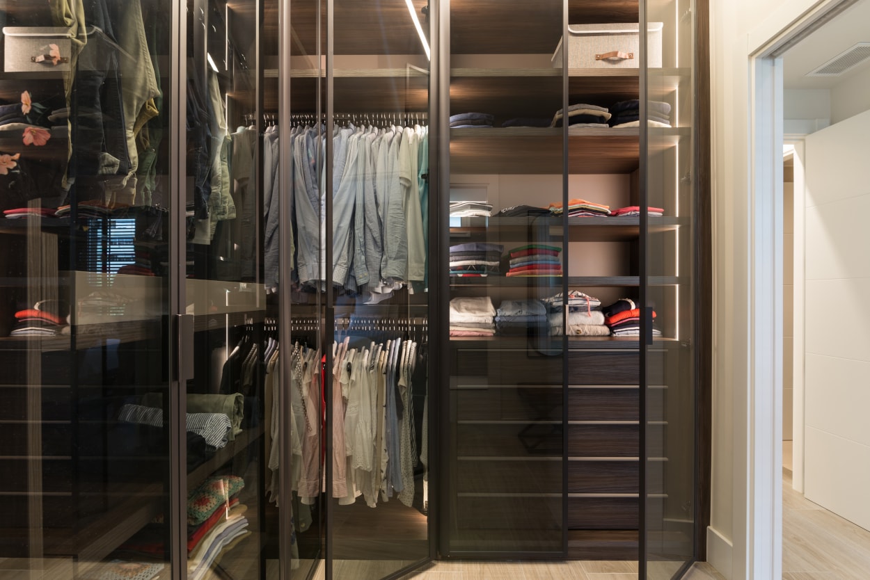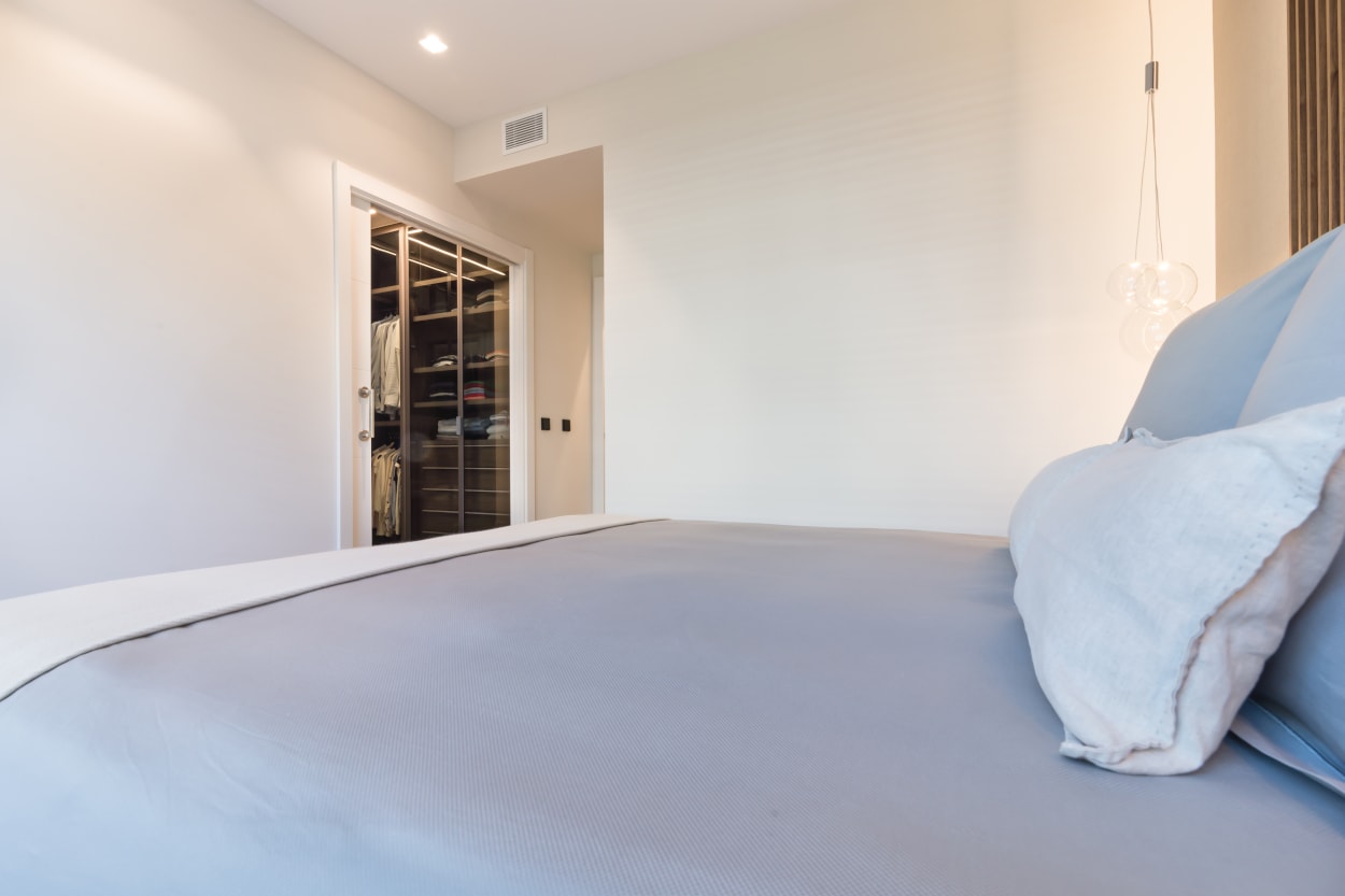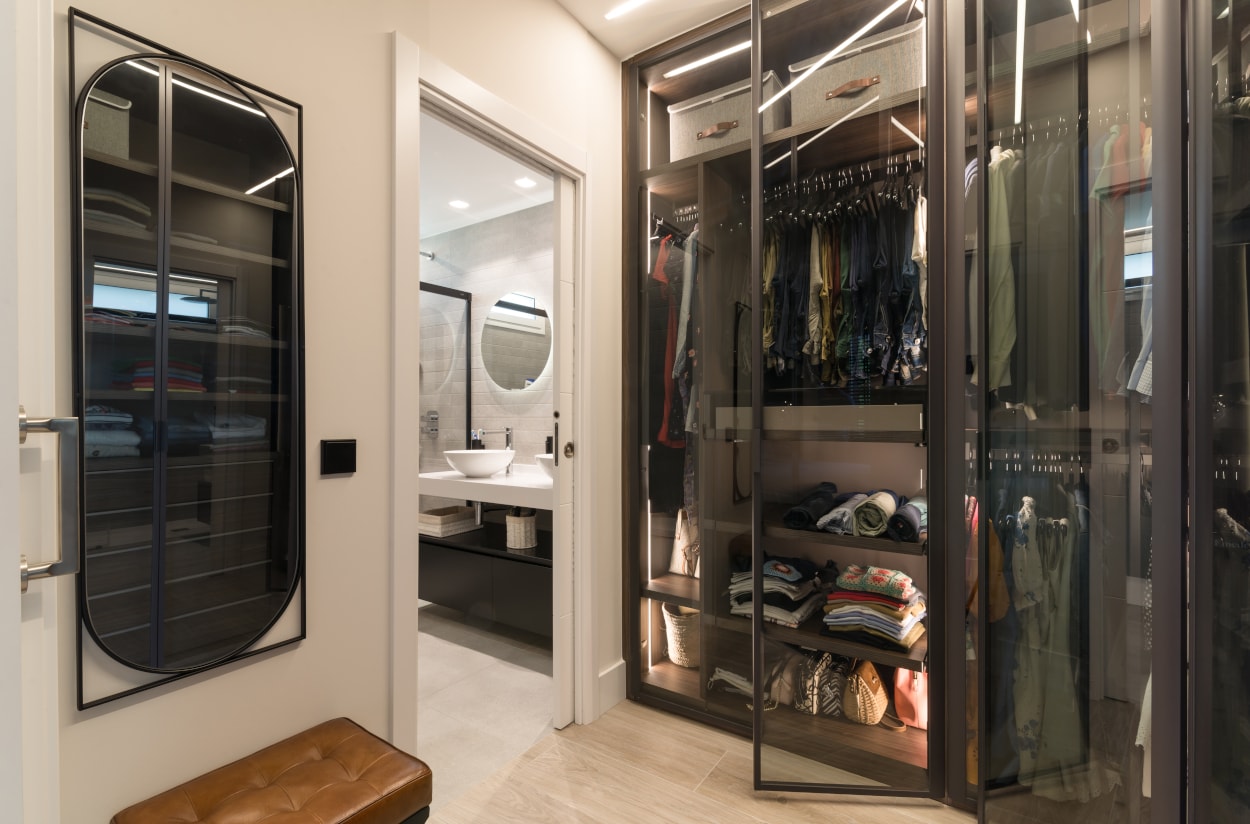 La suite principal de la vivienda la componen el dormitorio, vestidor abierto y baño. Un espacio cómodo, pero de diseño moderno.
