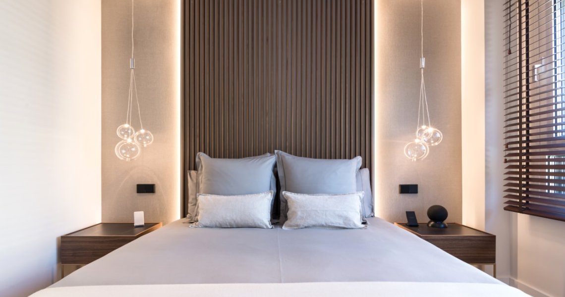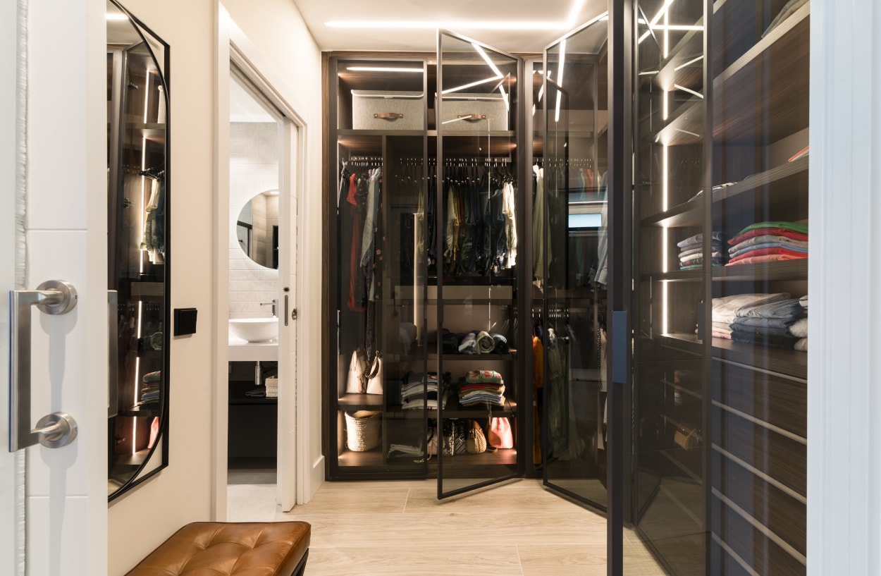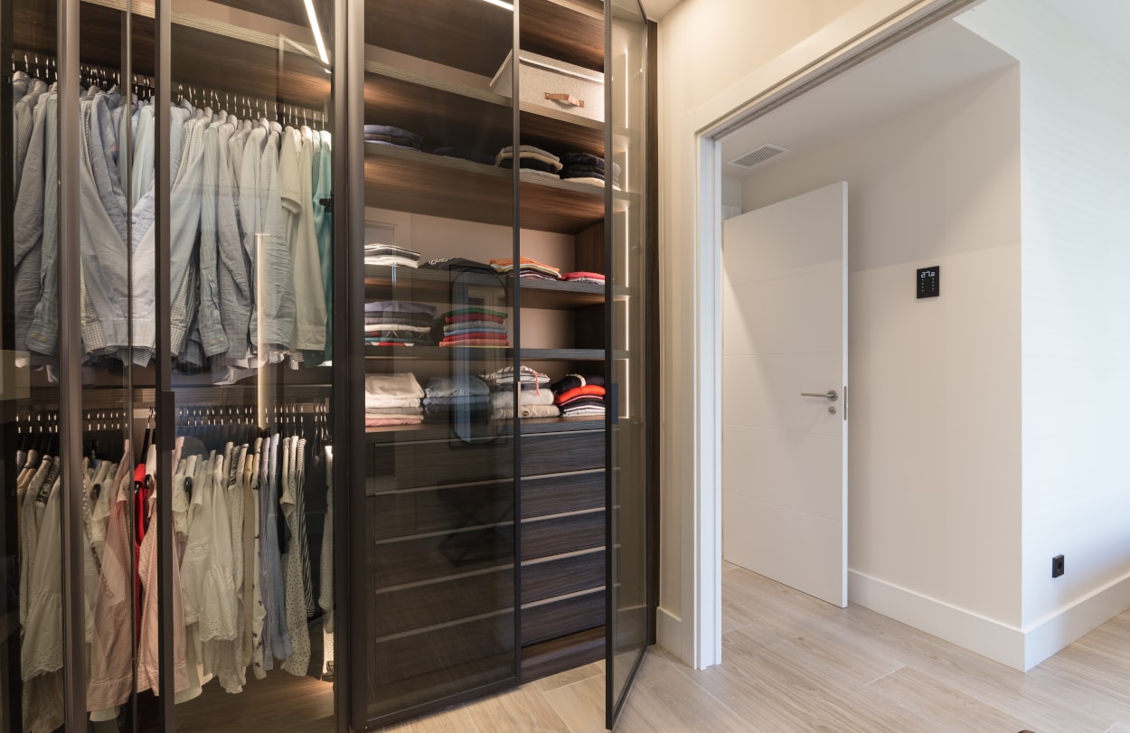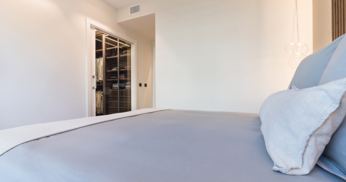 La suite principal de la vivienda la componen el dormitorio, vestidor abierto y baño. Un espacio cómodo, pero de diseño moderno.
