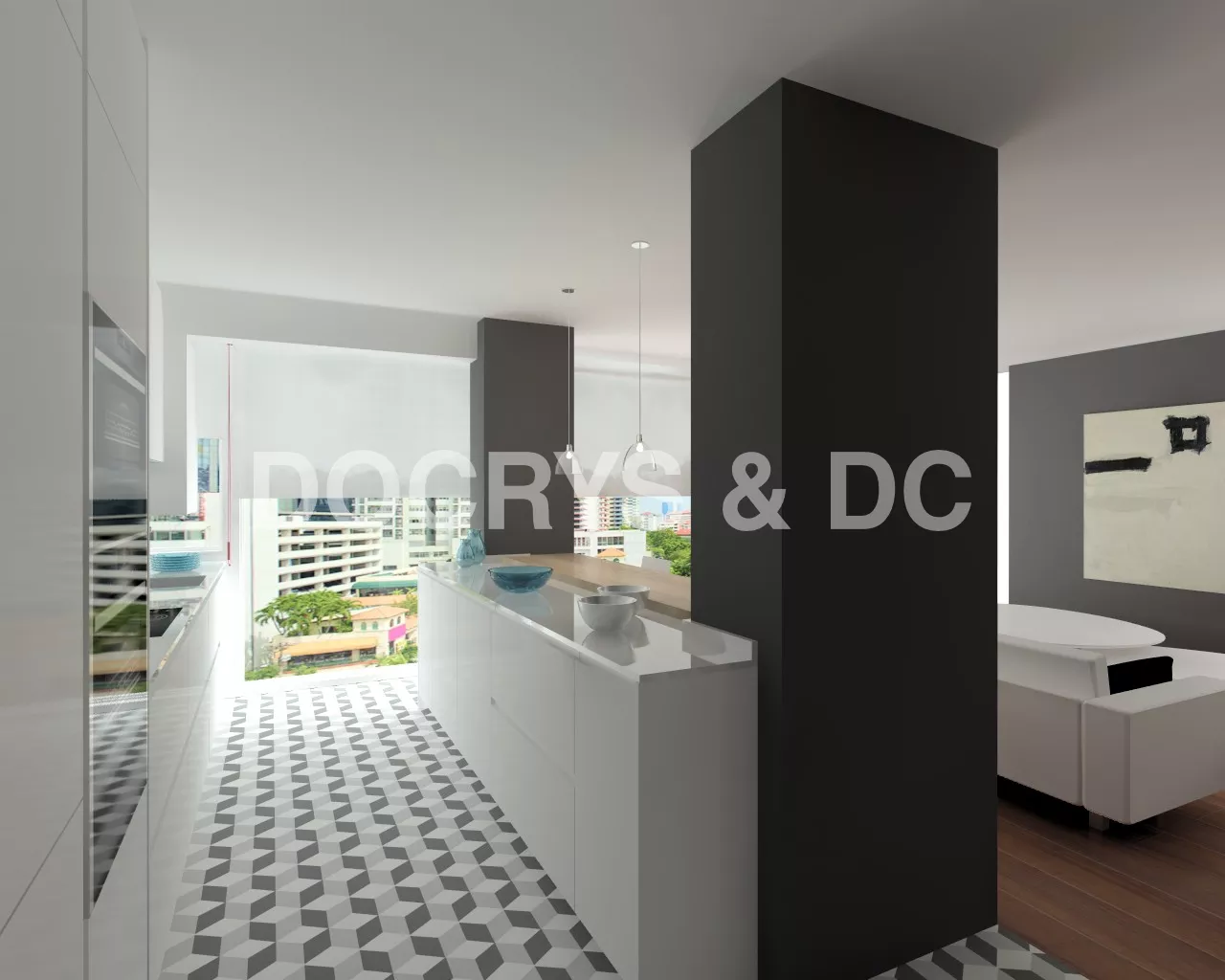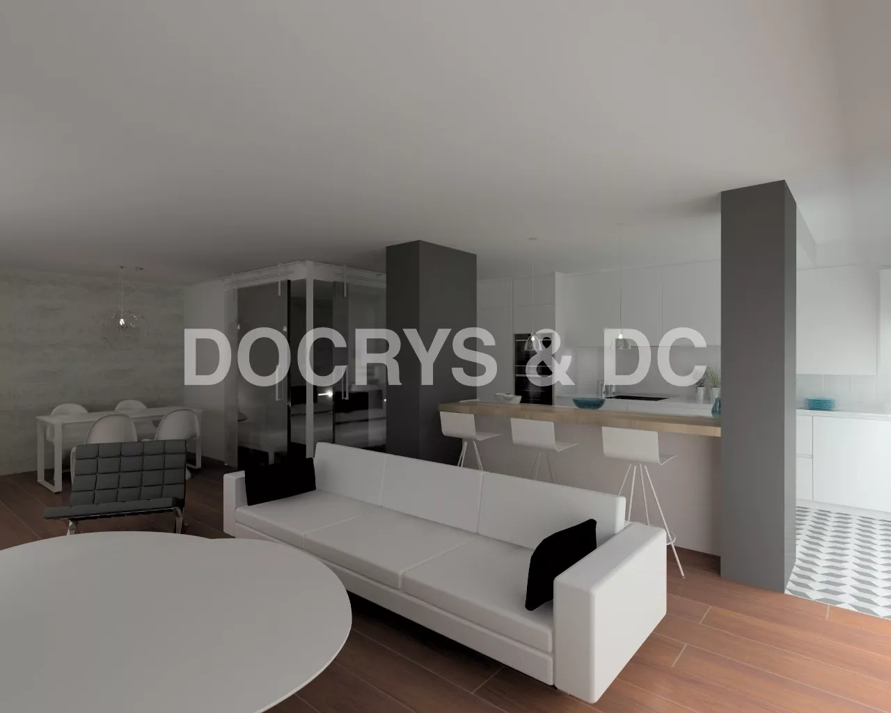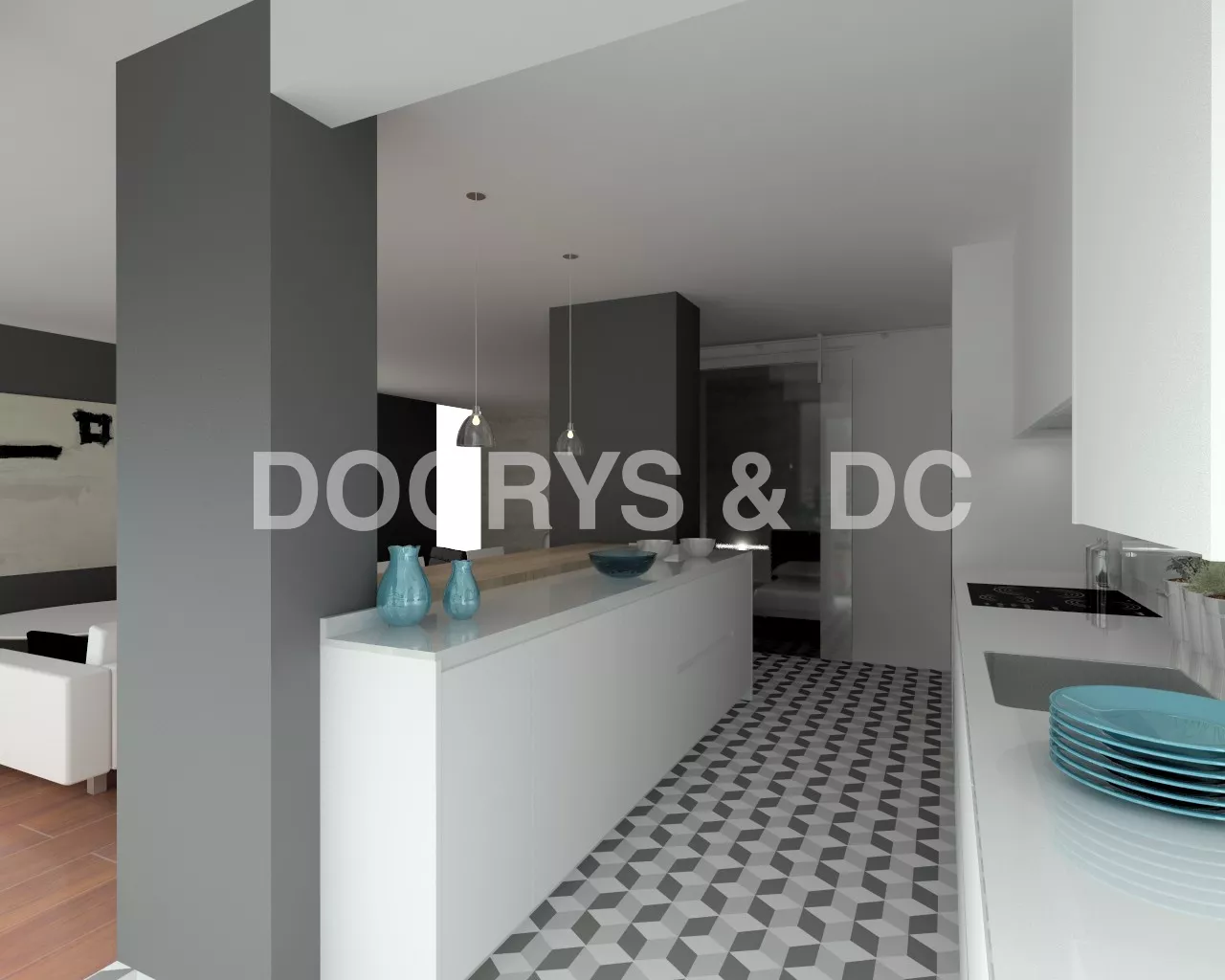 Proyecto en Madrid – Cocina Santos LINE-L en seda mate con encimera Silestone Blanco Zeus y zona de comedor integrada